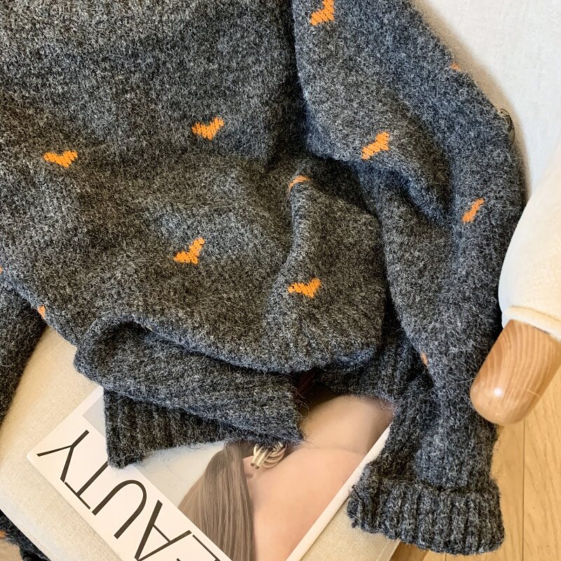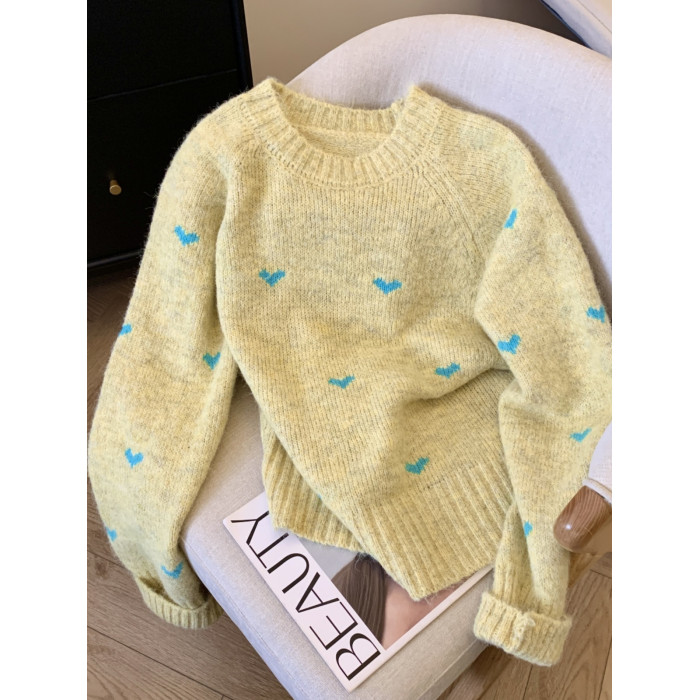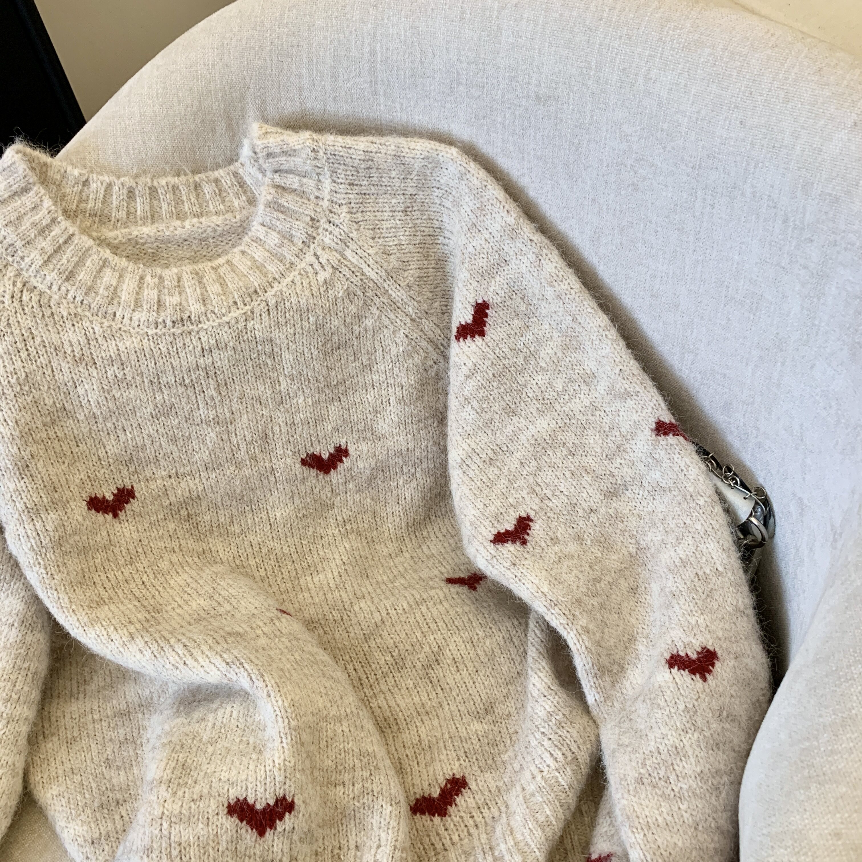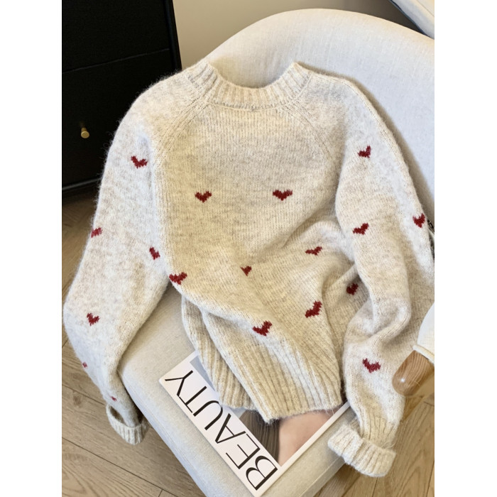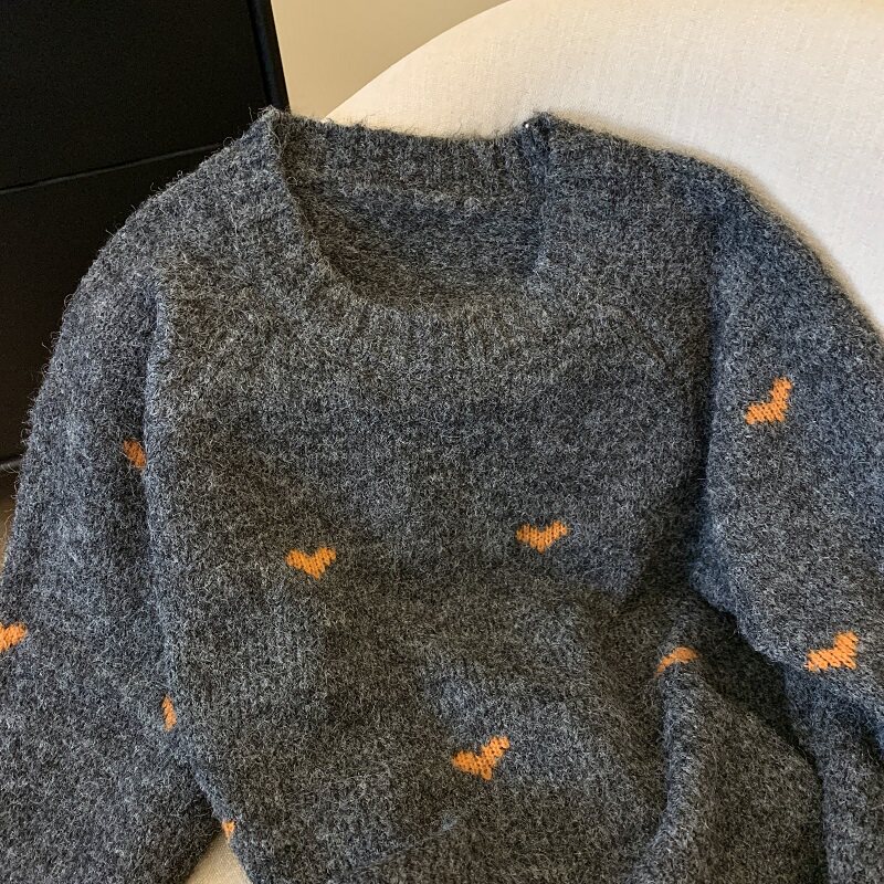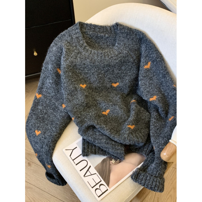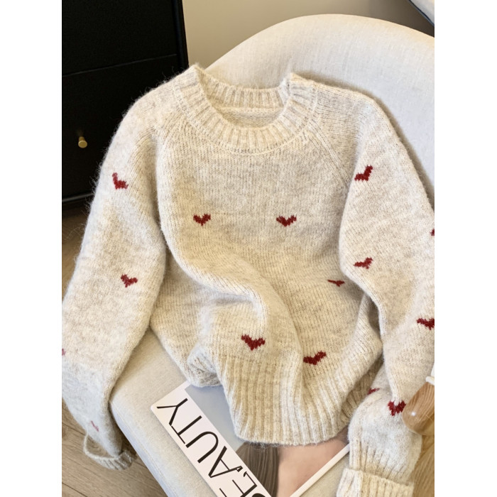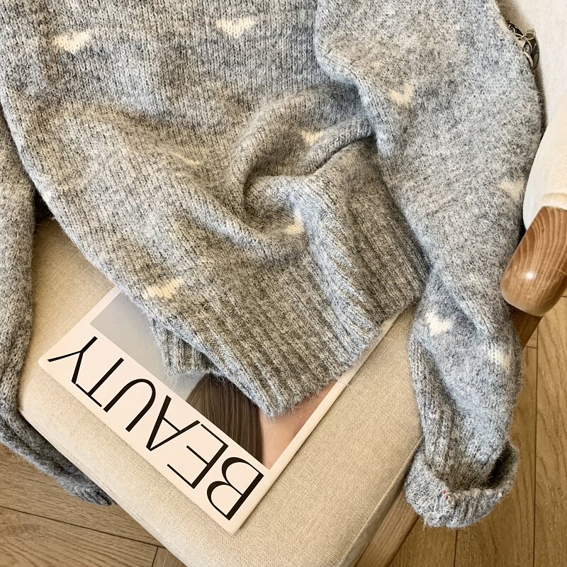 愛心提花毛衣女秋冬寬松軟糯慵懶高級感復古甜美小個子短款針織衫