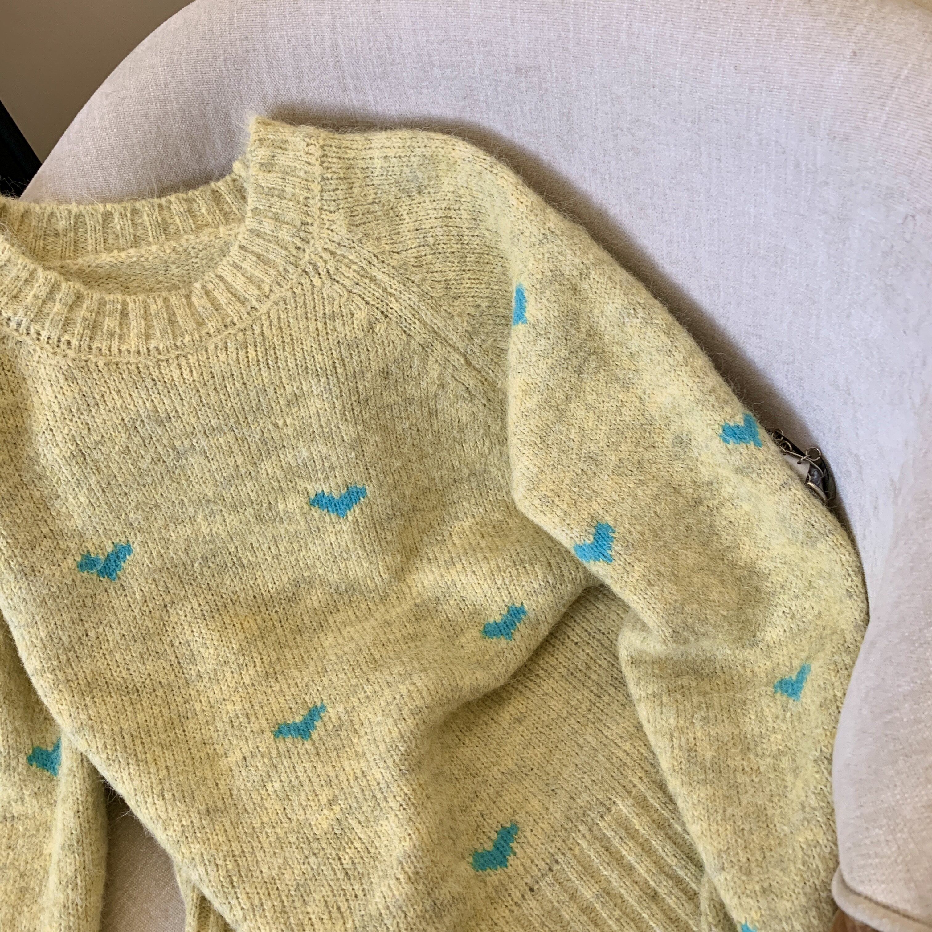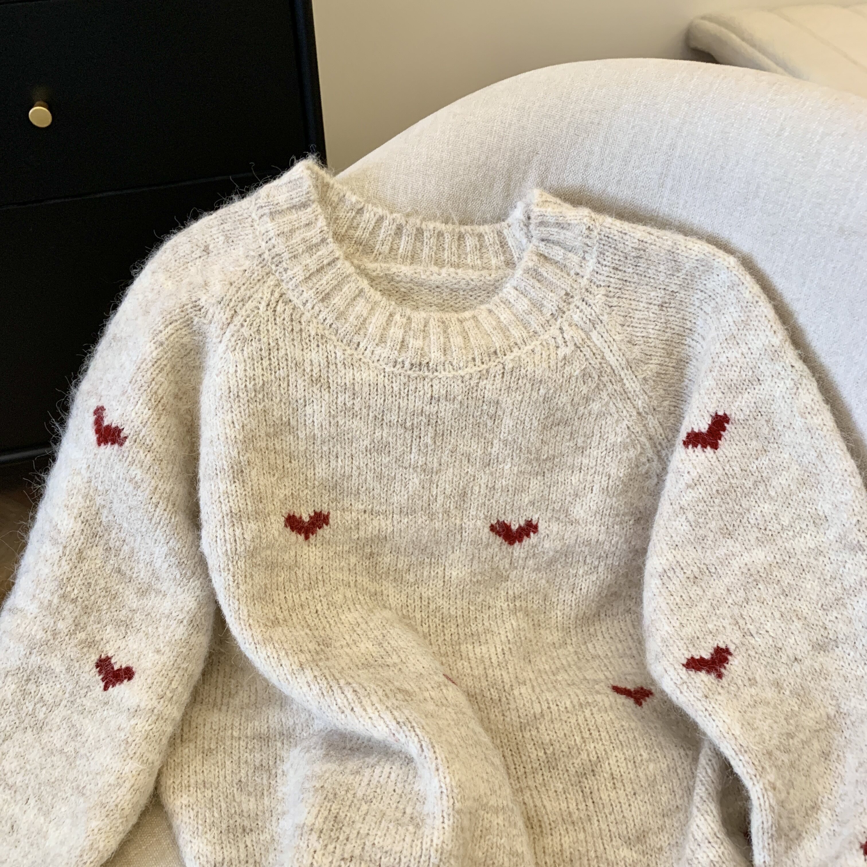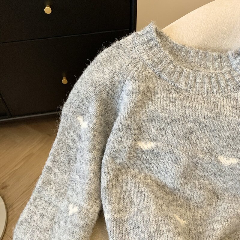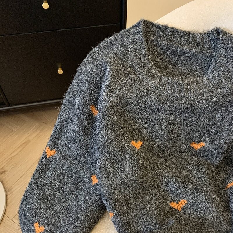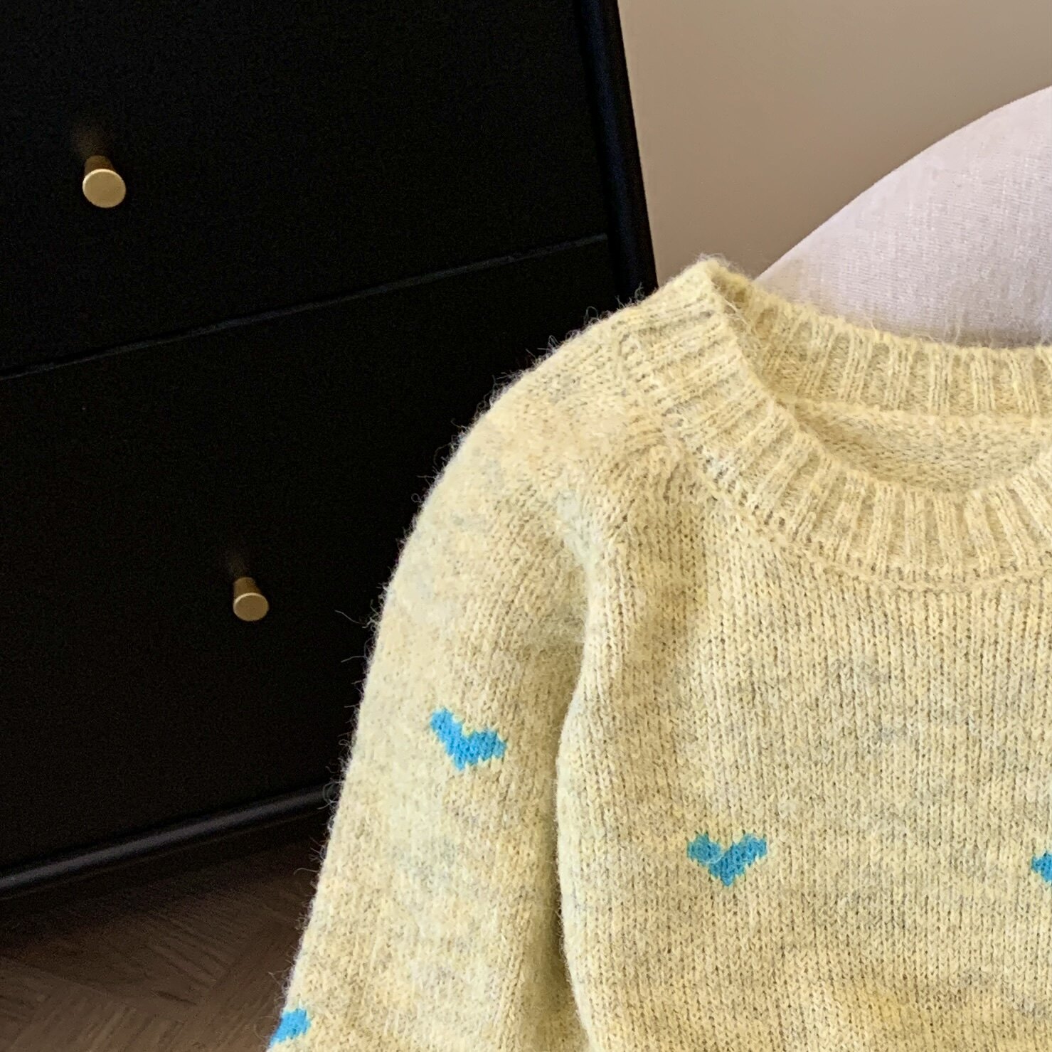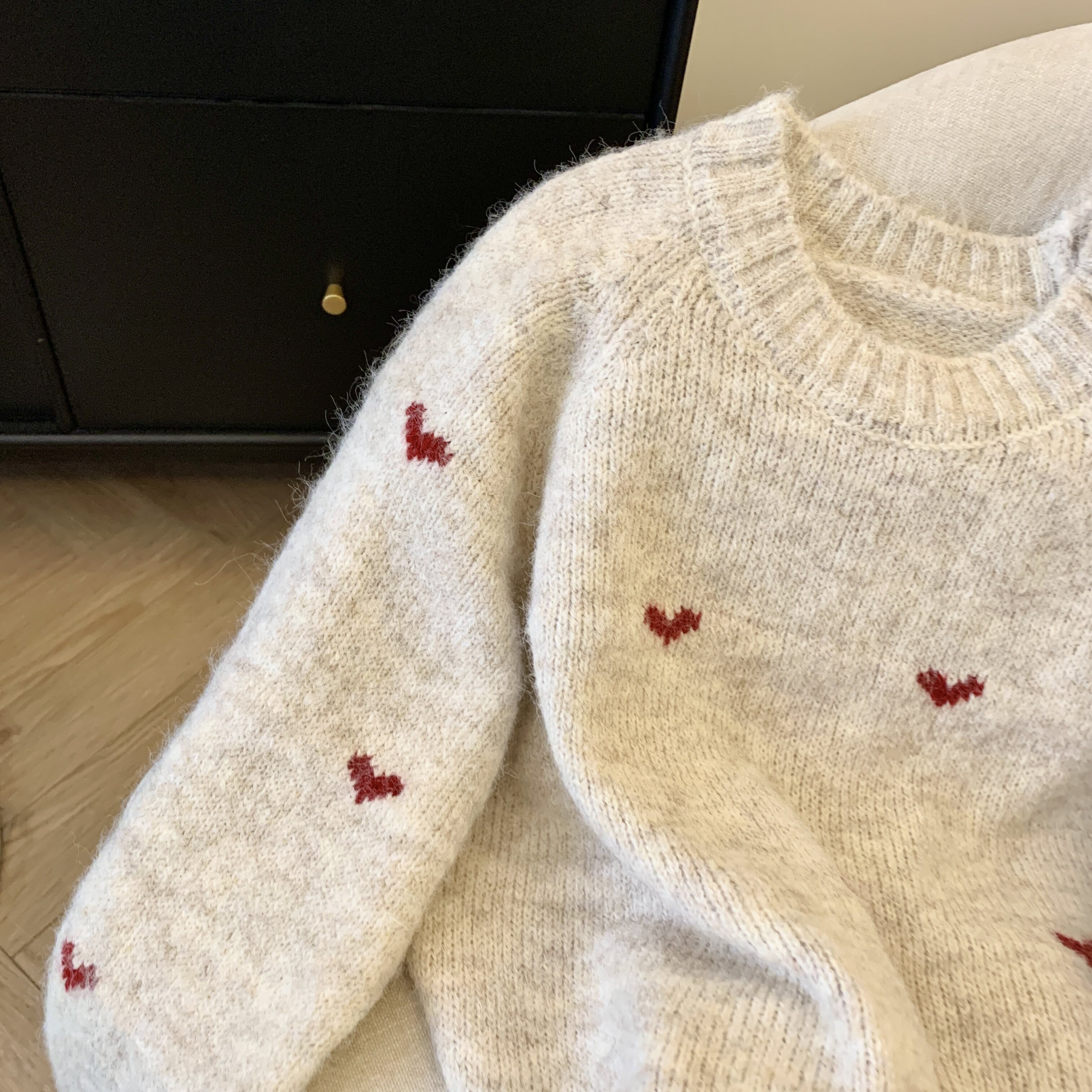 愛心提花毛衣女秋冬寬松軟糯慵懶高級感復古甜美小個子短款針織衫