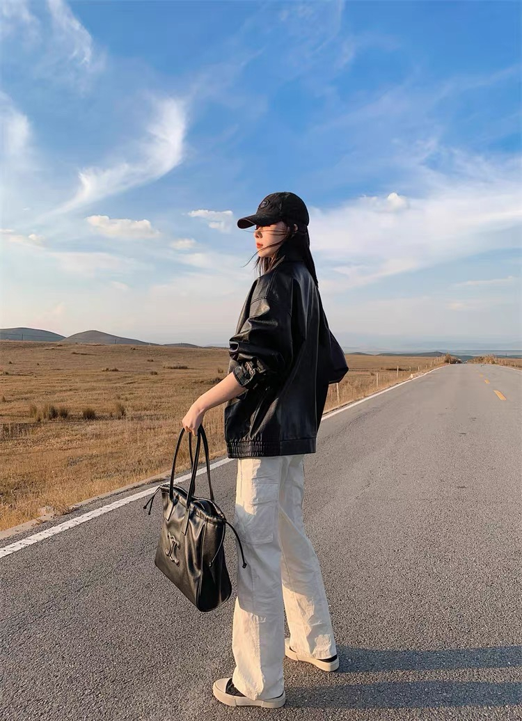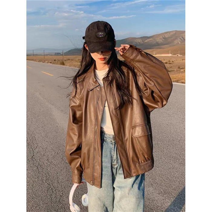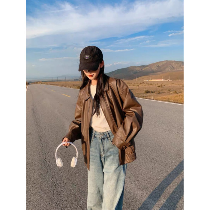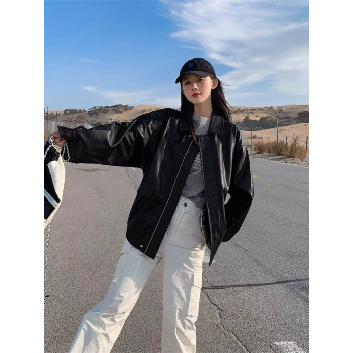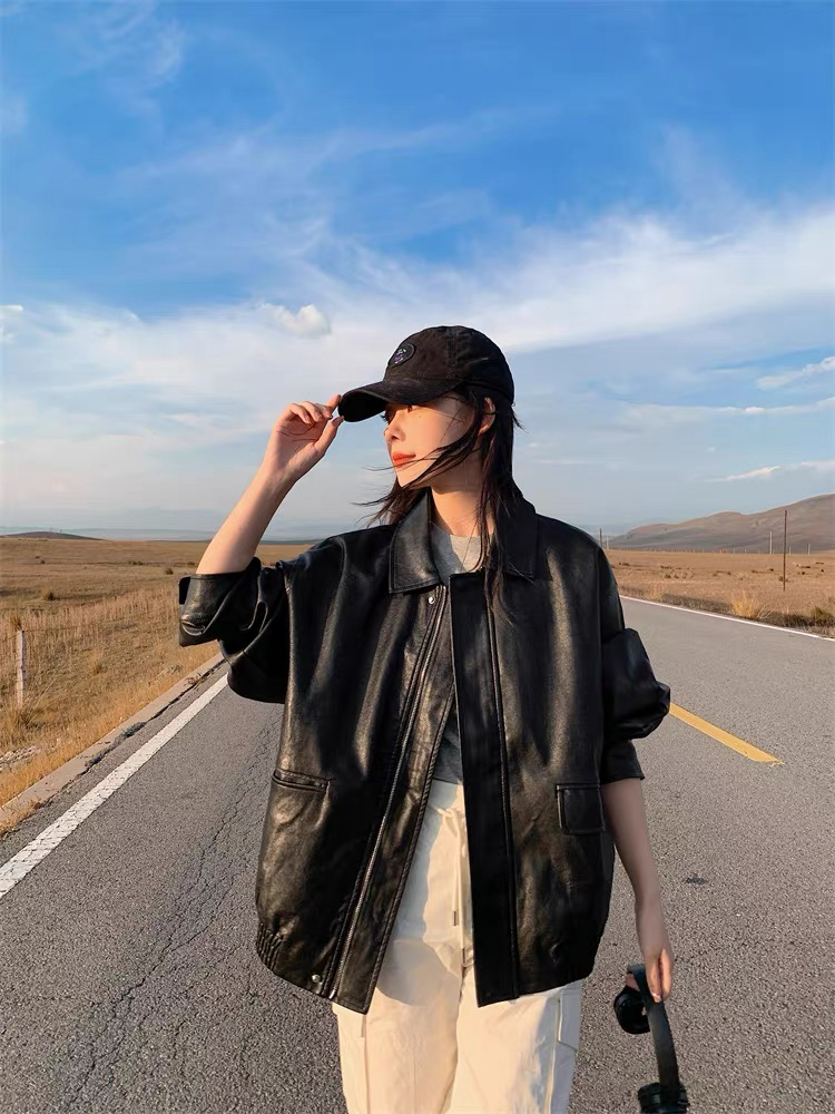 皮衣外套女短款2025秋季新款港風黑色pu小個子美式復古機車服夾克