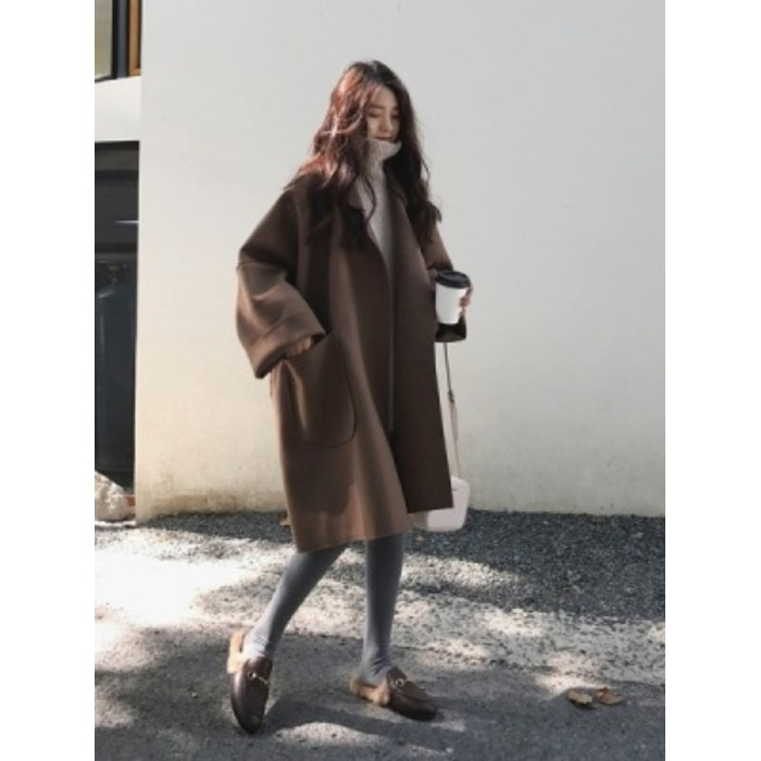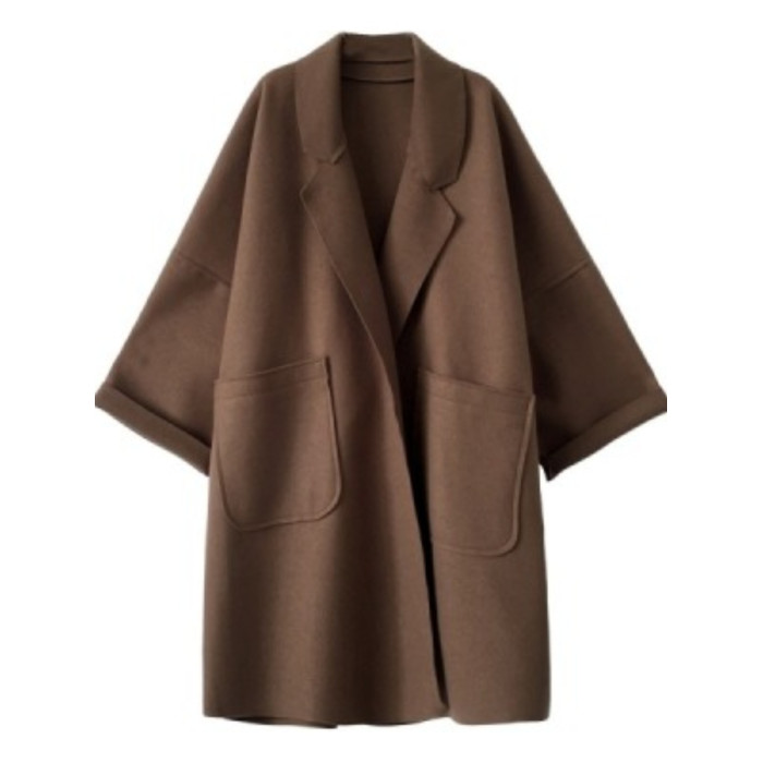 羊絨大衣女200斤秋冬新款胖mm寬松中長款小個子鬭篷毛呢外套加厚