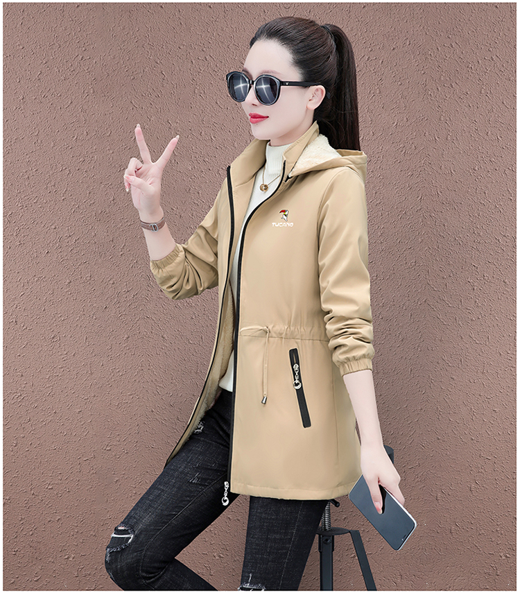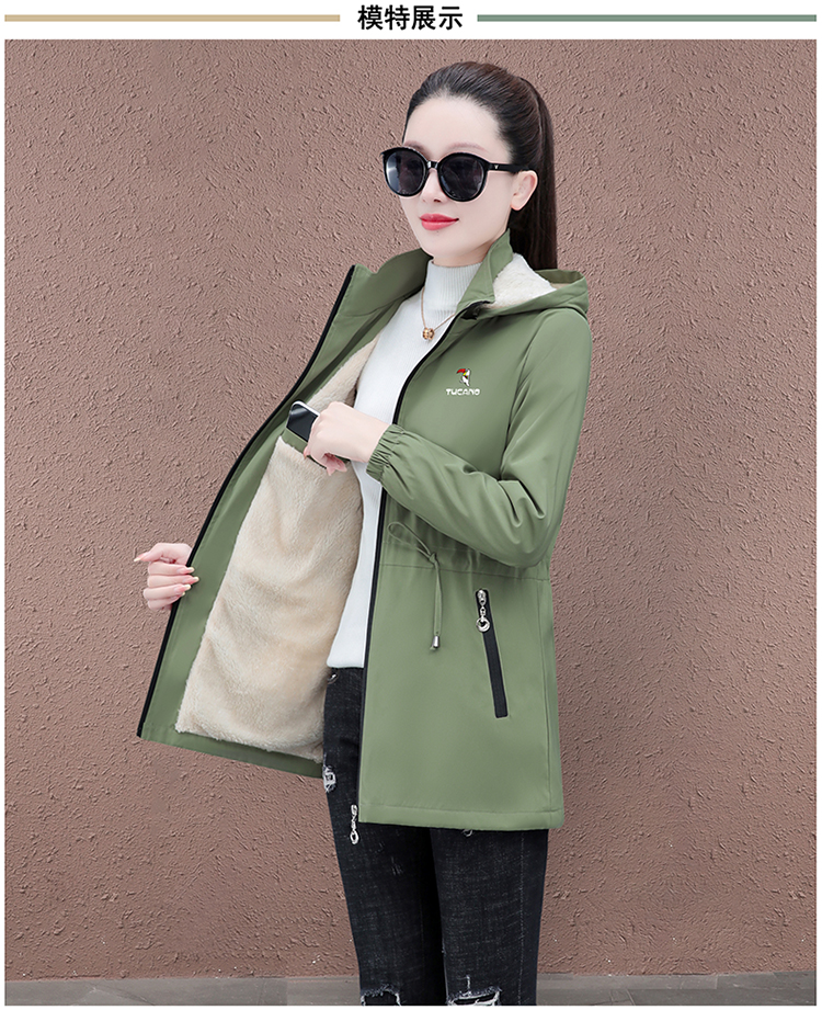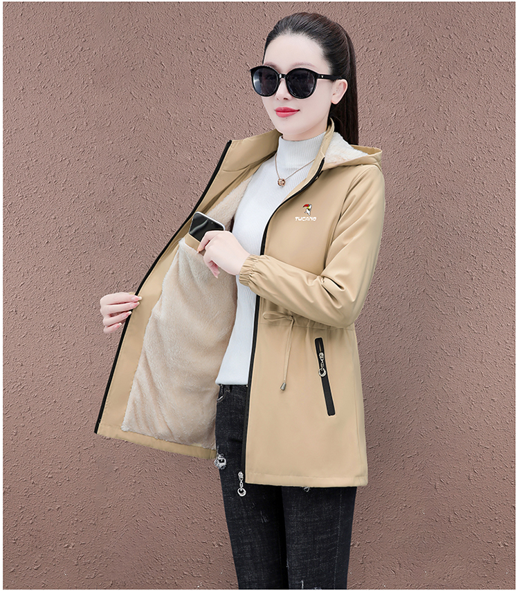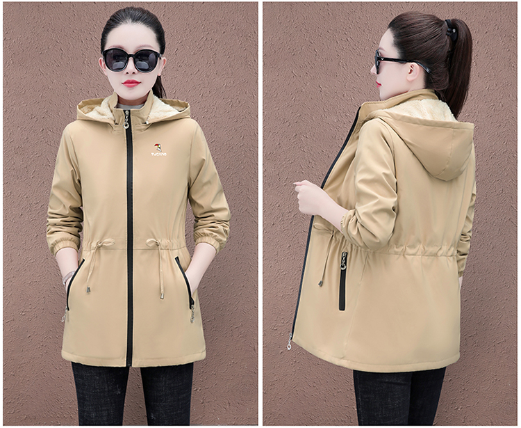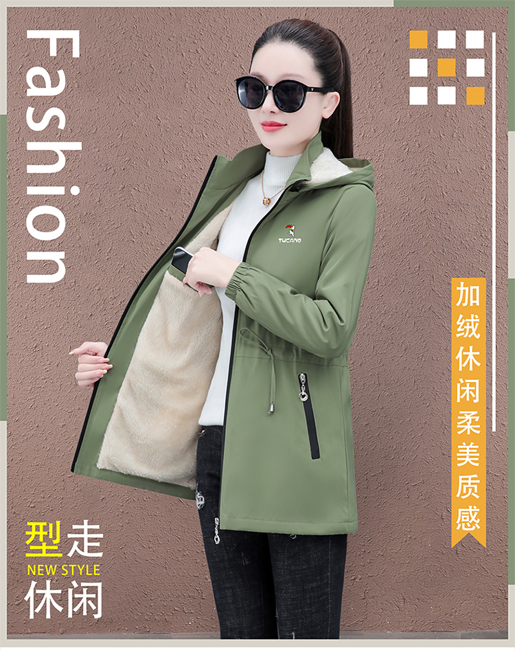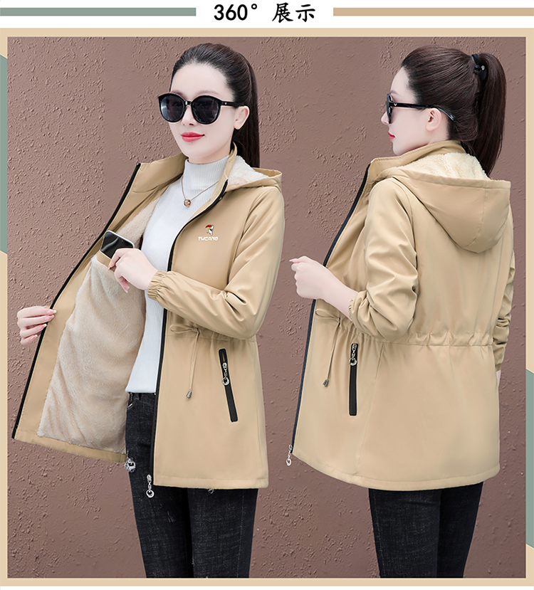 啄木鳥加絨外套女中長款2025年秋冬新款中年媽媽加厚保暖風衣夾克