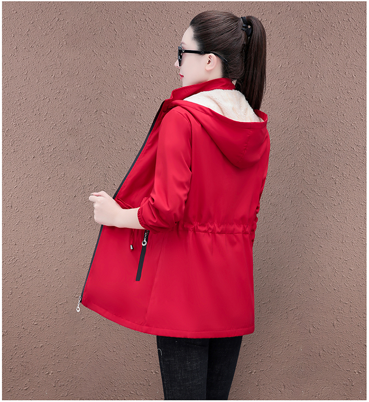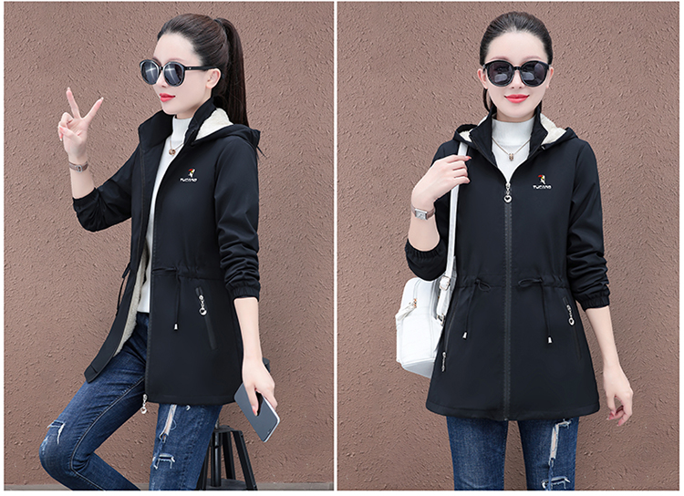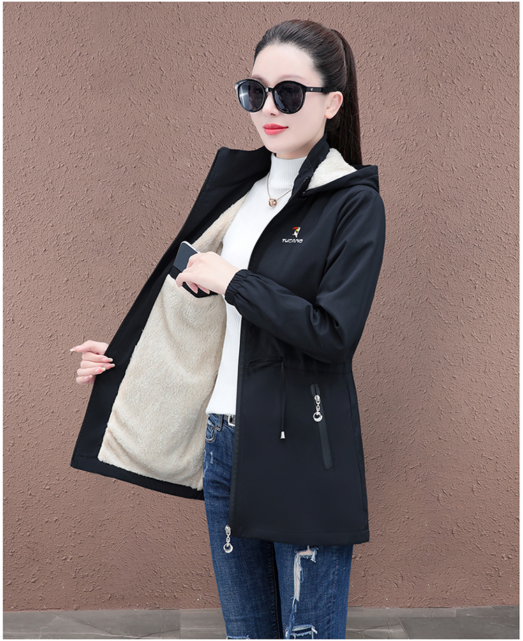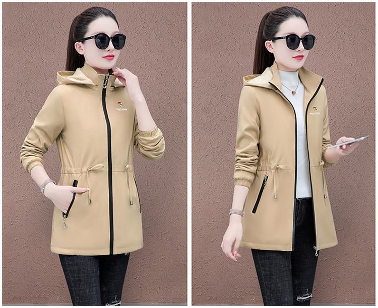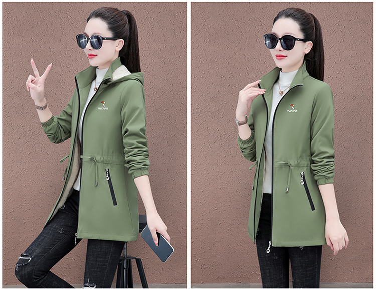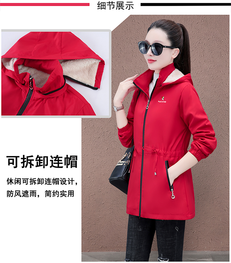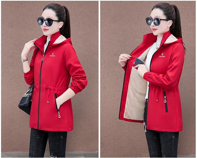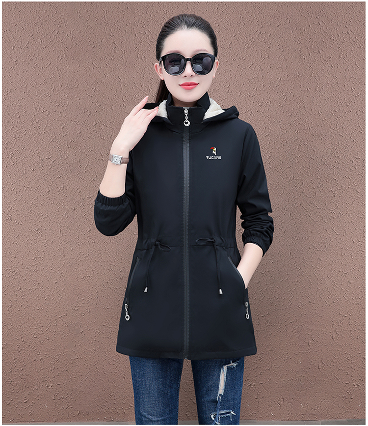 啄木鳥加絨外套女中長款2025年秋冬新款中年媽媽加厚保暖風衣夾克