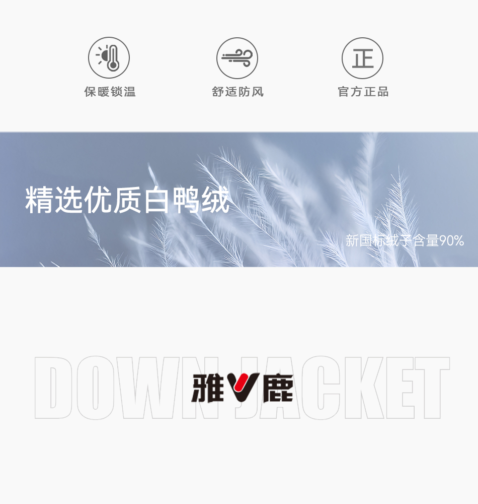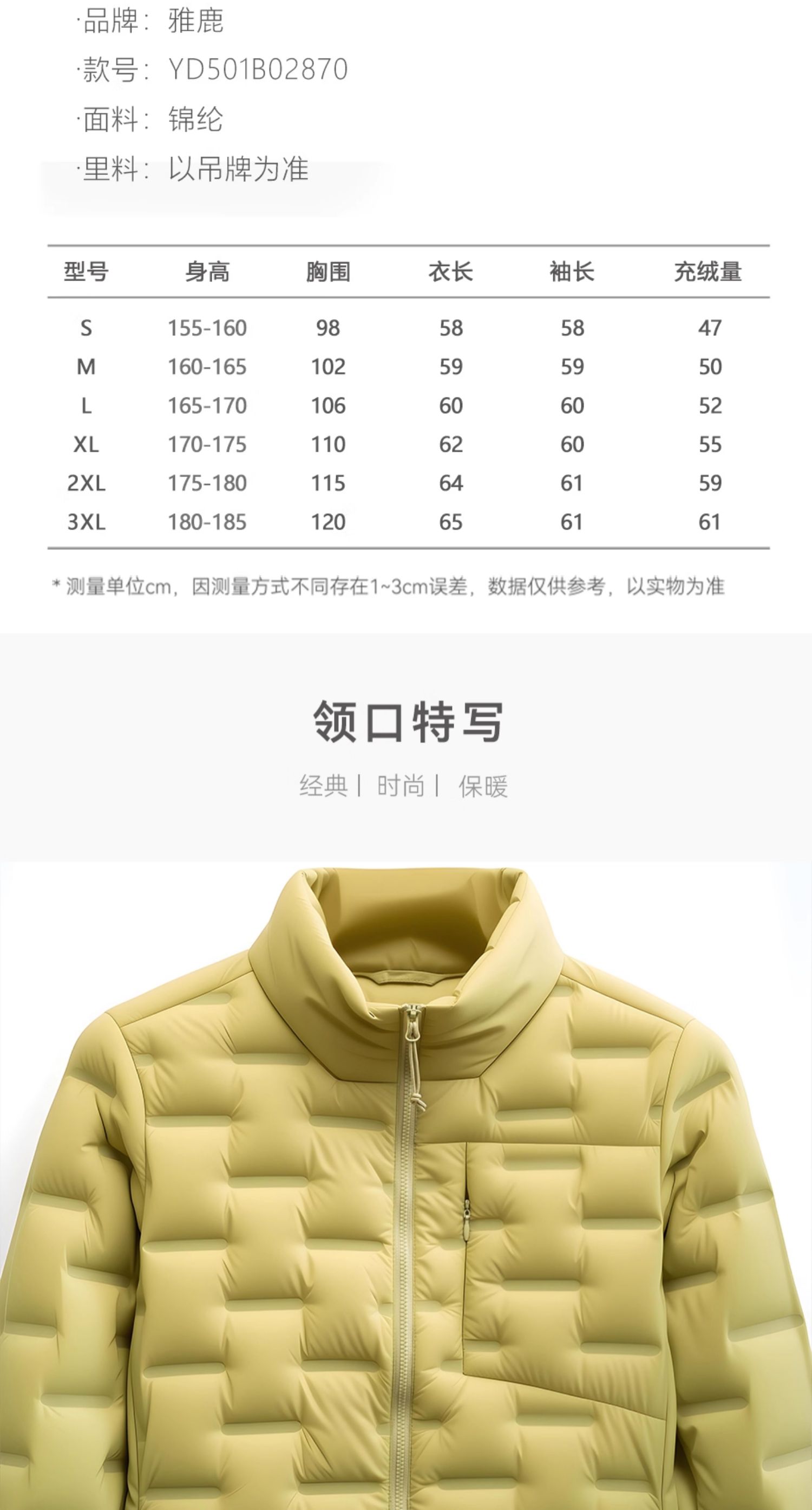 雅鹿官方時尚冬季立領輕薄短款防寒保暖修身外套休閒輕便羽絨服