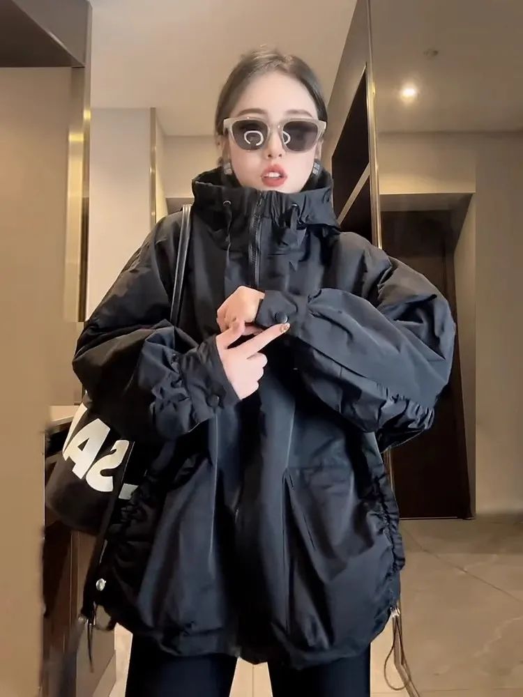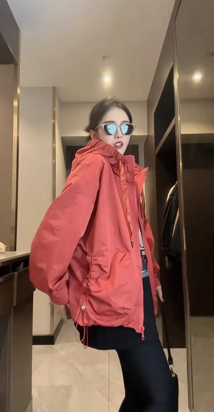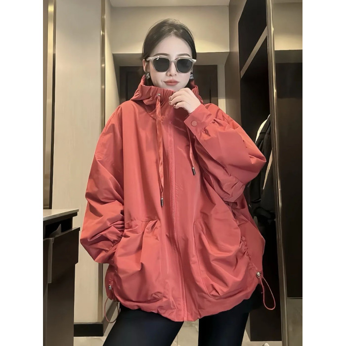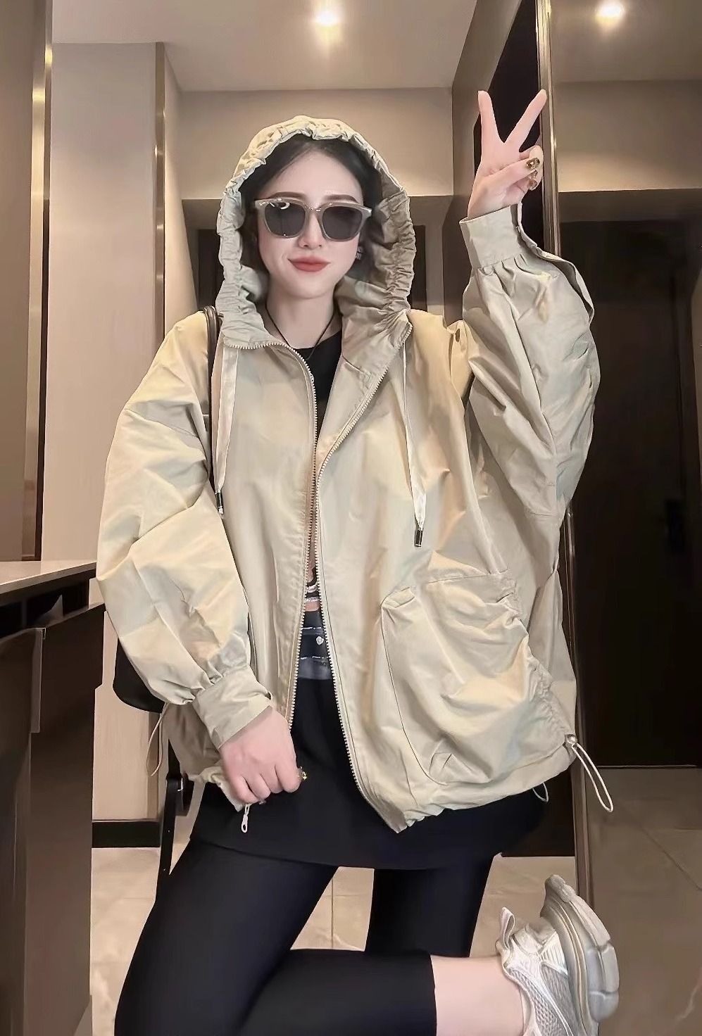 大碼胖mm300斤休閒沖鋒衣外套女春秋款寬松中長款抽繩連帽風衣潮2
