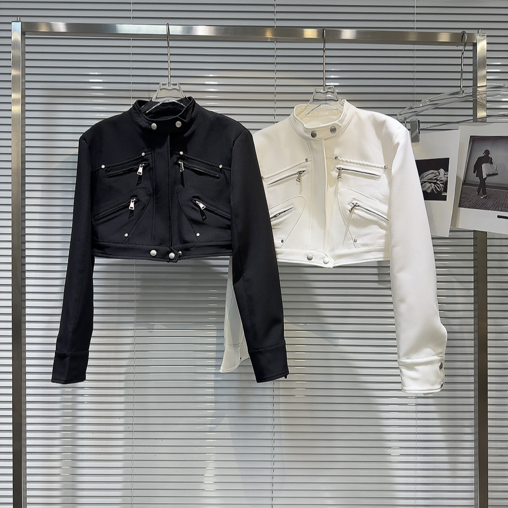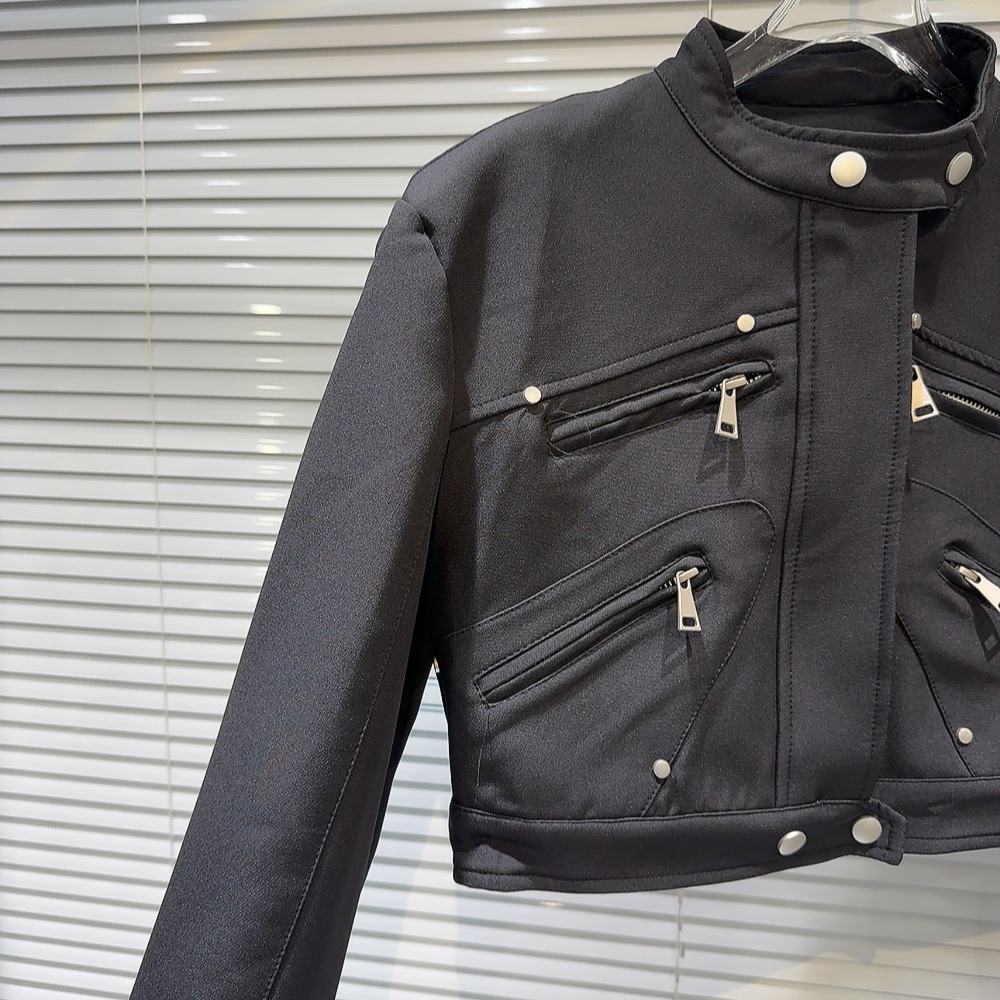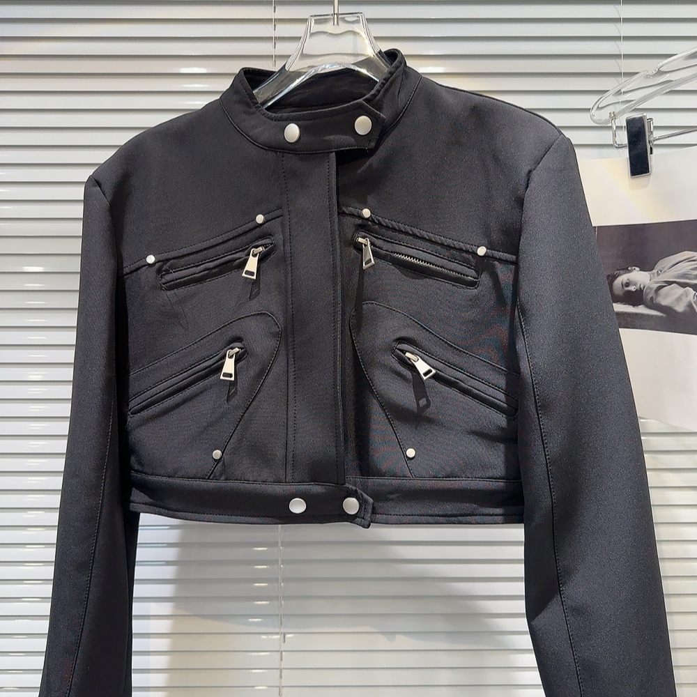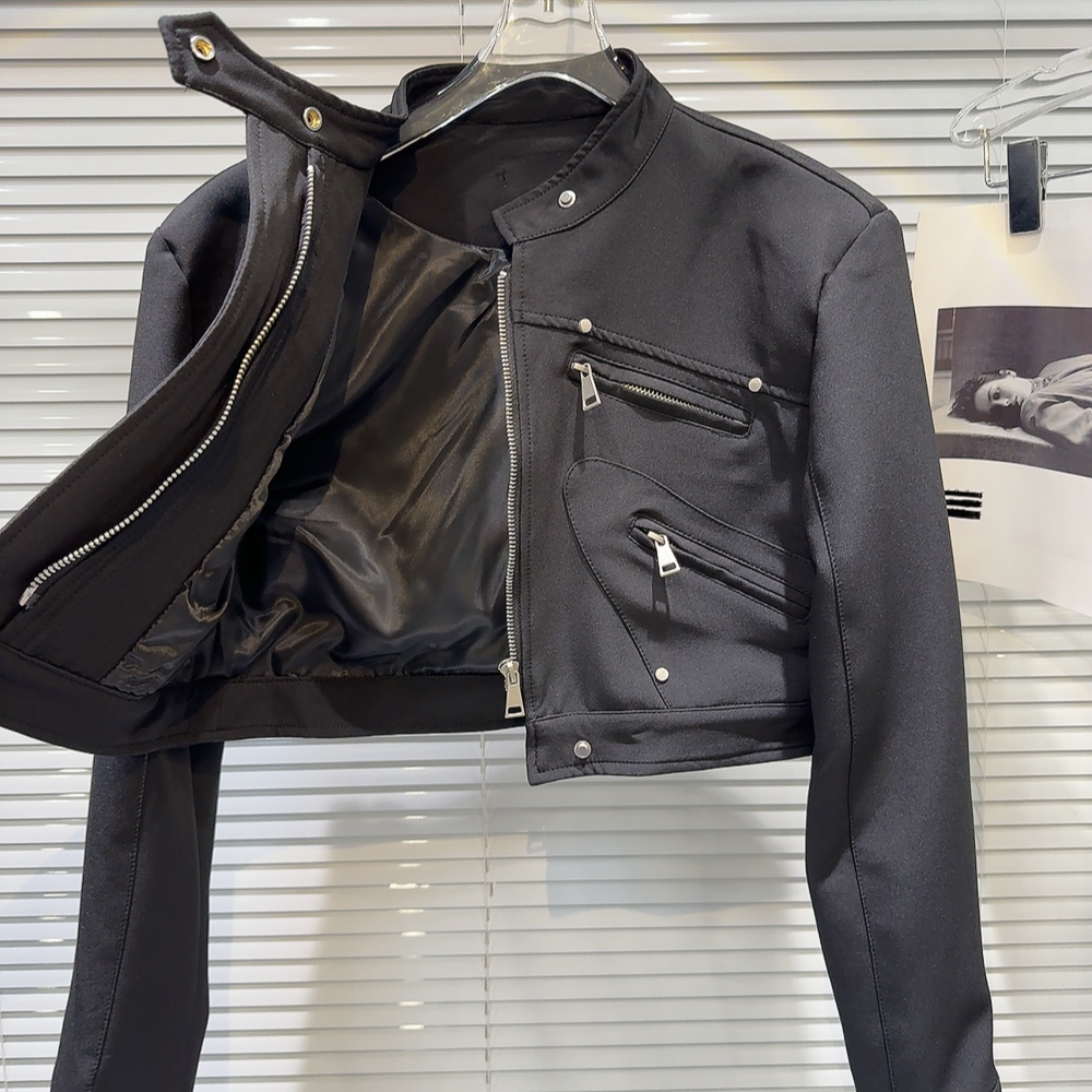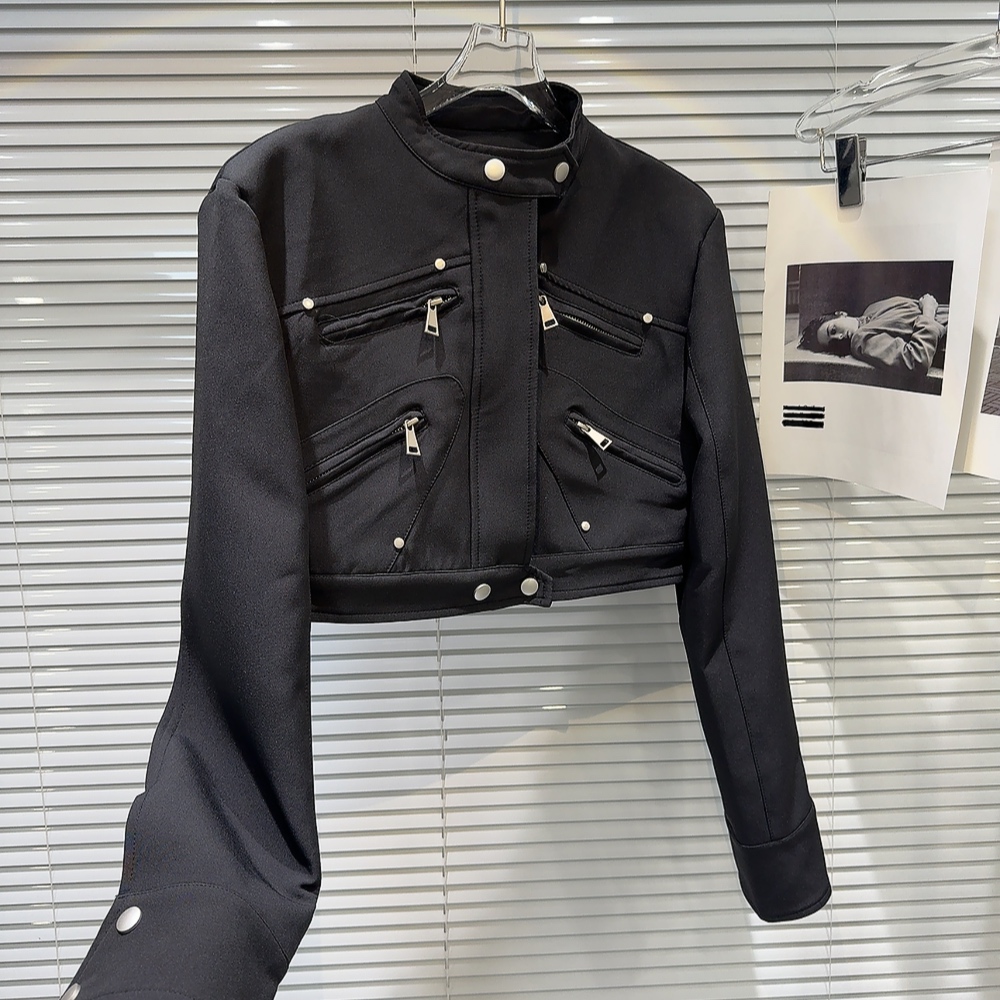 網紅同款2025秋季新款小衆辣妹金屬拉鍊設計墊肩立領夾克短外套女