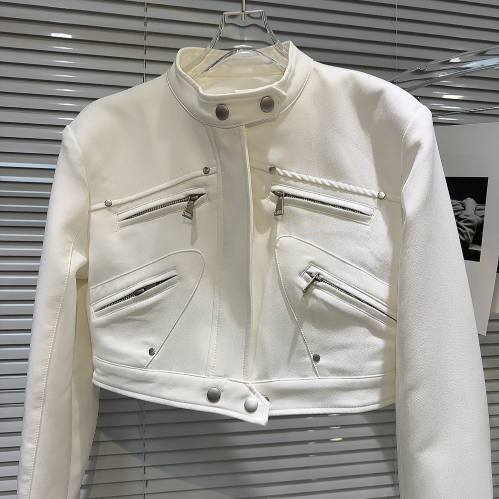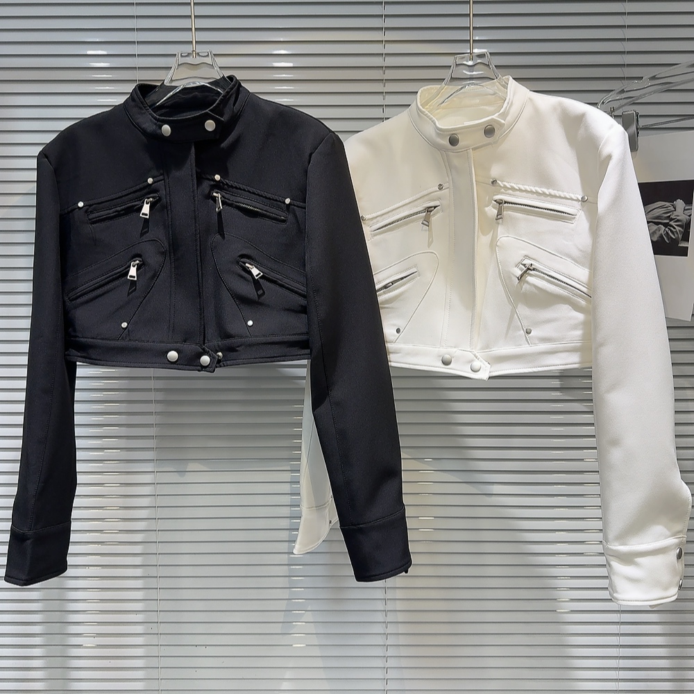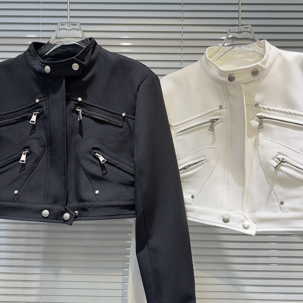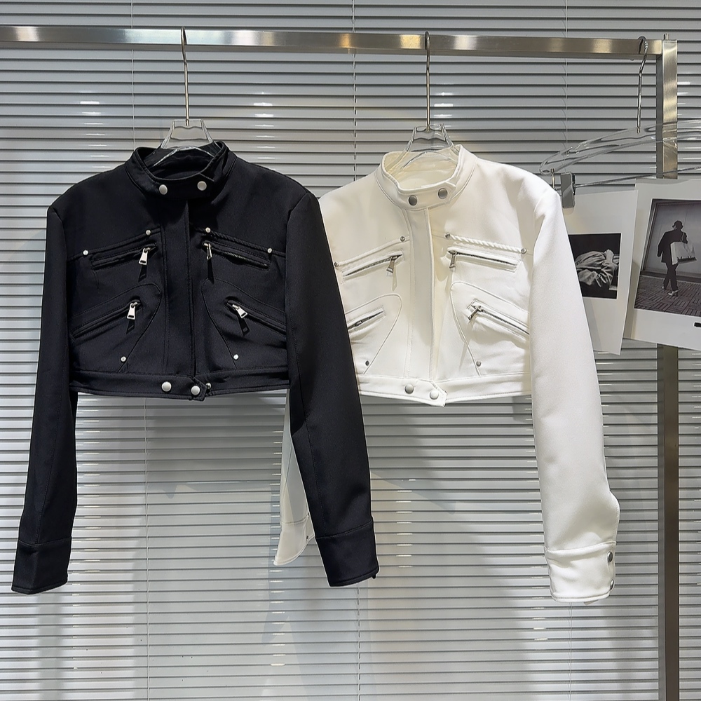 網紅同款2025秋季新款小衆辣妹金屬拉鍊設計墊肩立領夾克短外套女