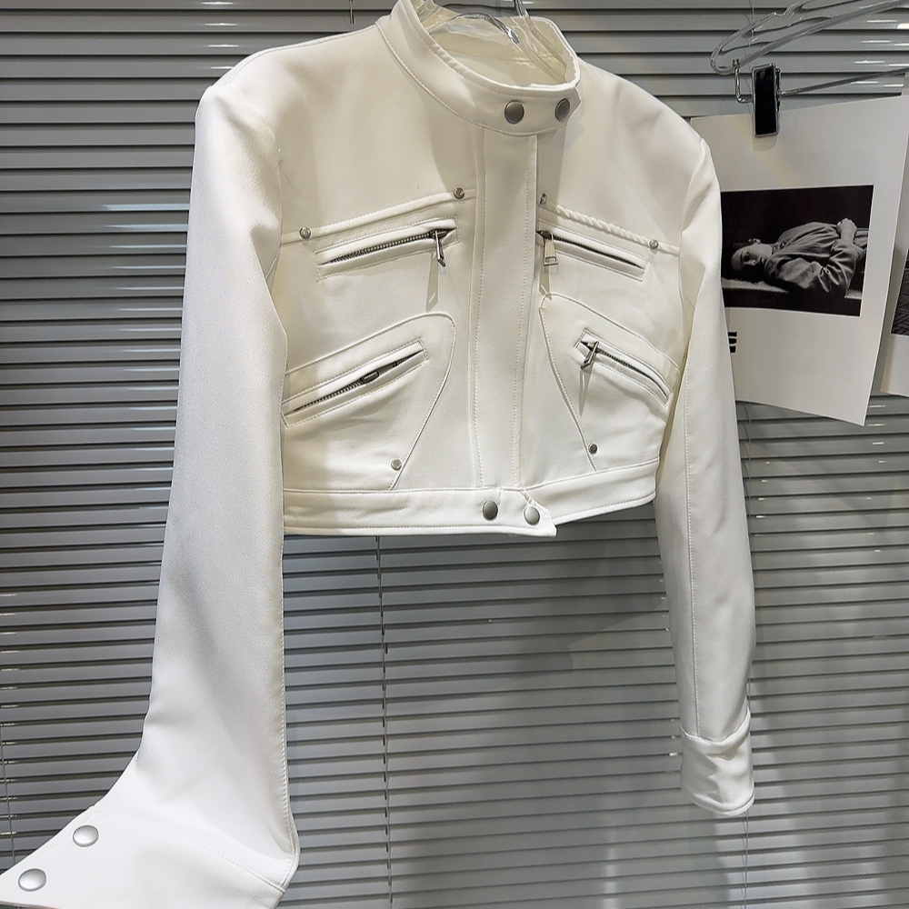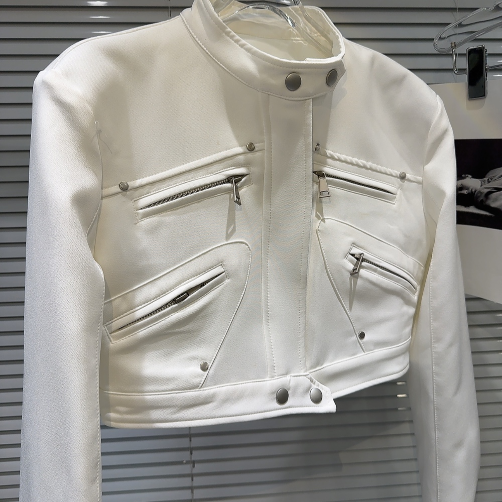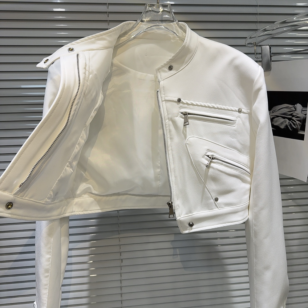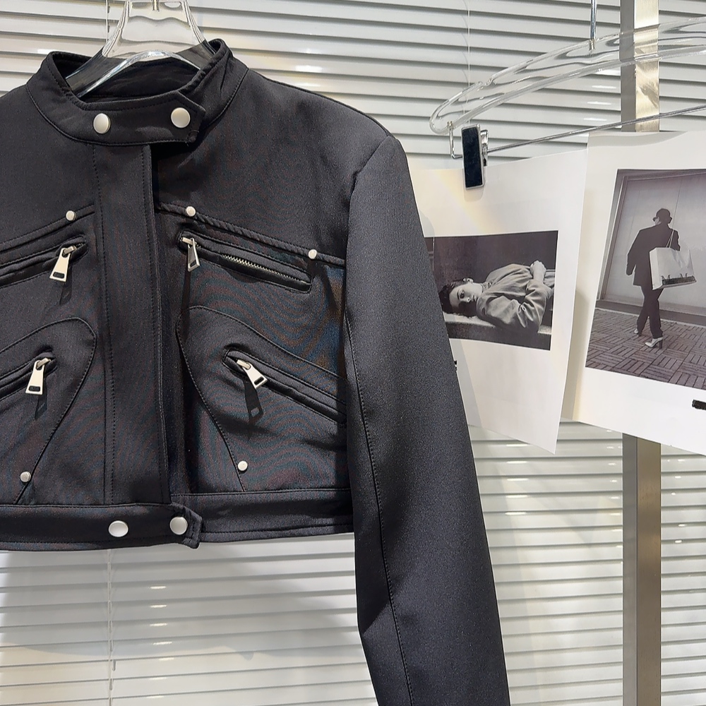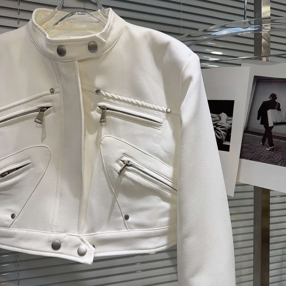 網紅同款2025秋季新款小衆辣妹金屬拉鍊設計墊肩立領夾克短外套女
