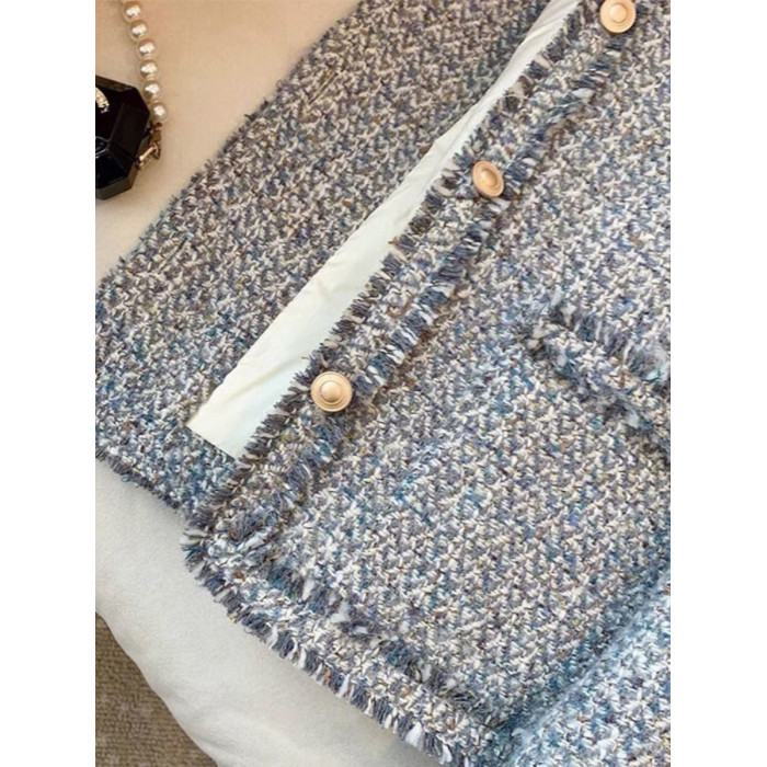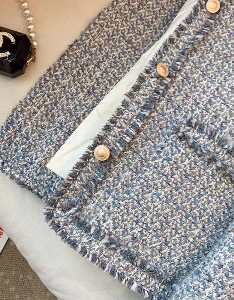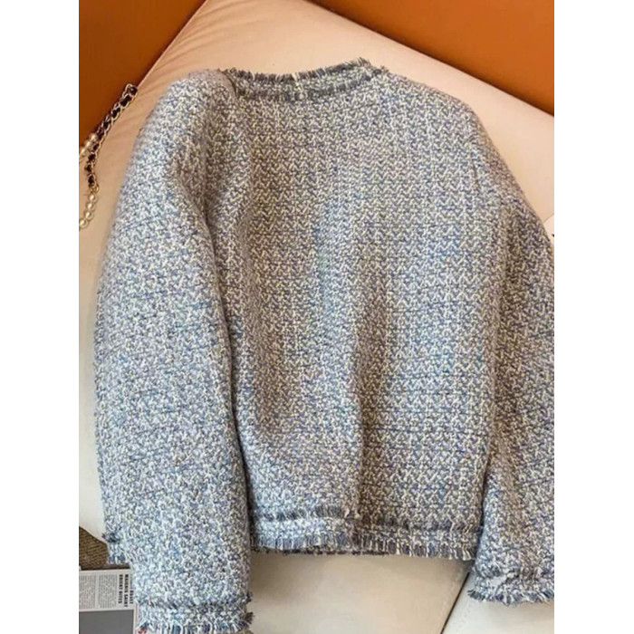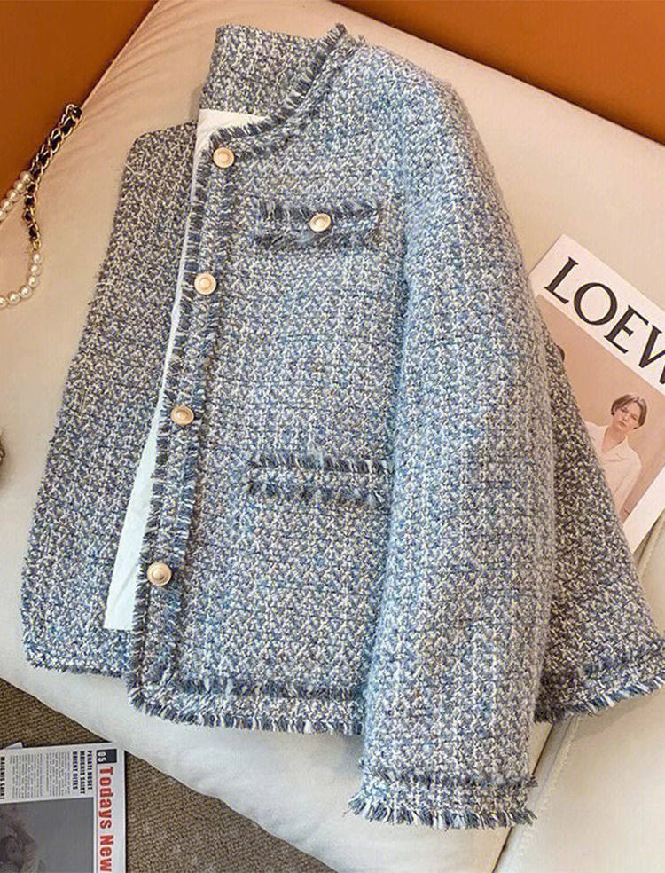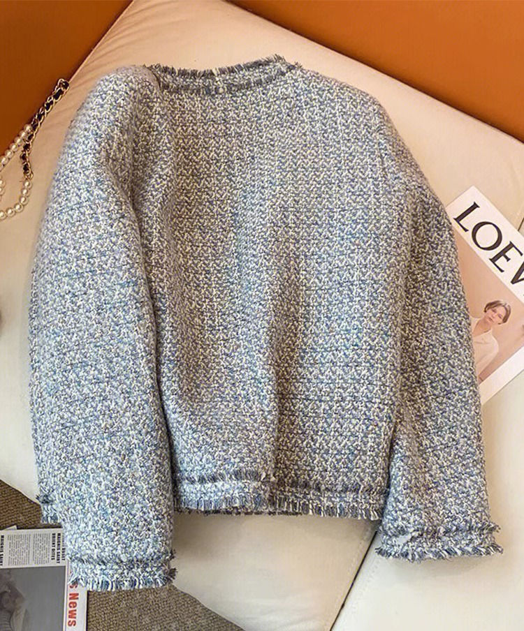 今年流行漂亮藍色小香風外套春秋新款韓劇穿搭粗花呢氣質名媛上衣