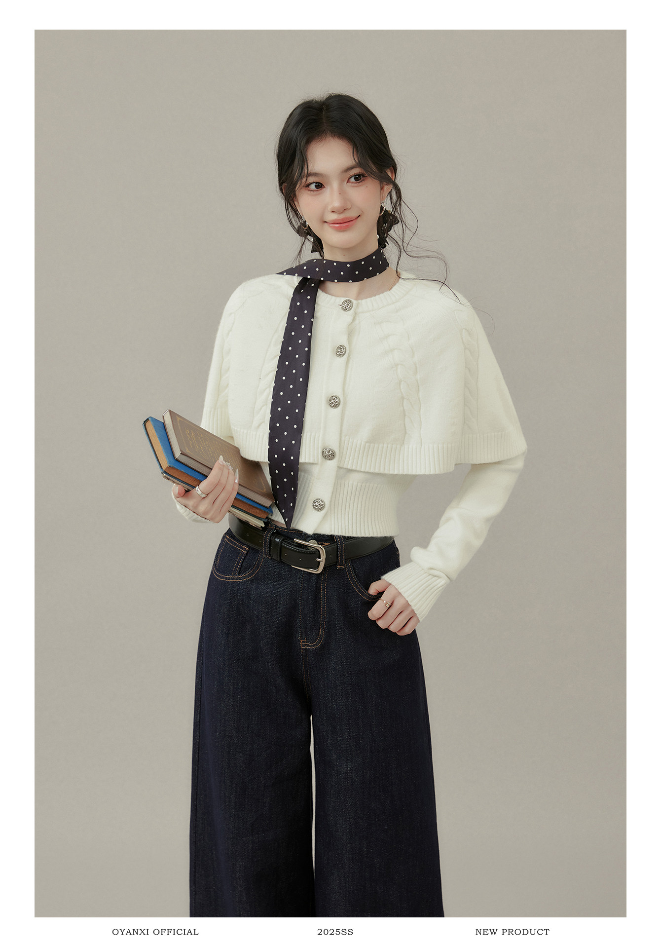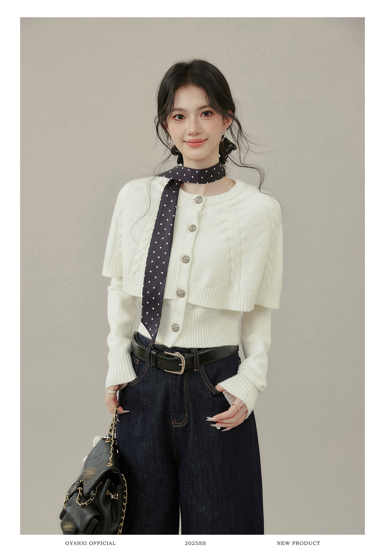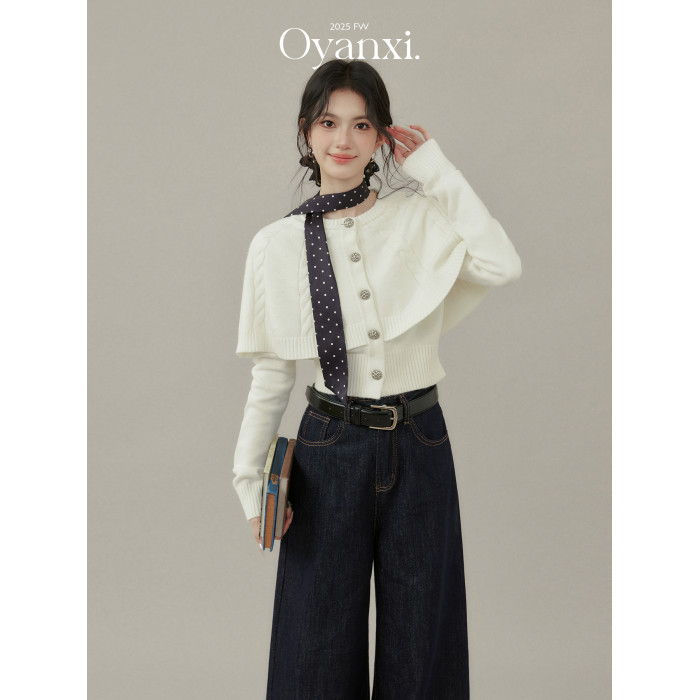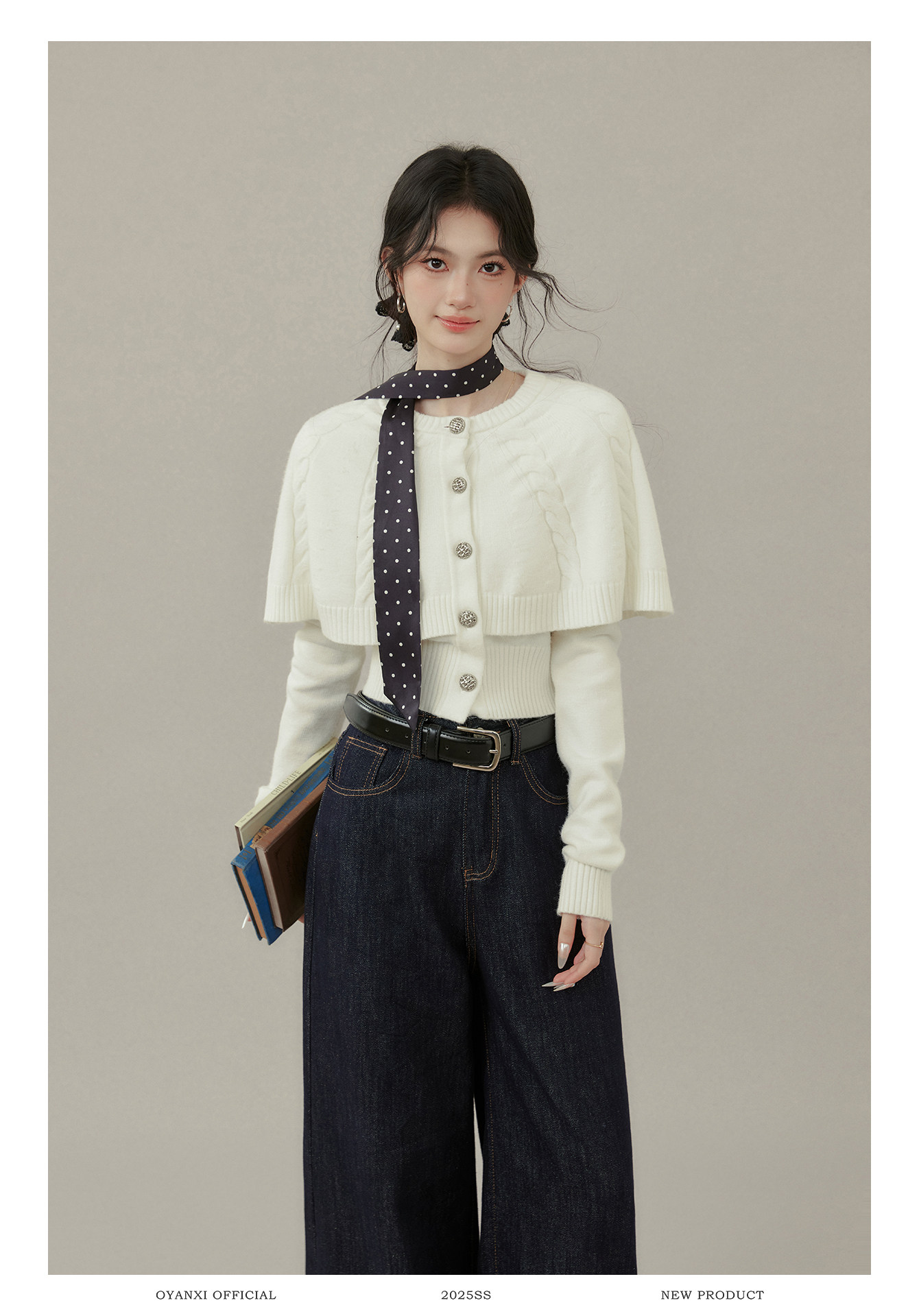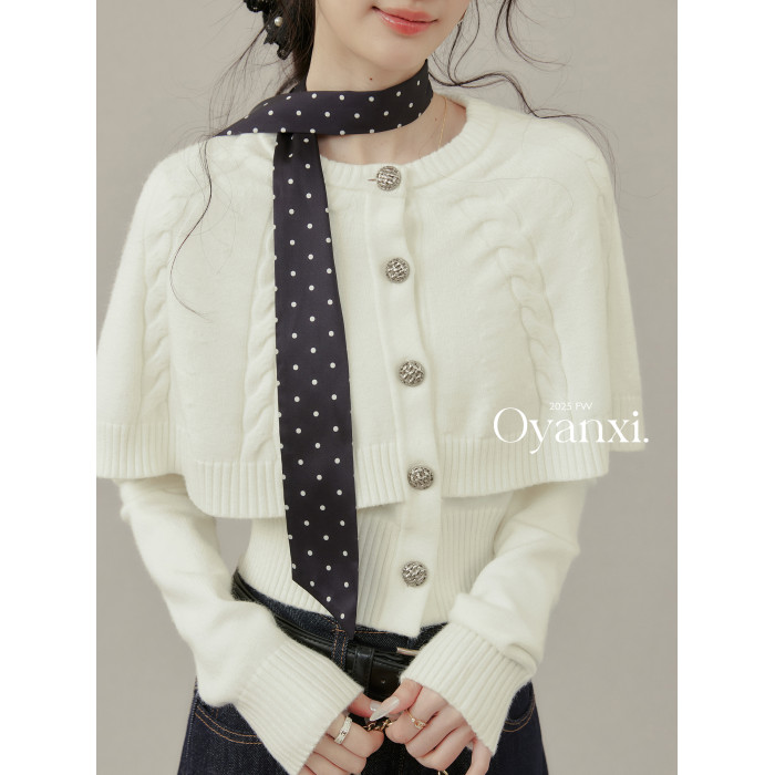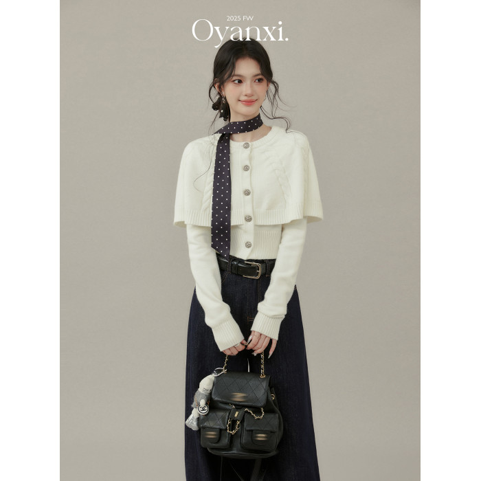 歐陽喜《 松綠玫瑰》鬥篷披肩獨特別致毛衣開衫女秋季假兩件上衣