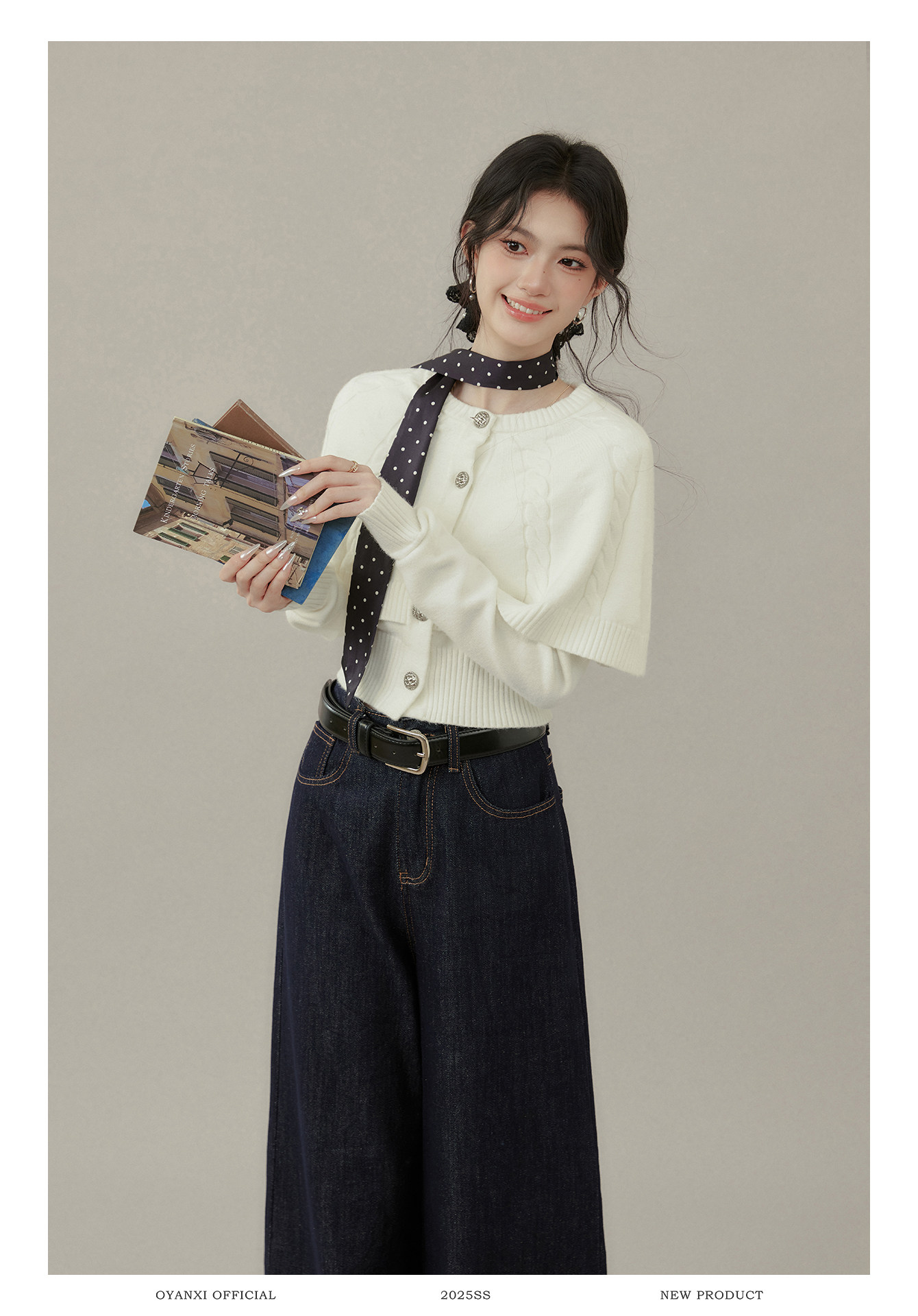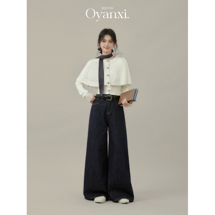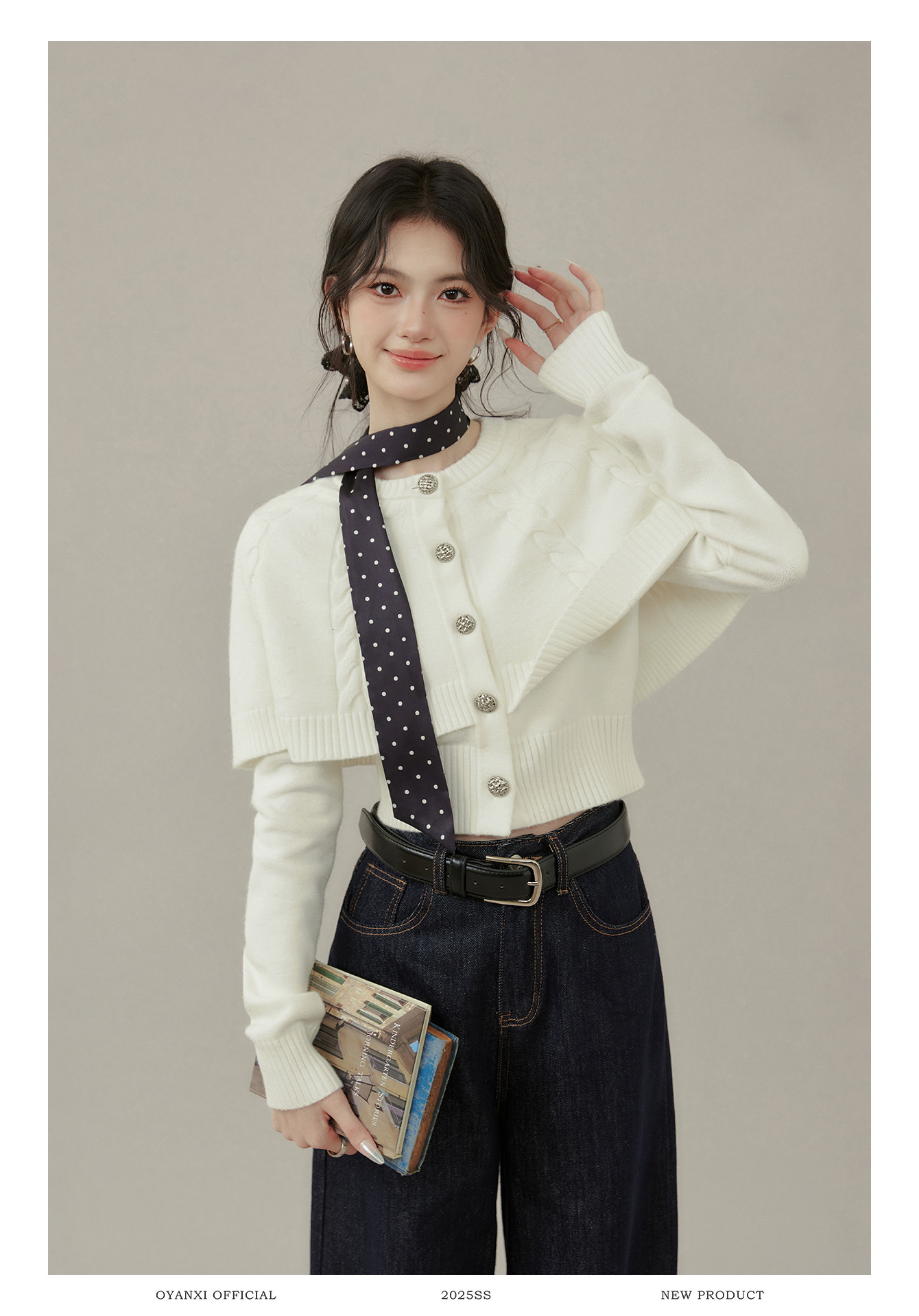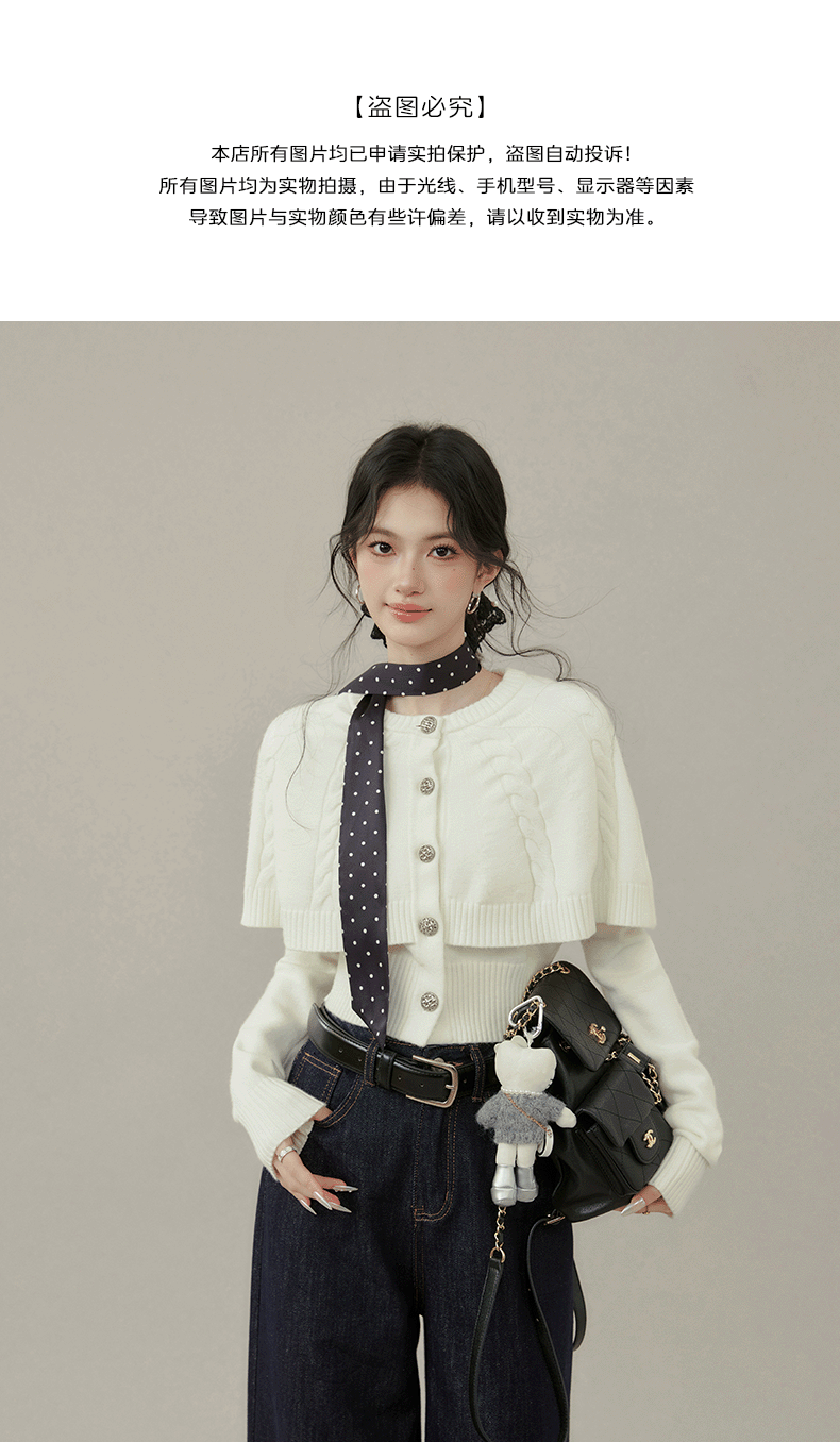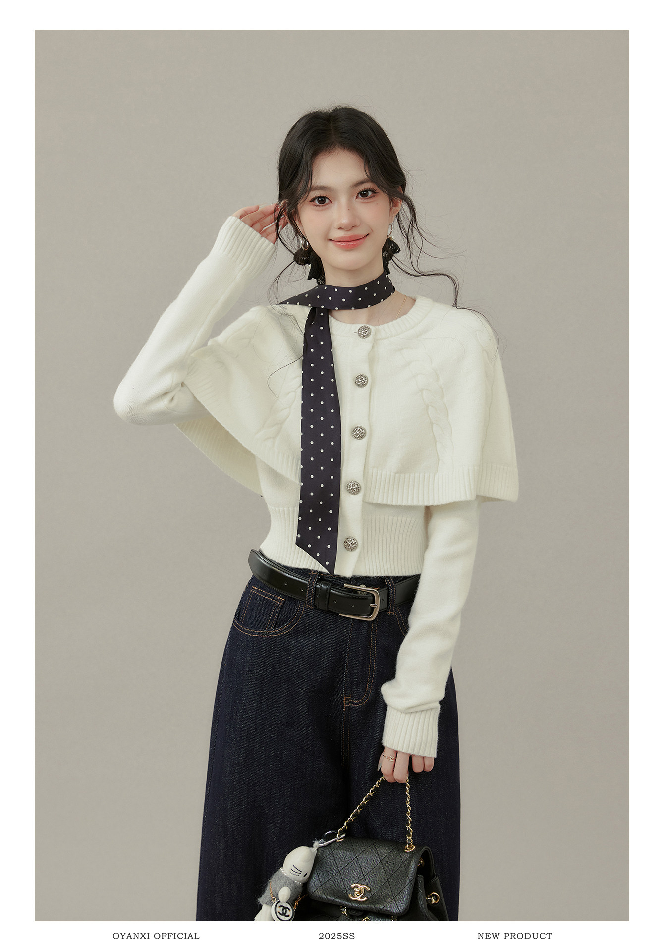 歐陽喜《 松綠玫瑰》鬥篷披肩獨特別致毛衣開衫女秋季假兩件上衣