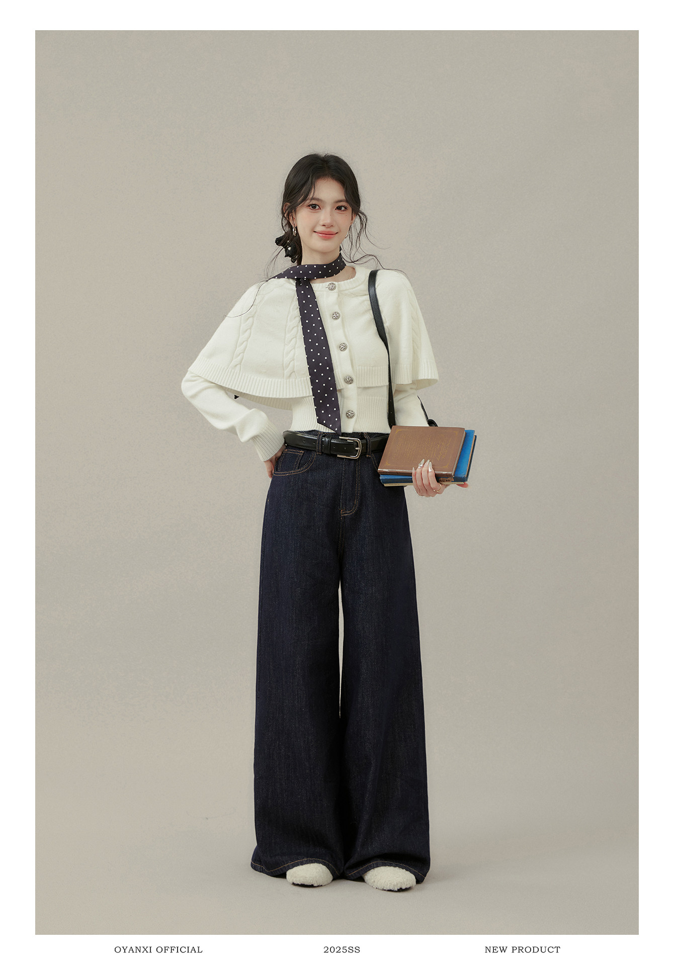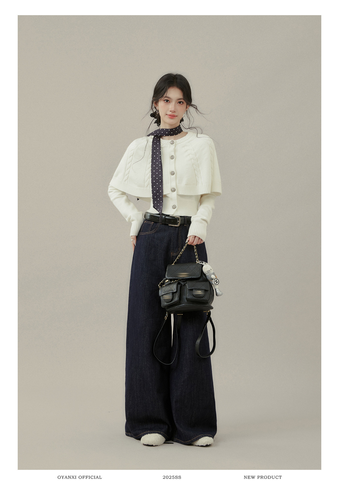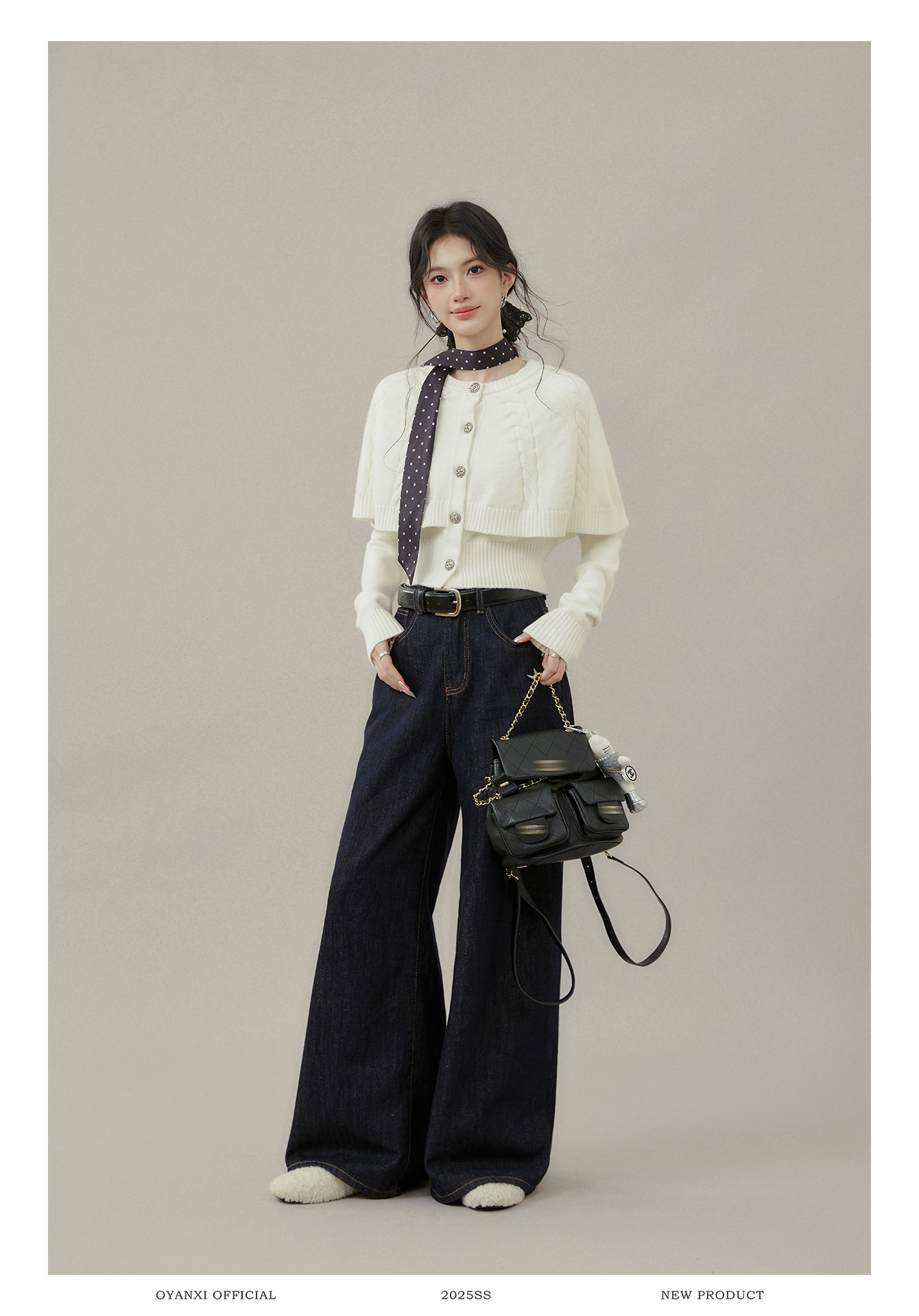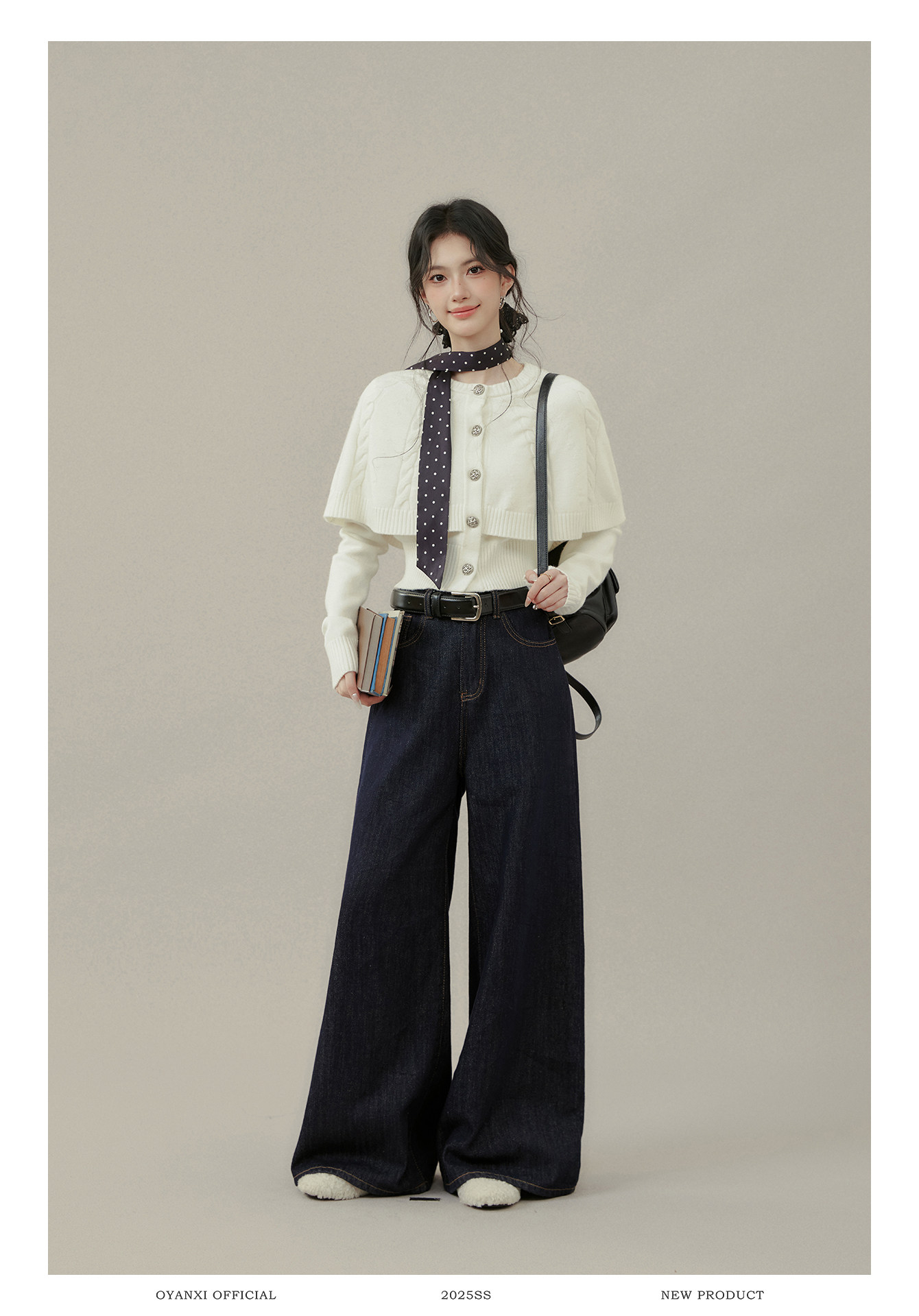 歐陽喜《 松綠玫瑰》鬥篷披肩獨特別致毛衣開衫女秋季假兩件上衣