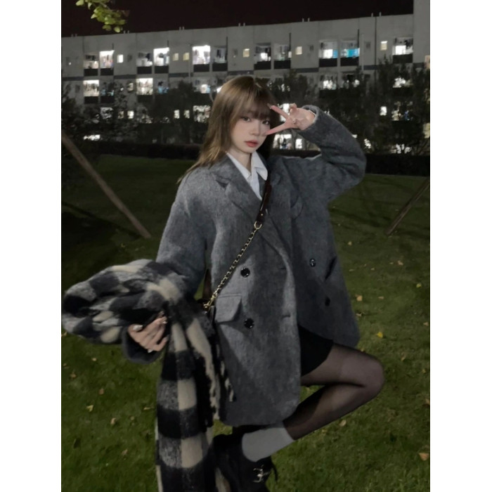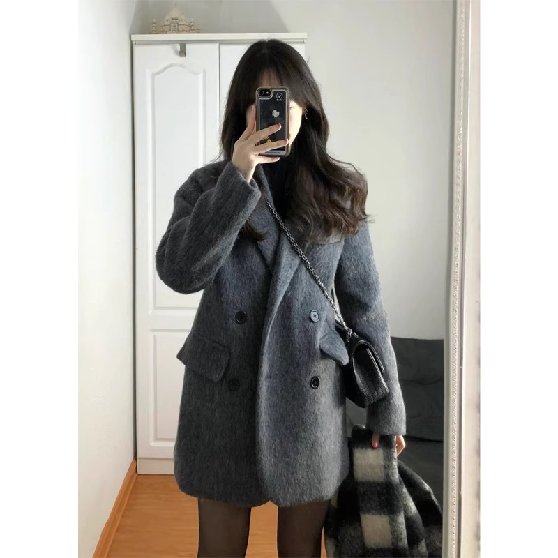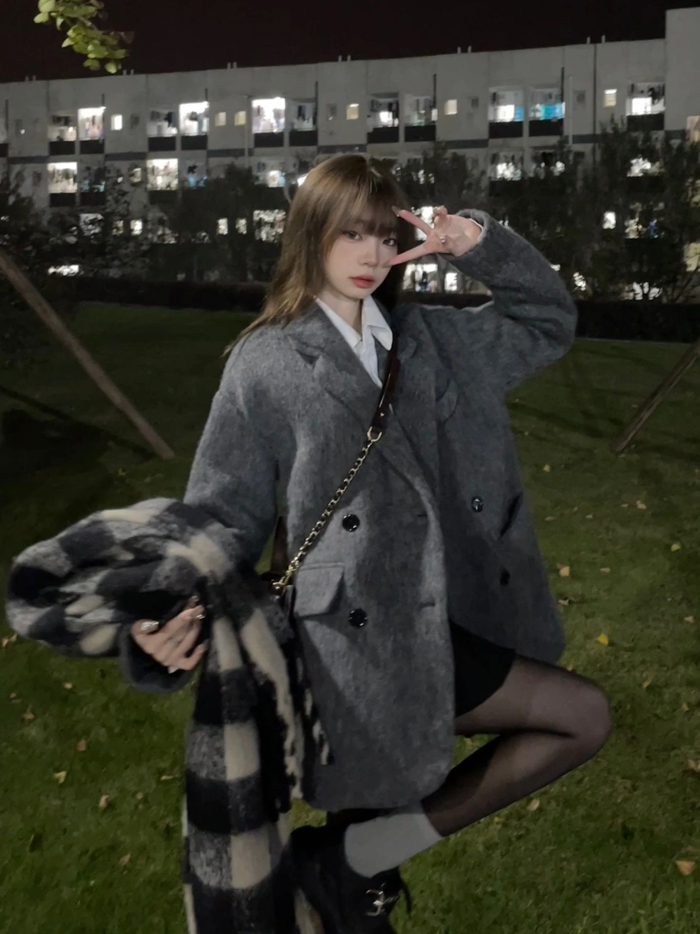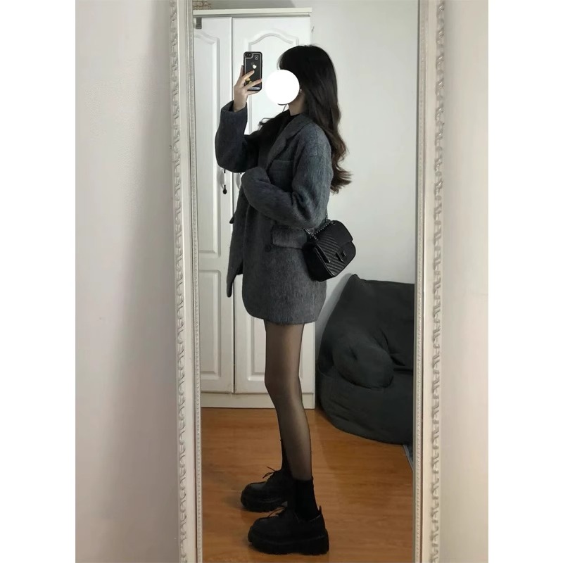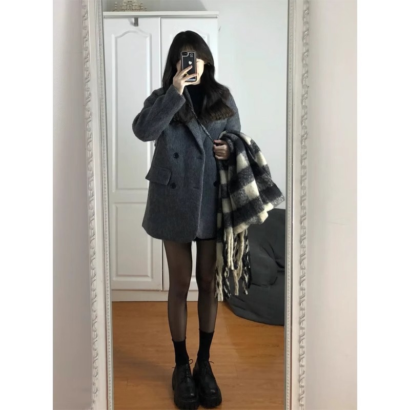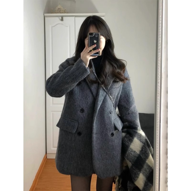 灰色西裝式毛呢外套夾棉加厚呢子大衣女秋冬高級感2025新款小個子