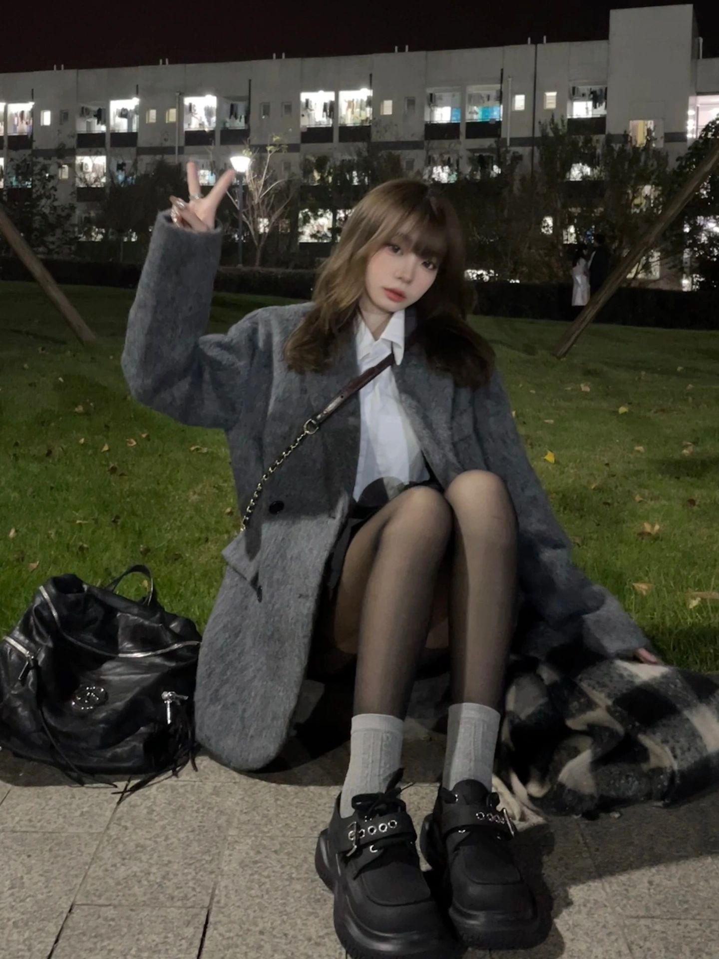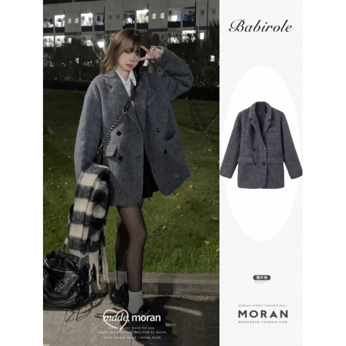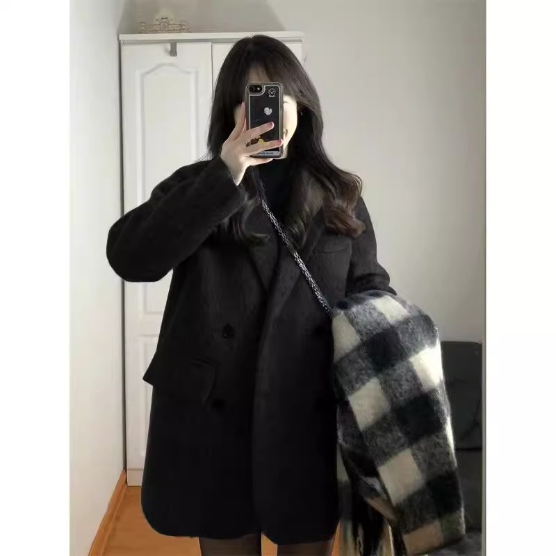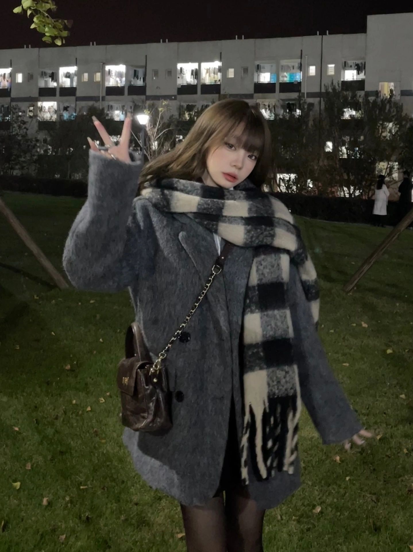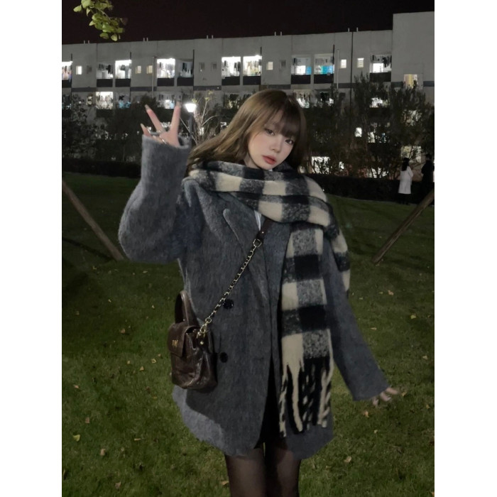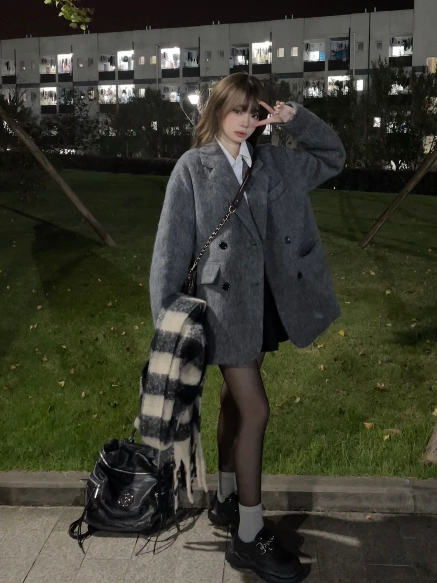 灰色西裝式毛呢外套夾棉加厚呢子大衣女秋冬高級感2025新款小個子