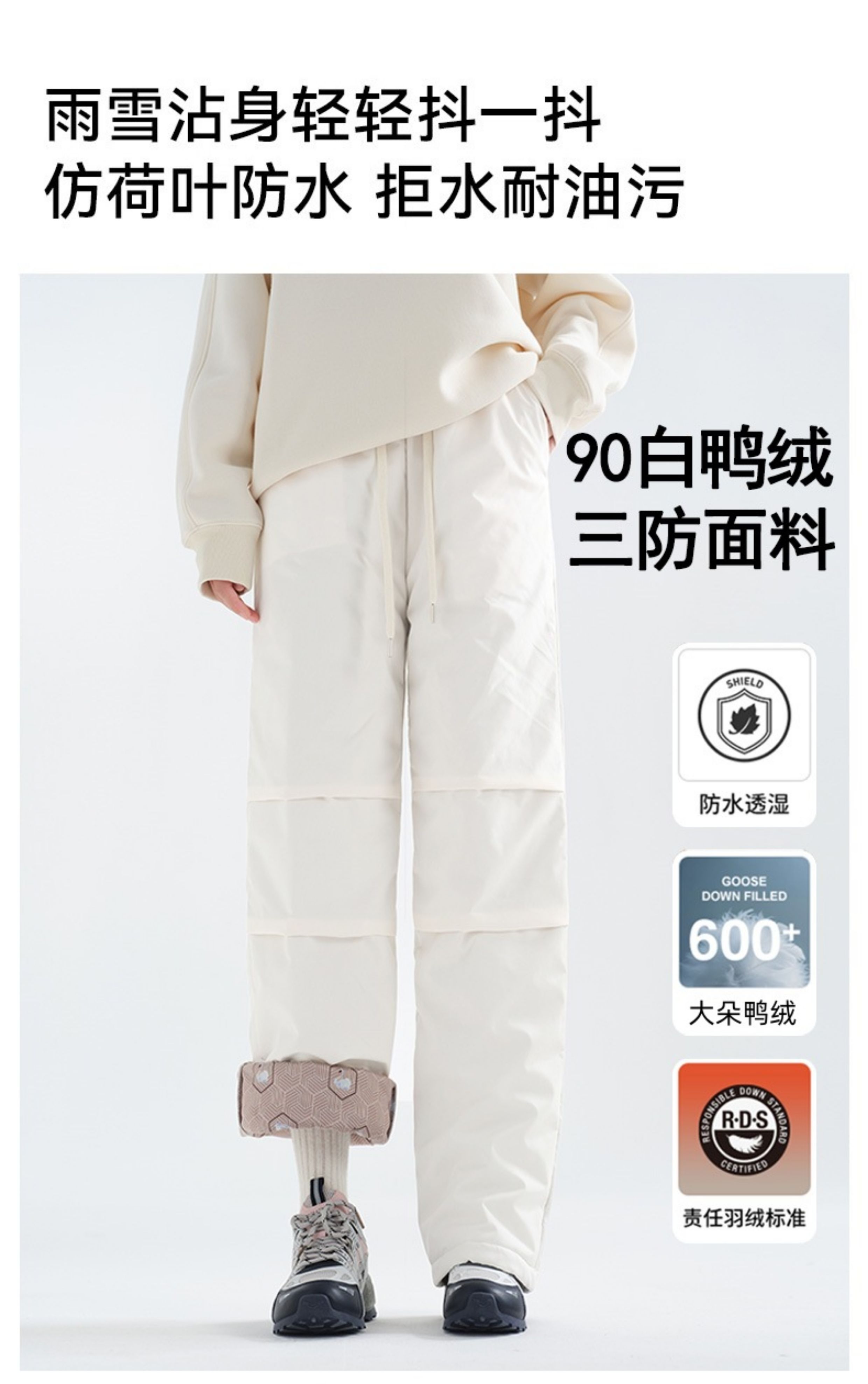 | 貨號 | 東北延吉北海道阿勒泰滑雪羽羢褲女外穿2025新款防水防寒保暖棉褲哈爾濱雪鄕冬季滑雪加羢 |