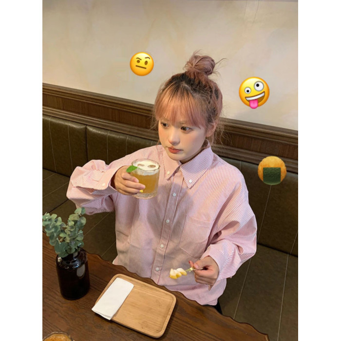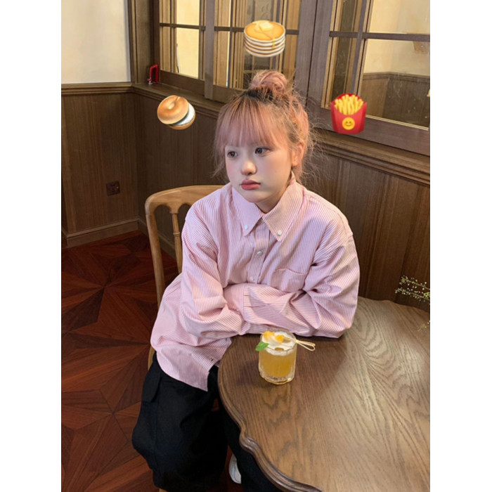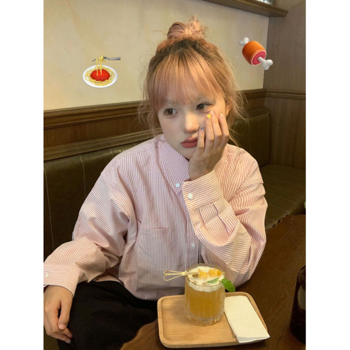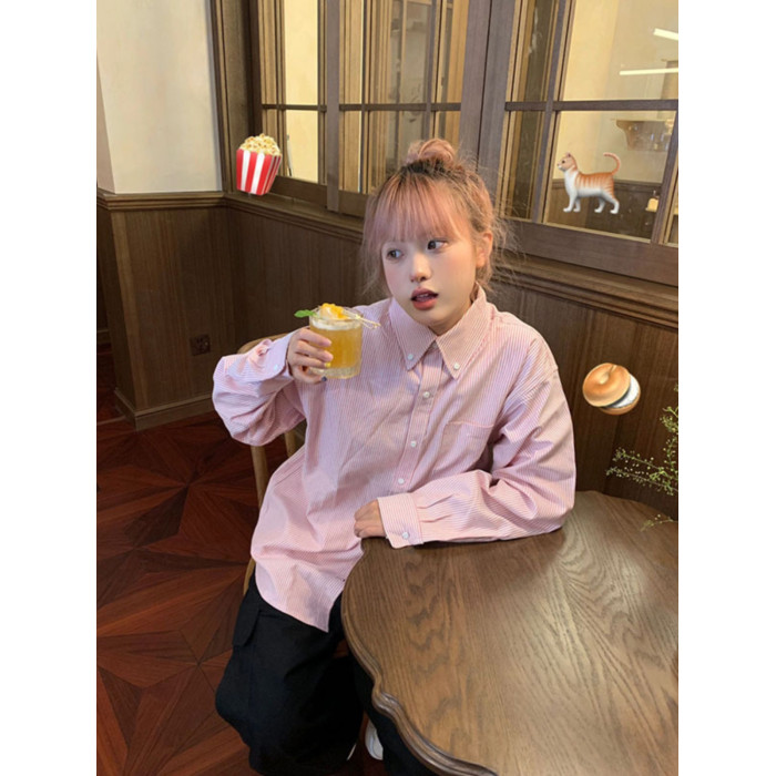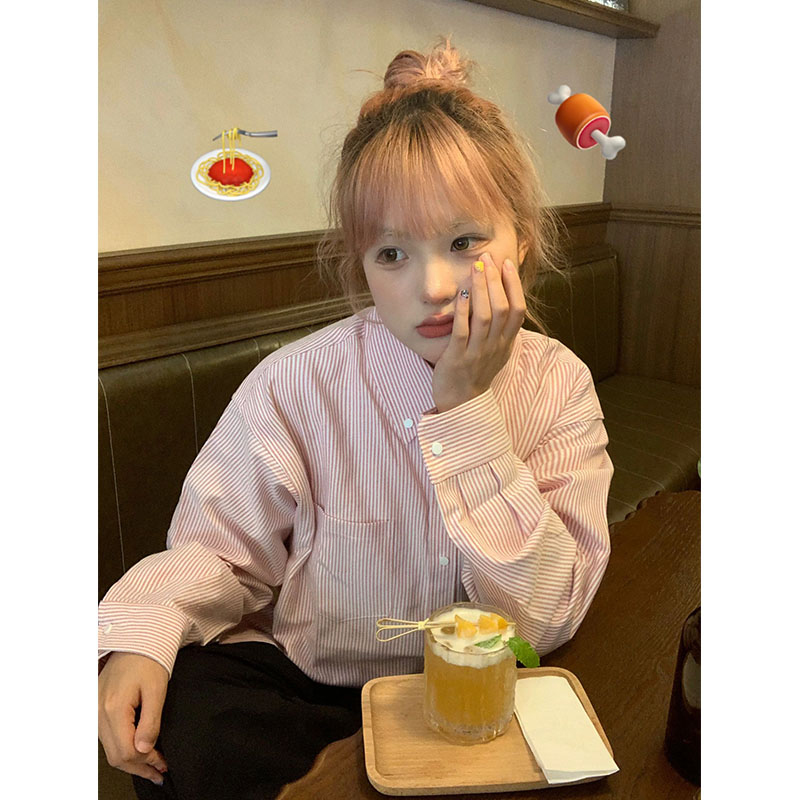 日系復古vintage條紋兔子長袖襯衫女寬松設計感小衆洋氣減齡外套