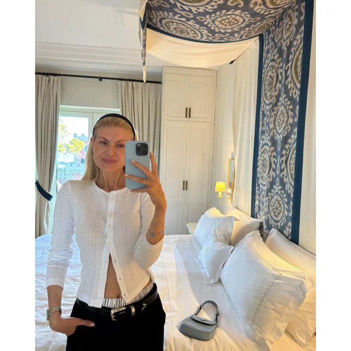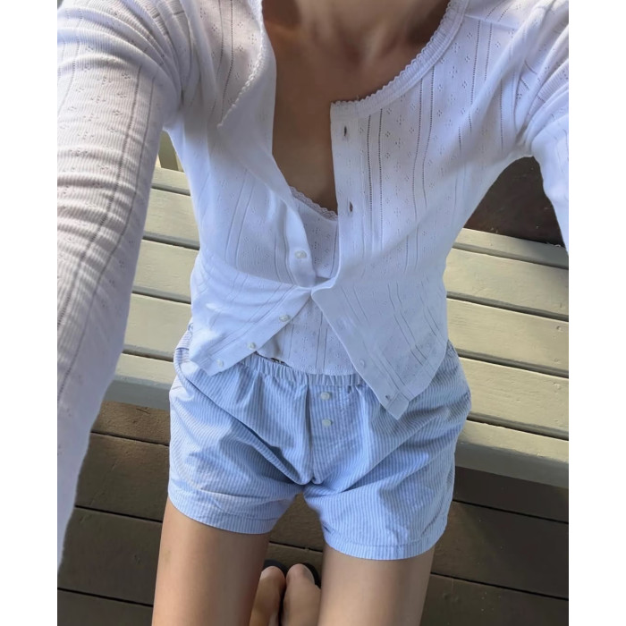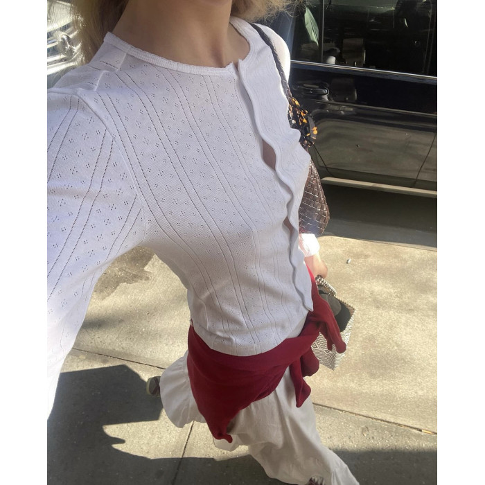 COUCOU女士白色針織開衫 長袖長款秋季小外套