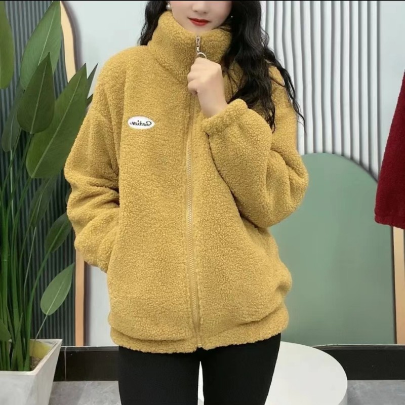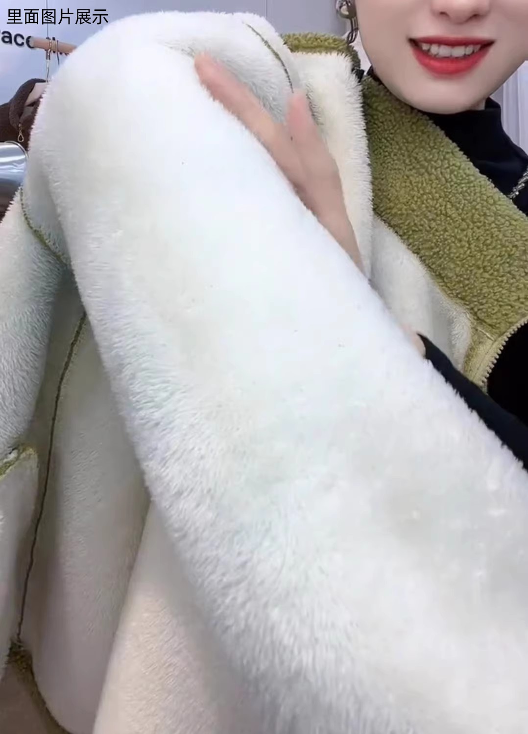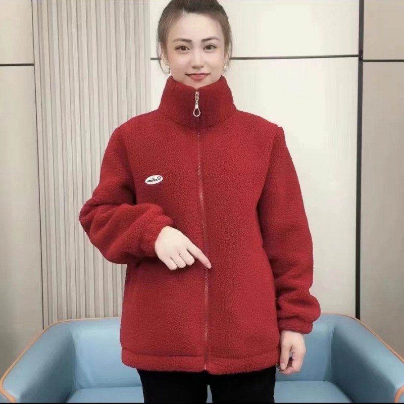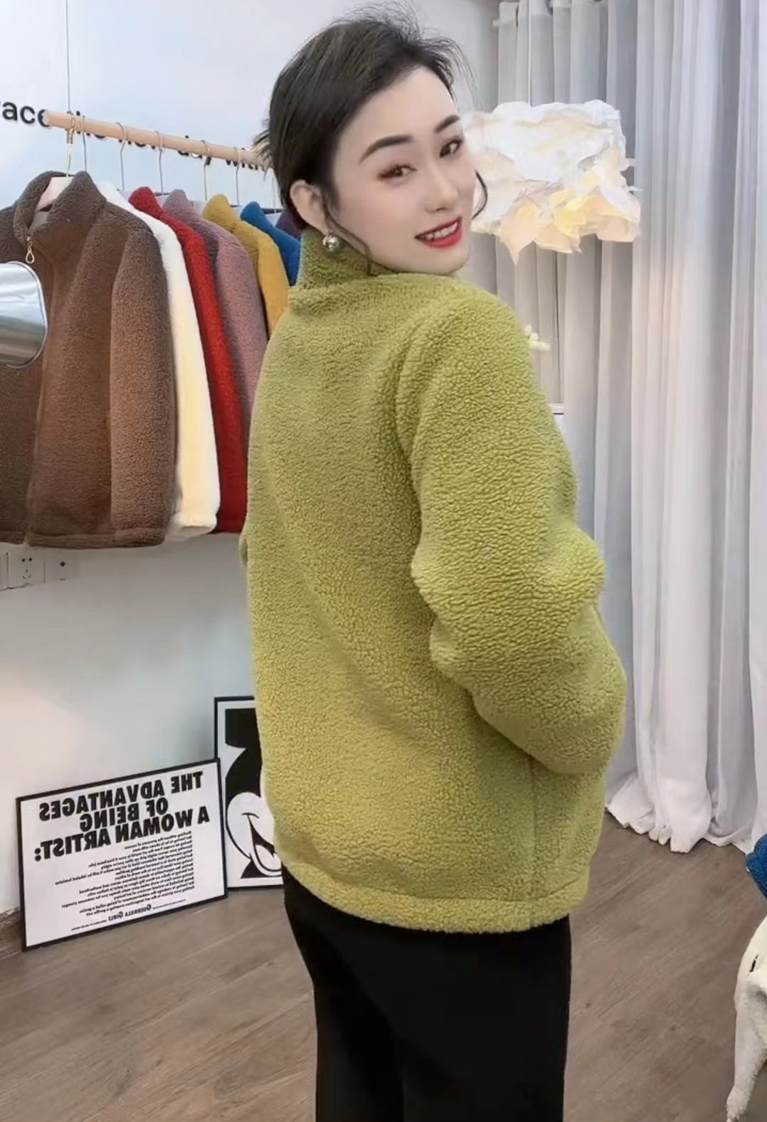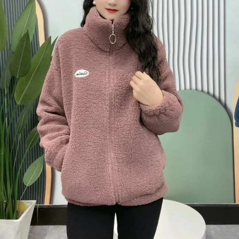加絨一體絨外套女秋冬休閒減齡洋氣加厚立領顆粒絨保暖羊羔毛棉衣