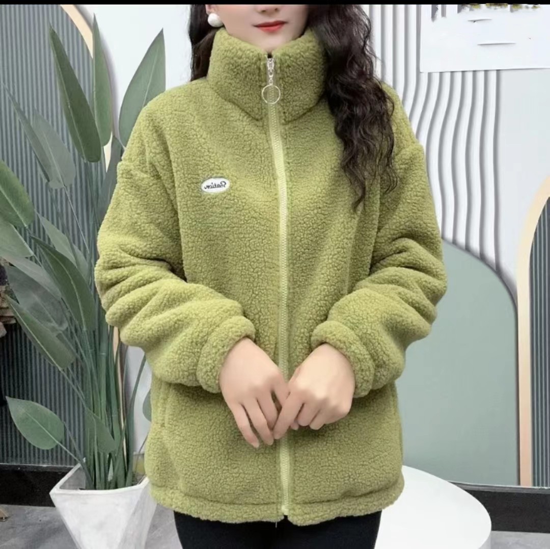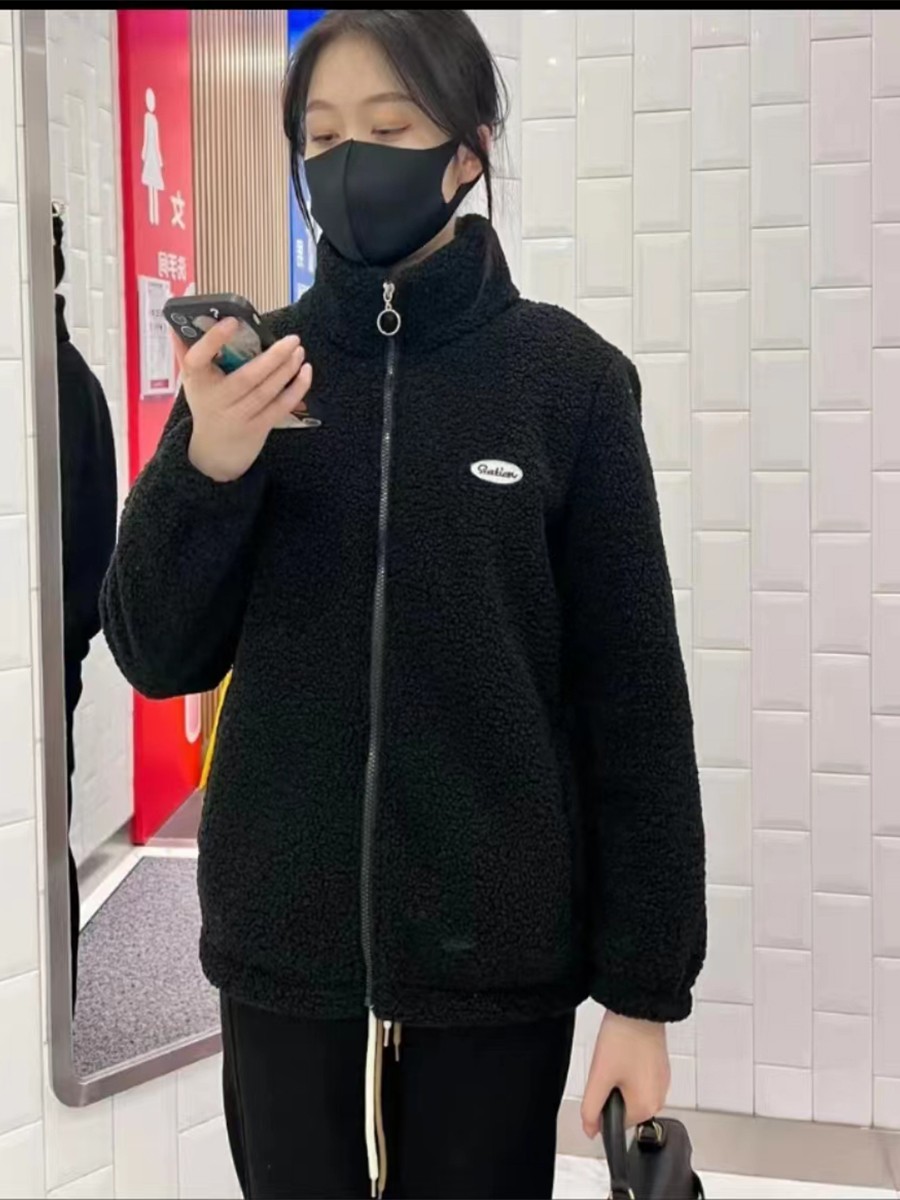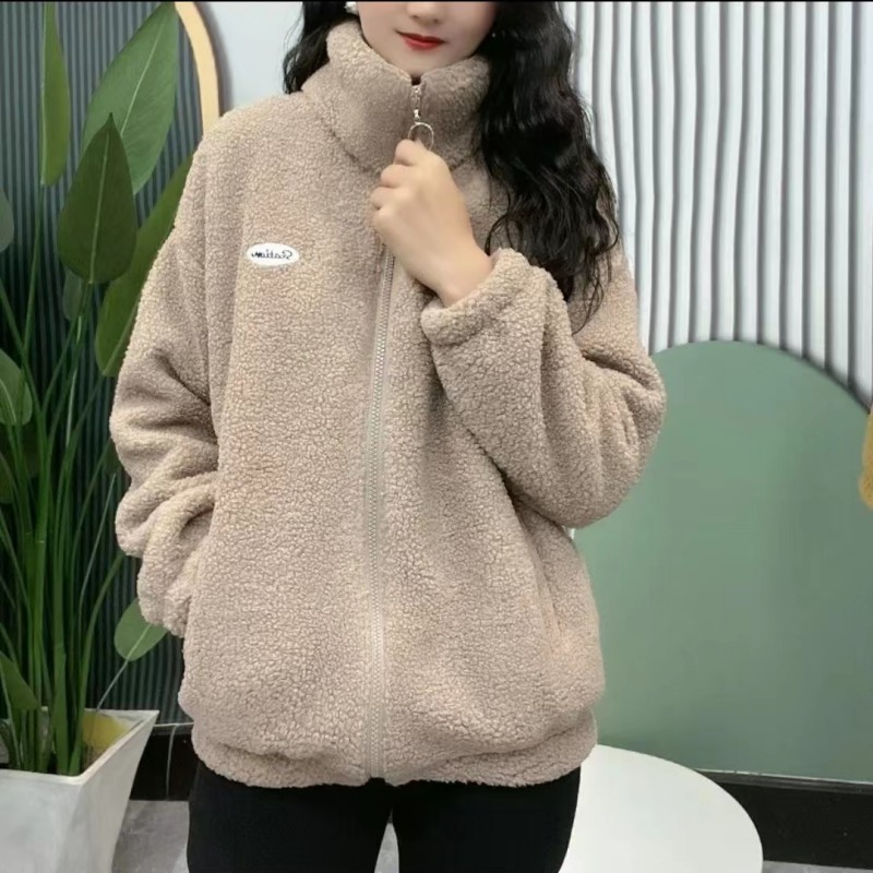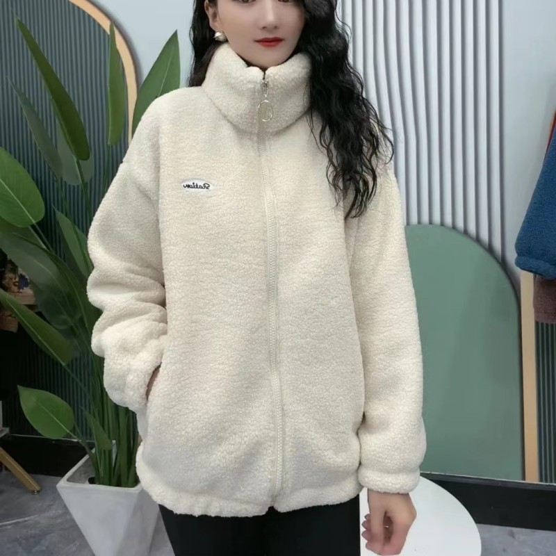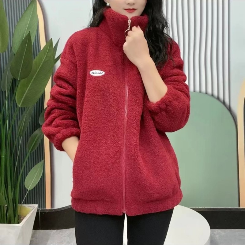 加絨一體絨外套女秋冬休閒減齡洋氣加厚立領顆粒絨保暖羊羔毛棉衣