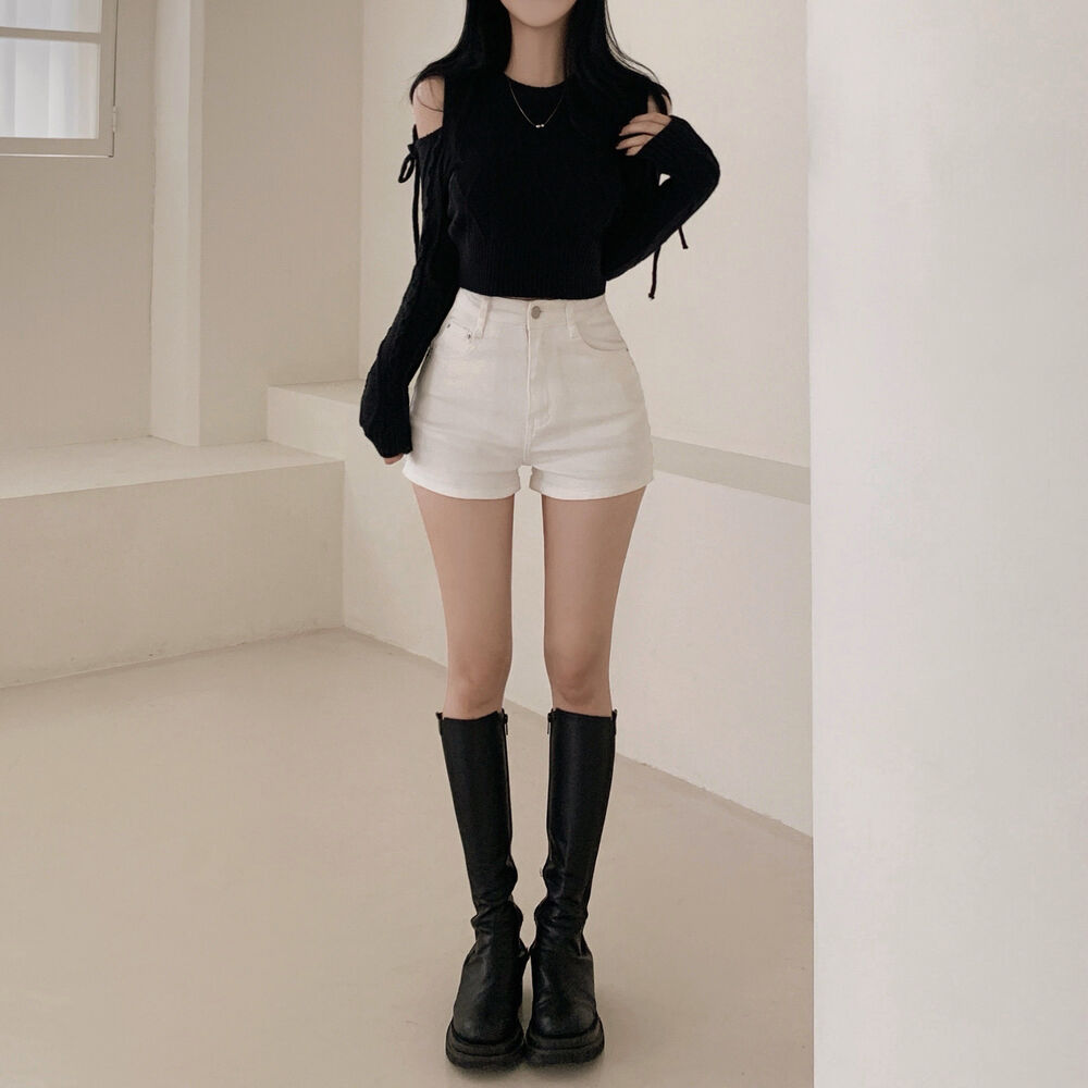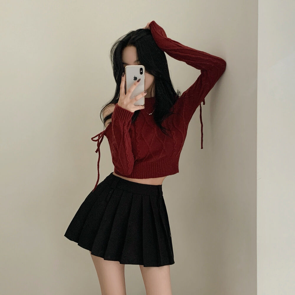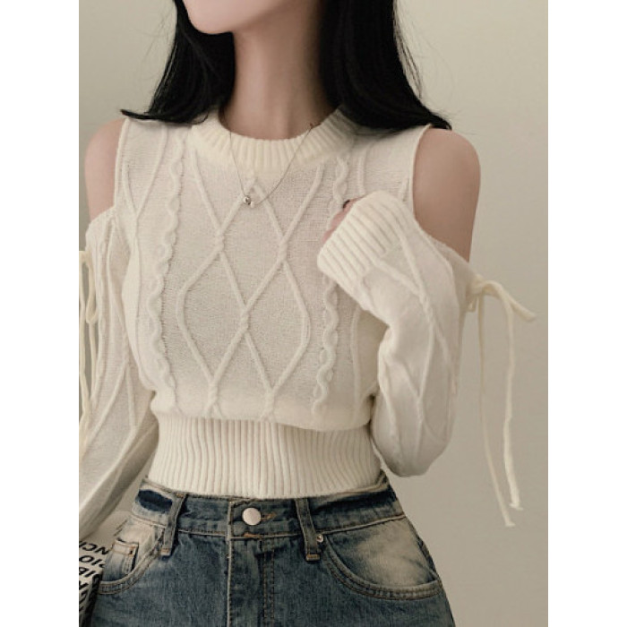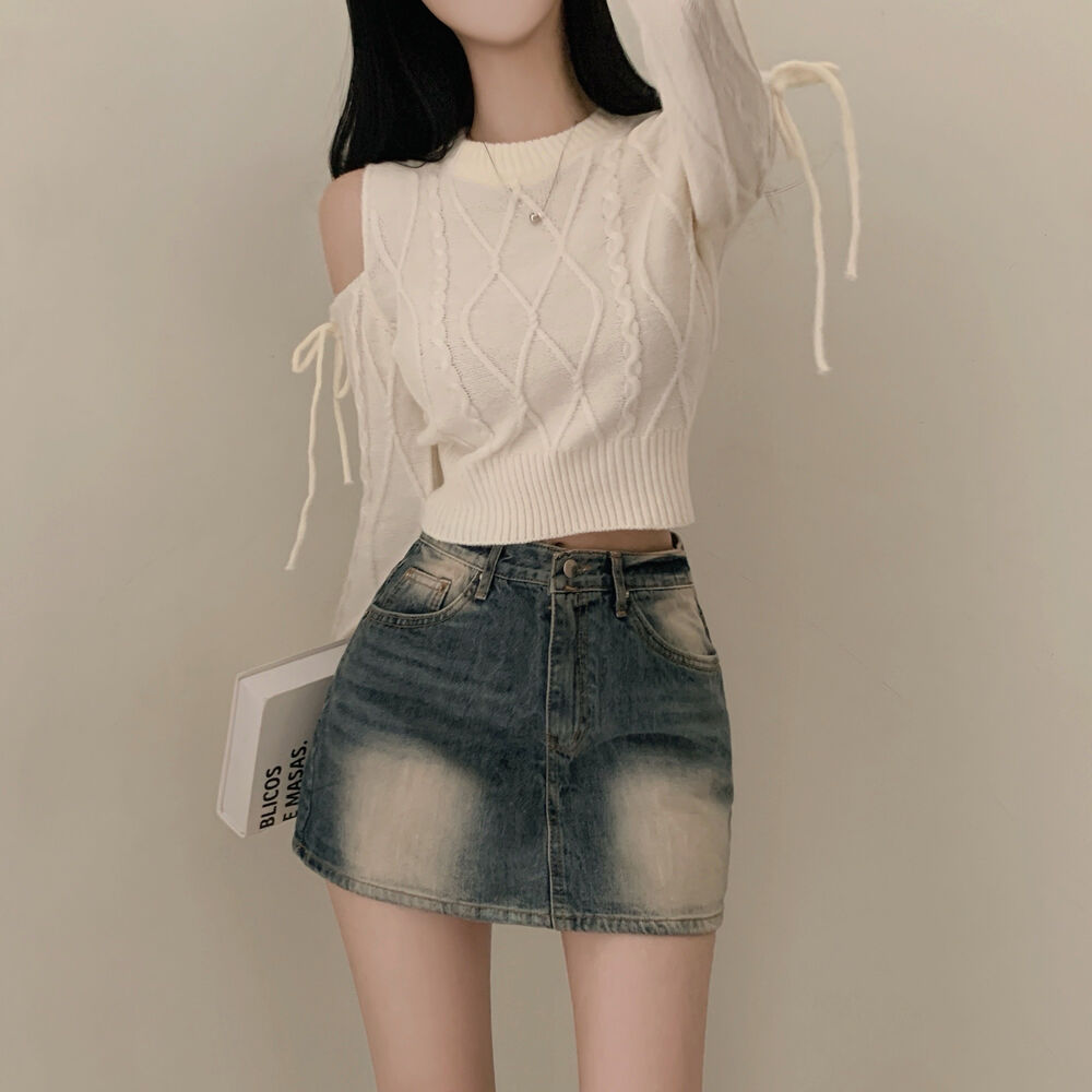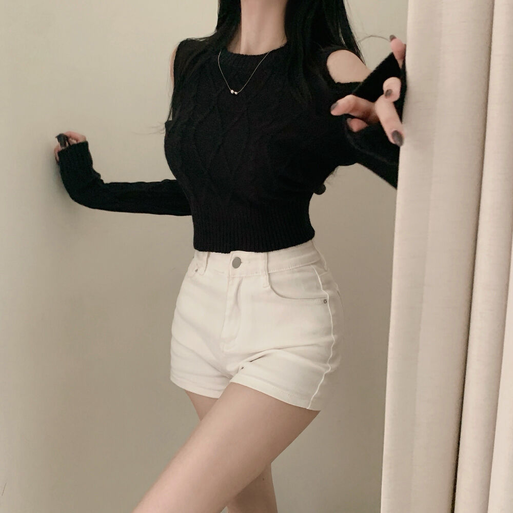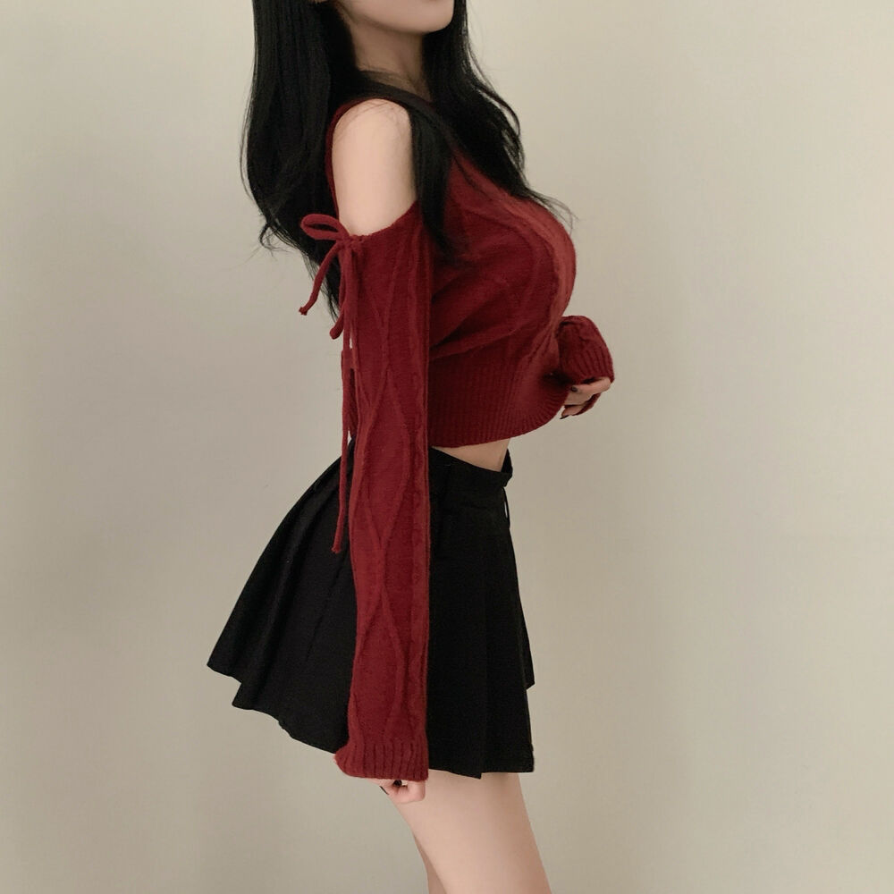 毛衣女春秋季韓系純欲露肩麻花針織衫設計感小衆高腰長袖短款上衣