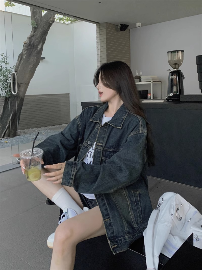 大碼美式水洗做舊牛仔外套女春裝2025年新款潮流寬松長袖夾克上衣