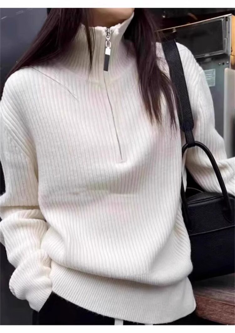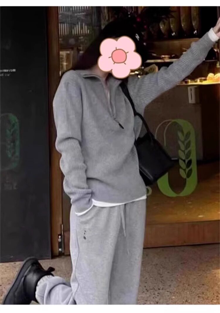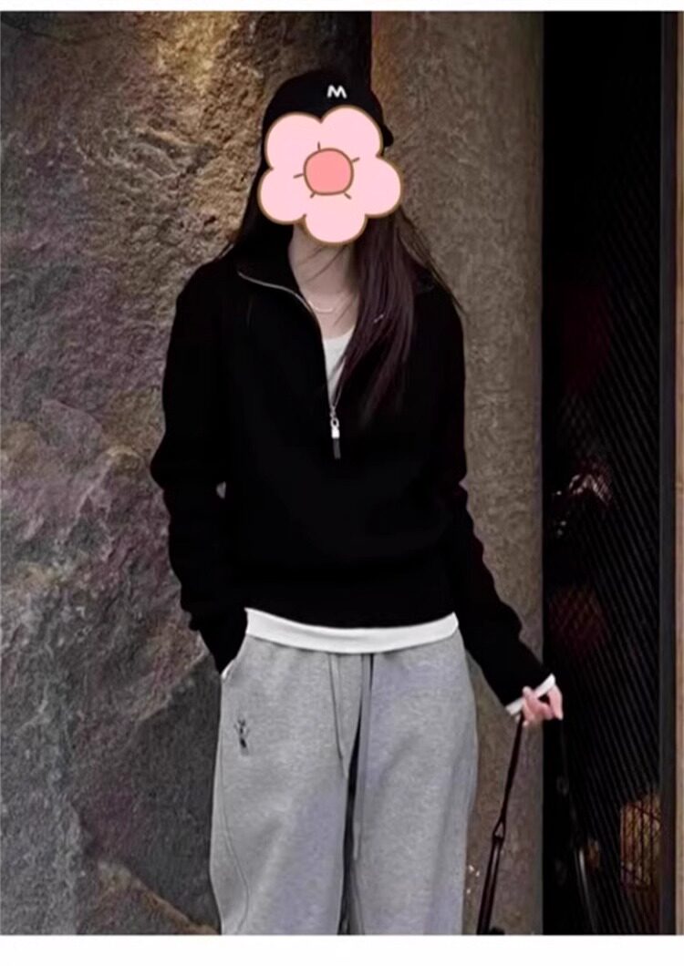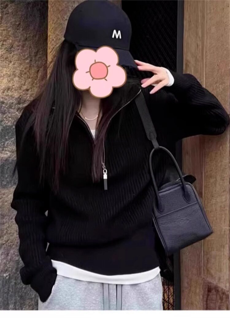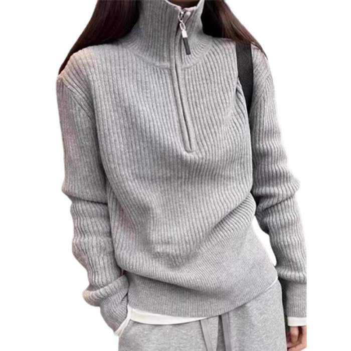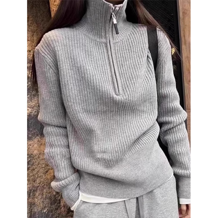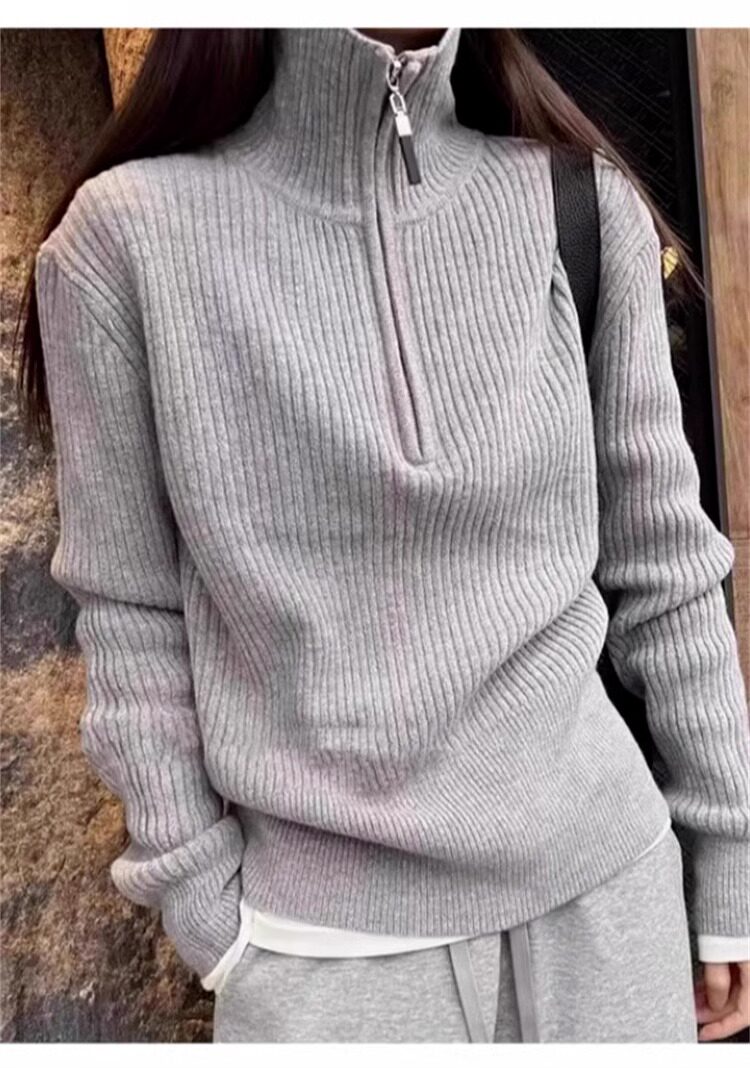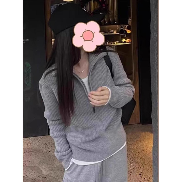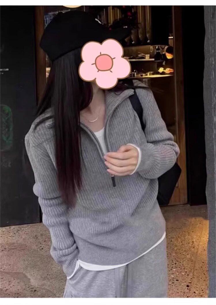 灰色半拉鍊高領毛衣打底衫女2025新款秋冬季內搭針織衫上衣設計感