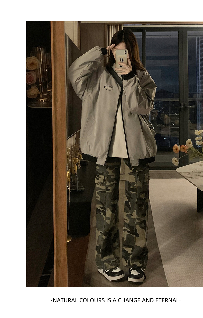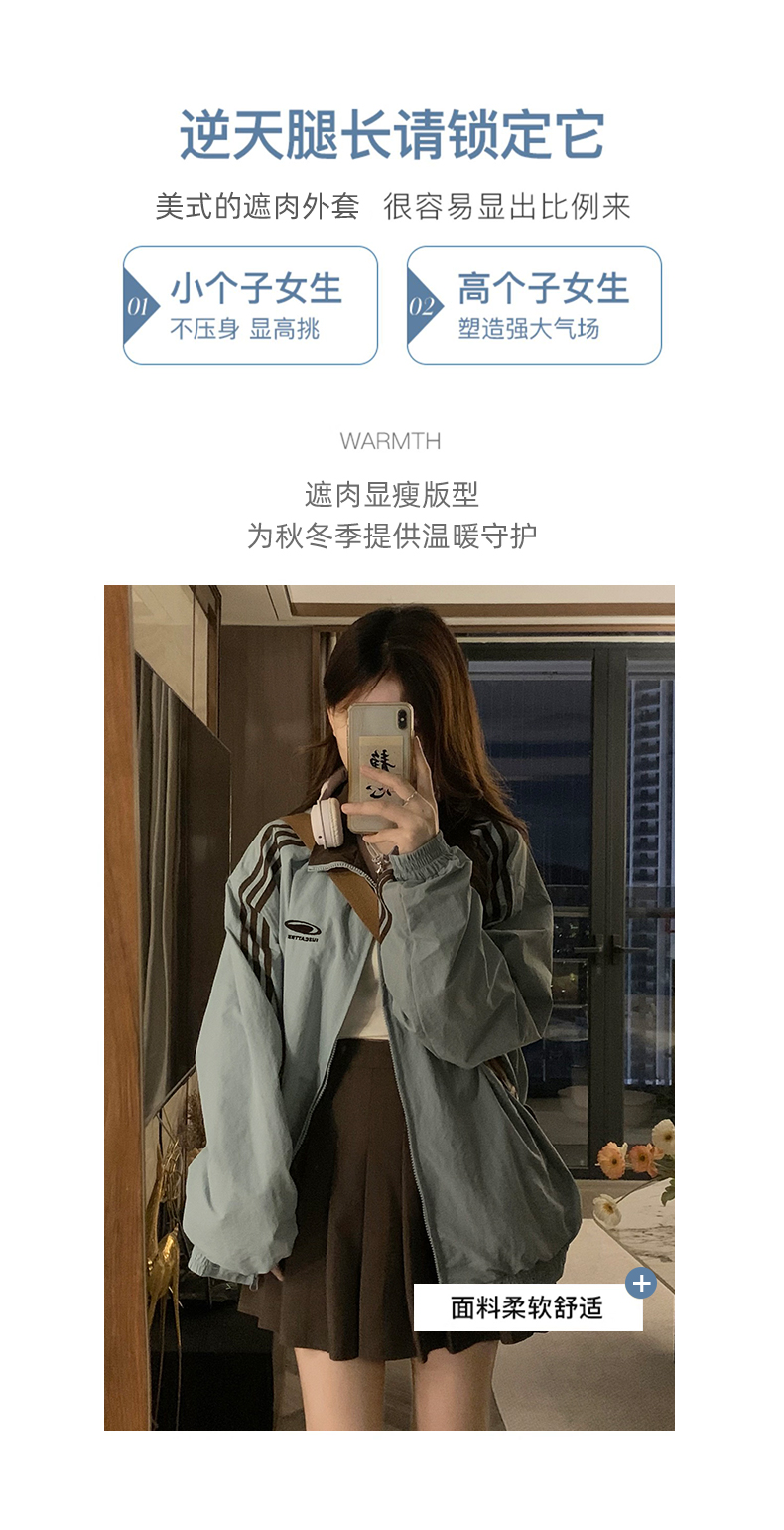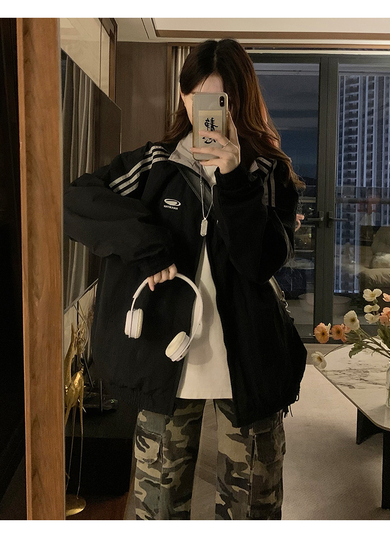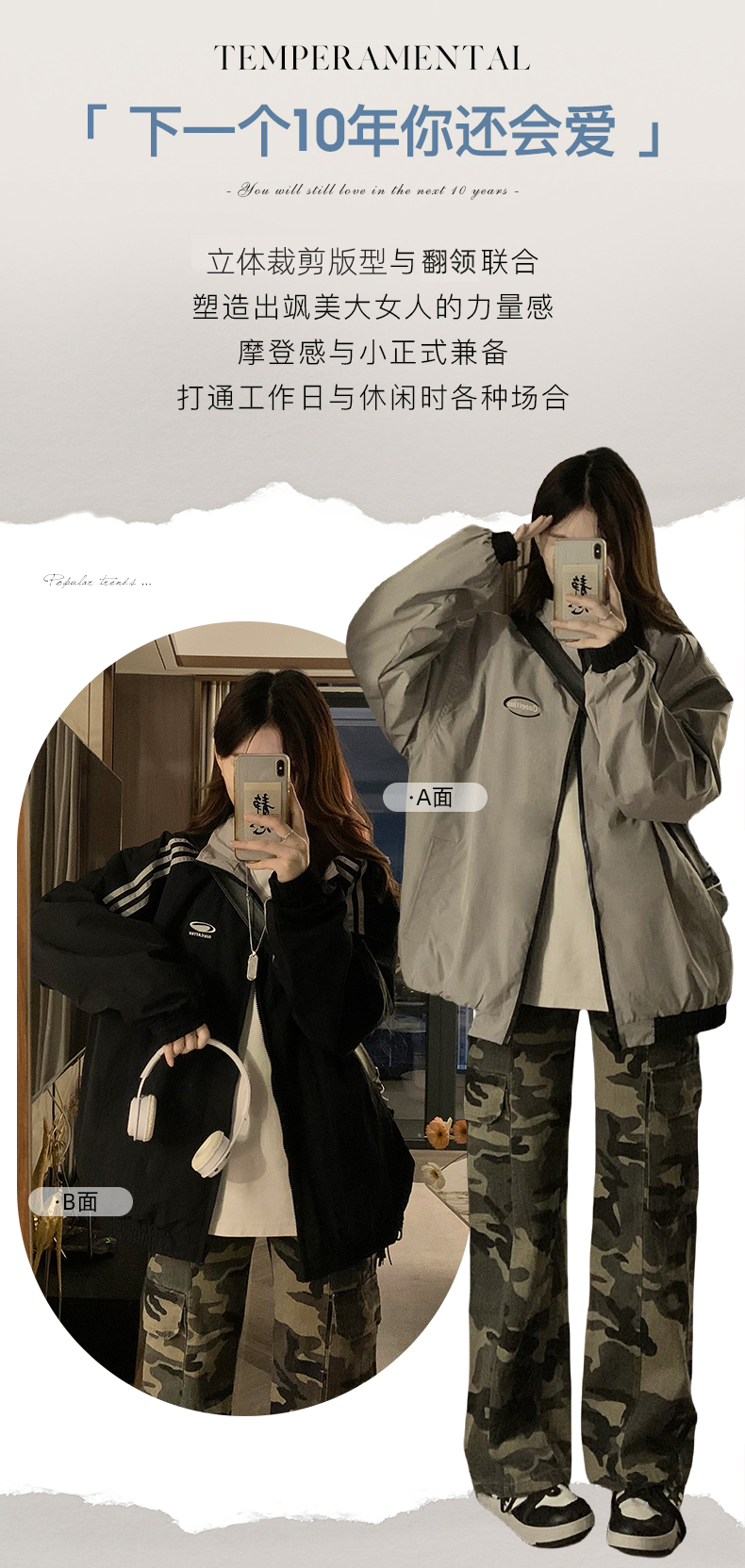 美式復古三條杠雙面穿外套男女春秋款ins潮牌寬松情侶夾克棒球服