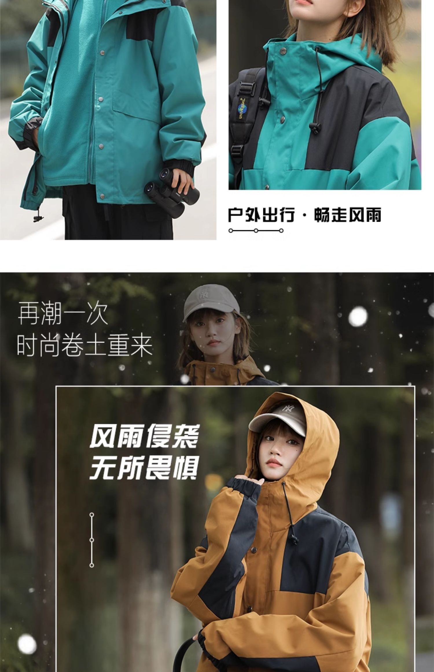 真維斯沖鋒衣三合一女款春秋季可拆卸外套防風防水秋冬登山服女生
