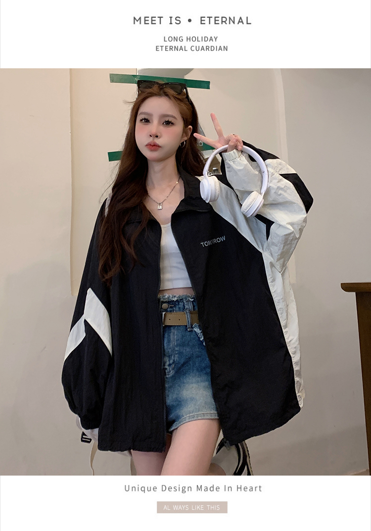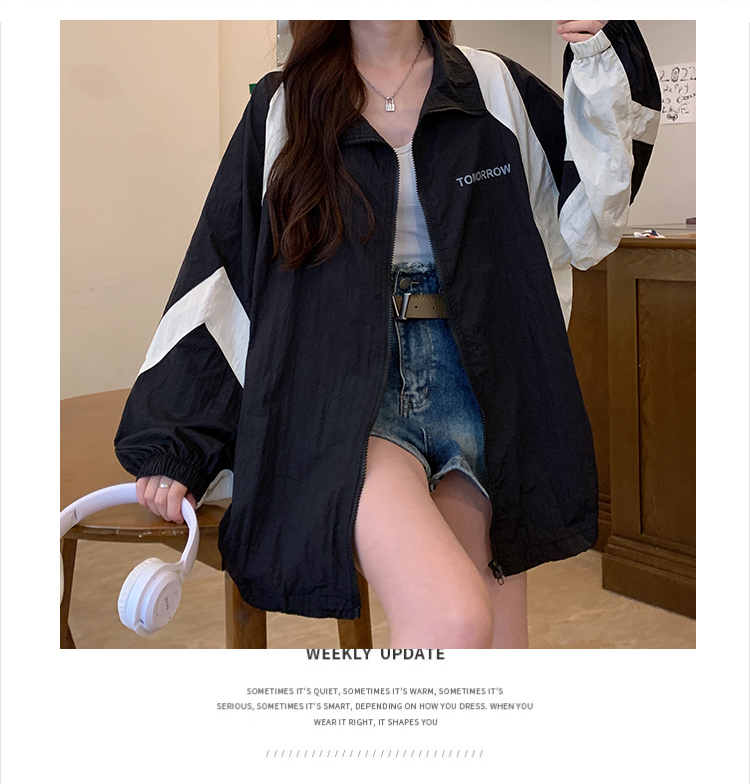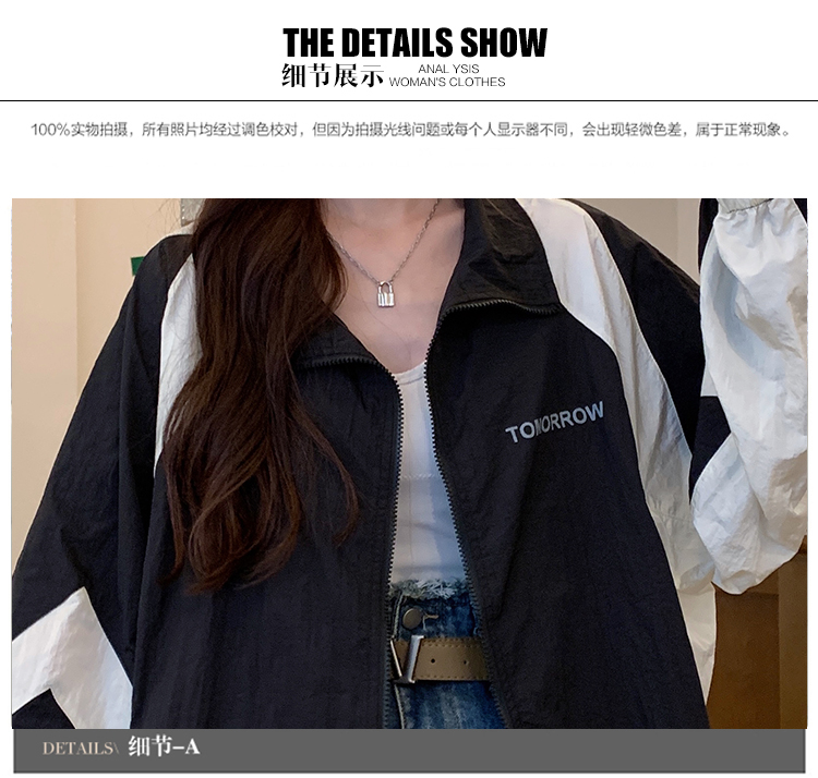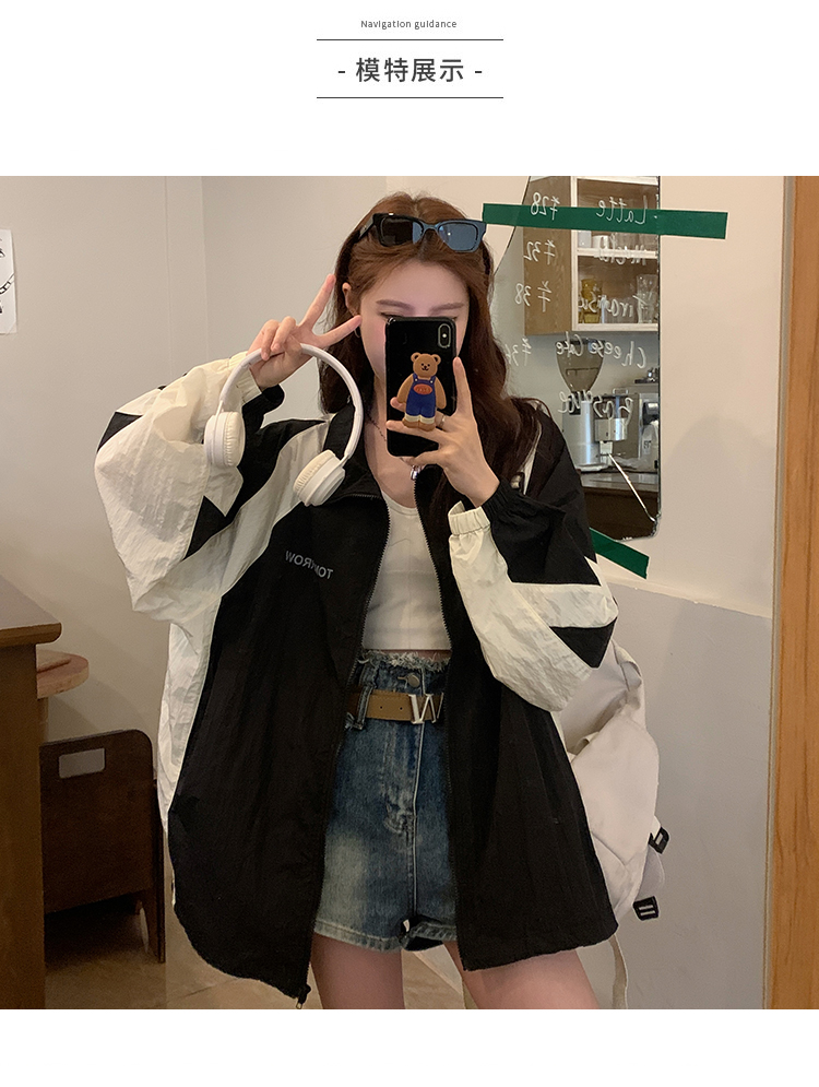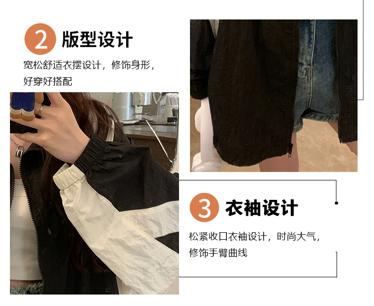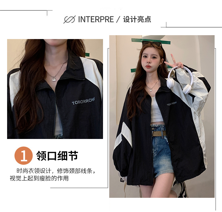 撞色防曬服女2025夏季新款港風寬松大碼休閒冰絲運動沖鋒衣外套潮