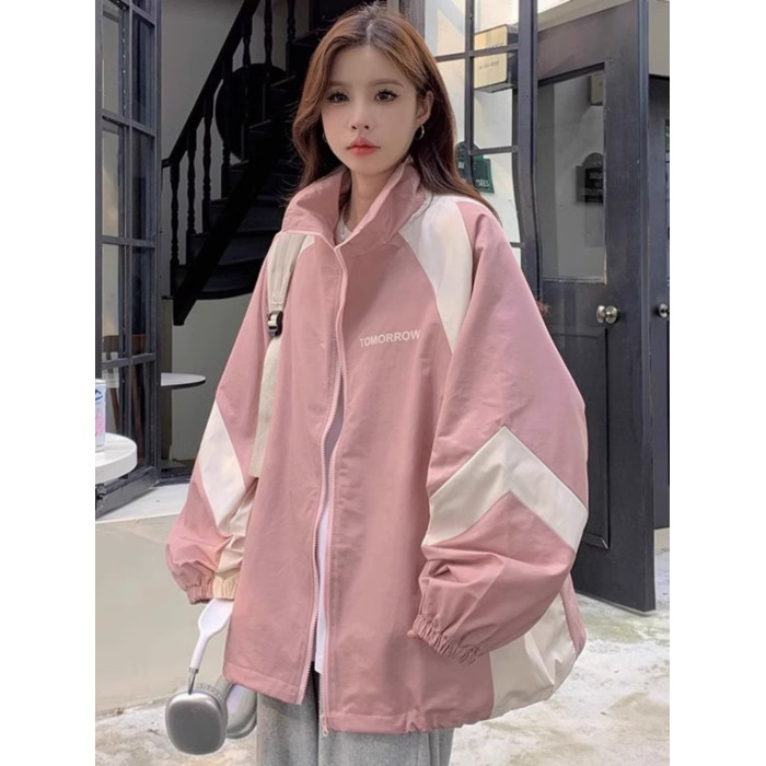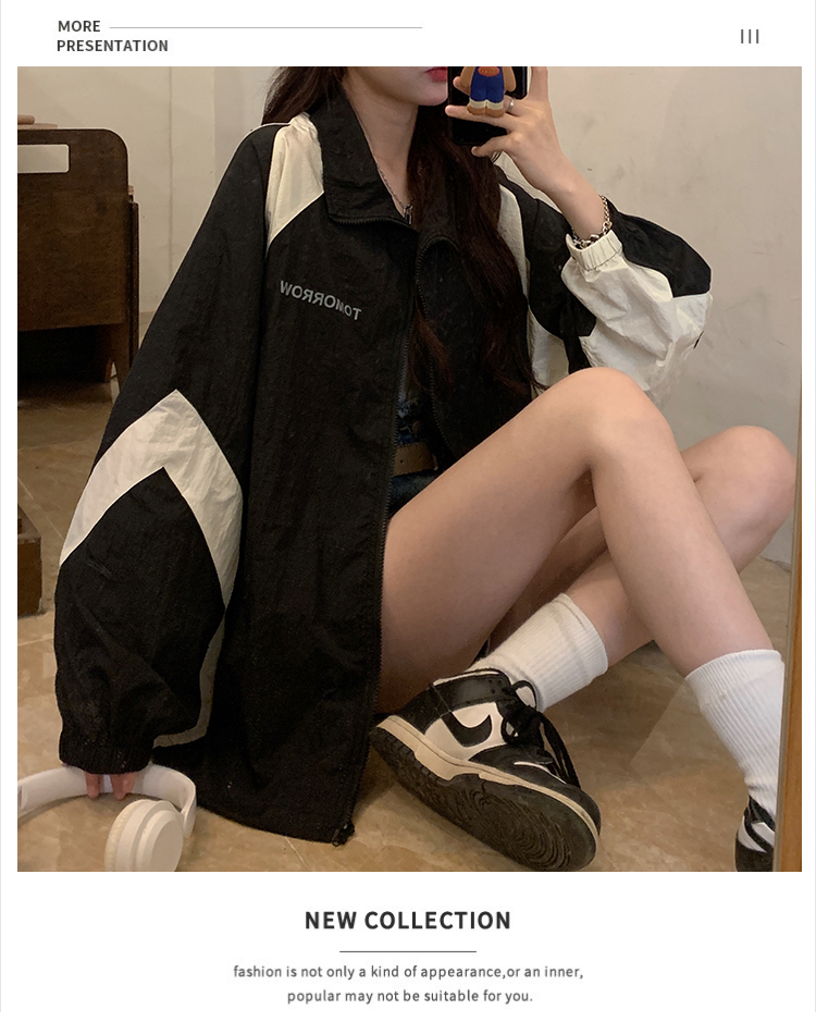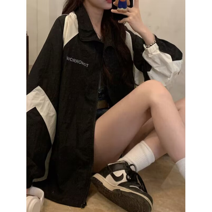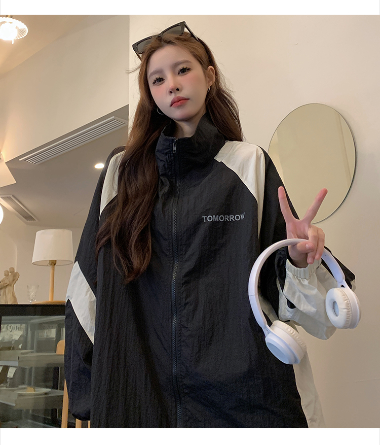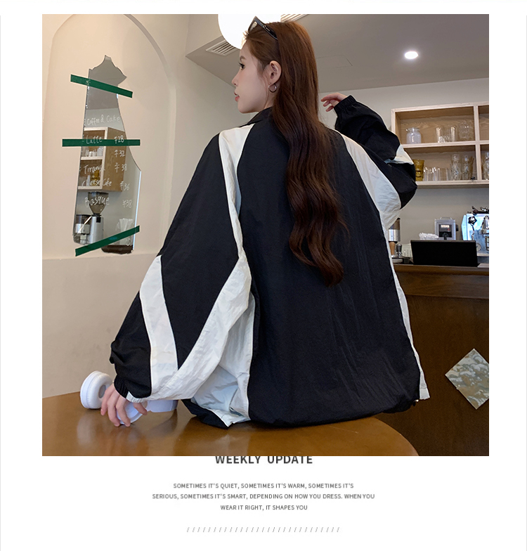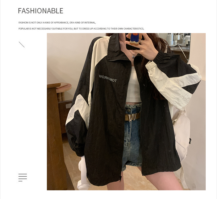 撞色防曬服女2025夏季新款港風寬松大碼休閒冰絲運動沖鋒衣外套潮