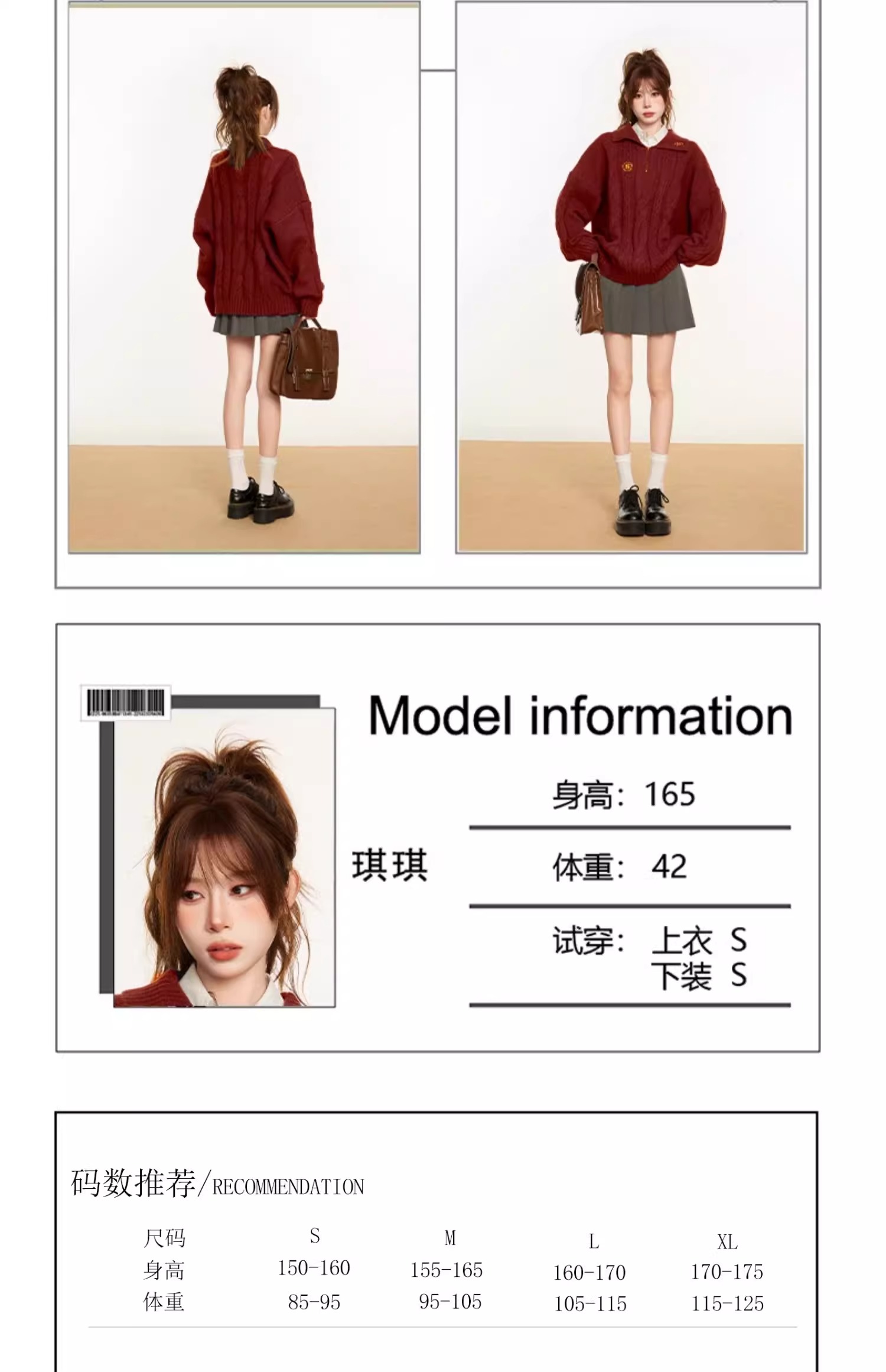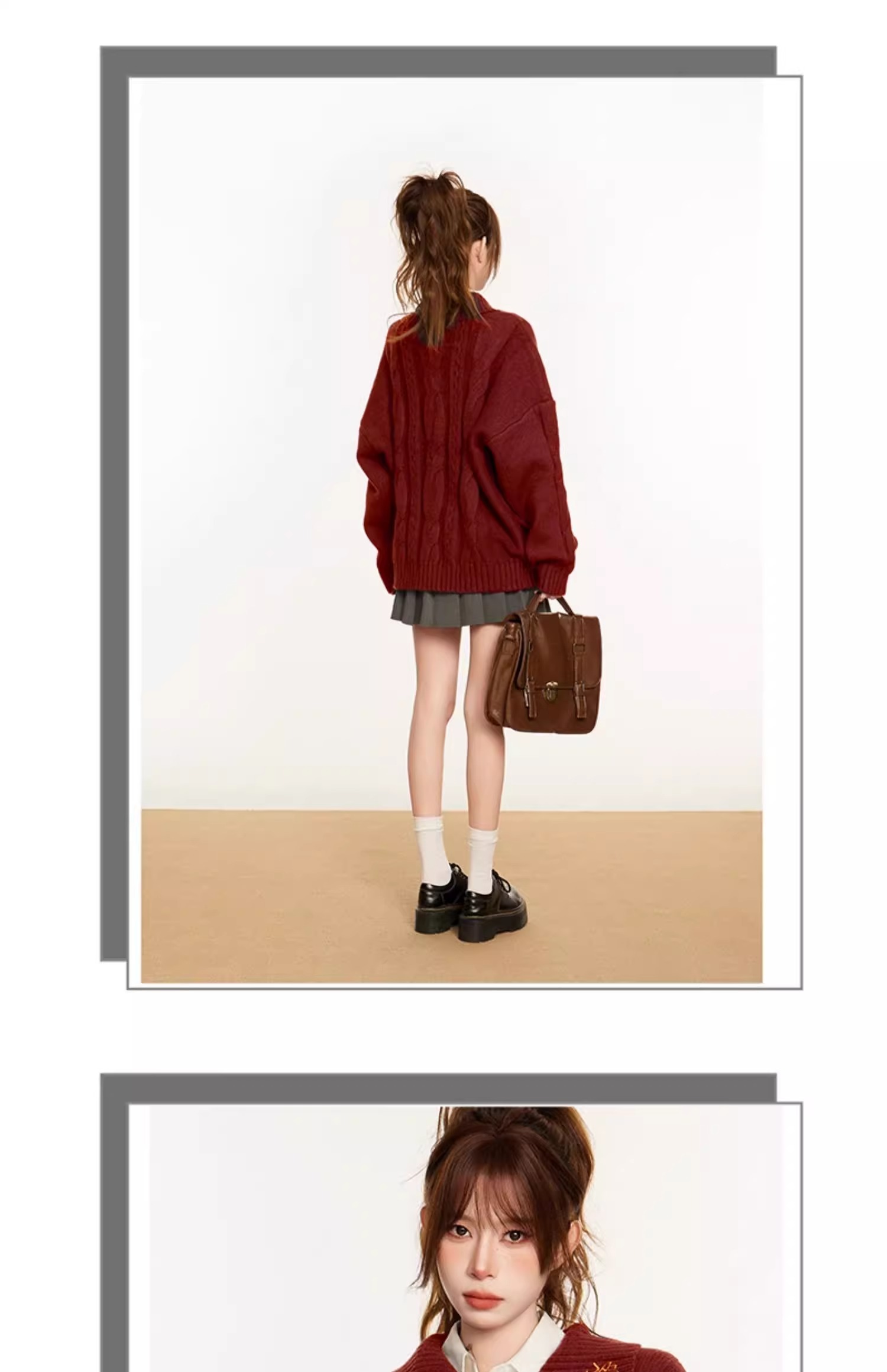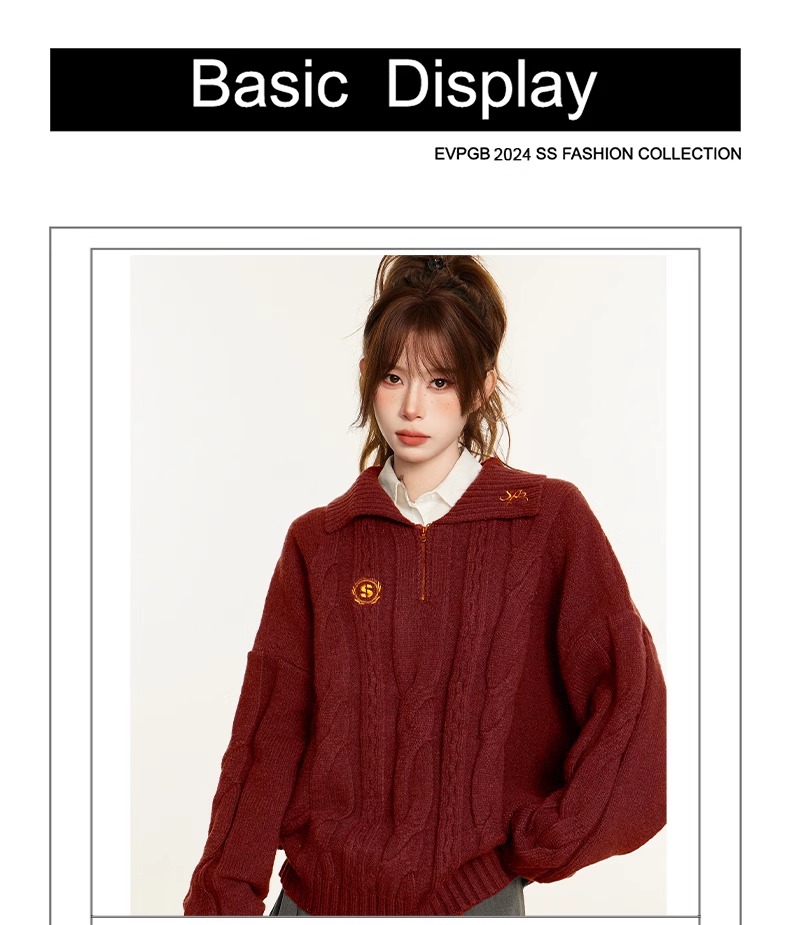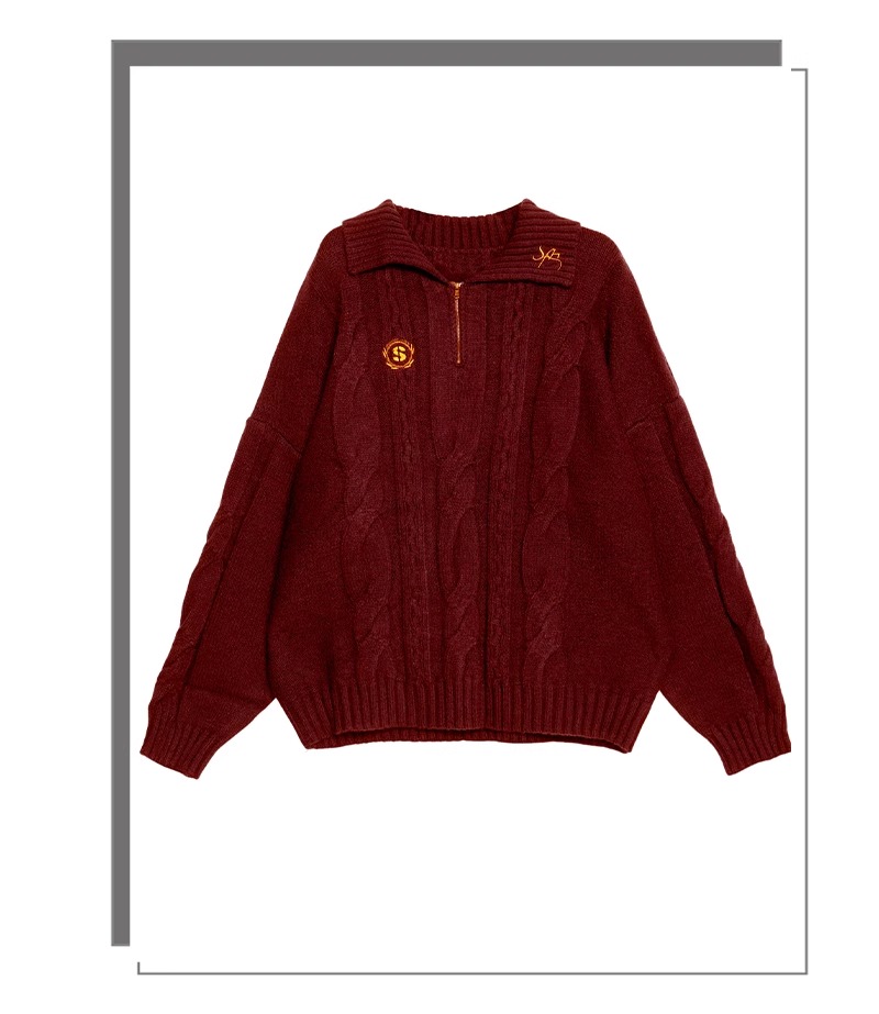 新年紅色半拉鍊麻花套頭毛衣女秋冬季高級感慵懶風加厚翻領針織衫