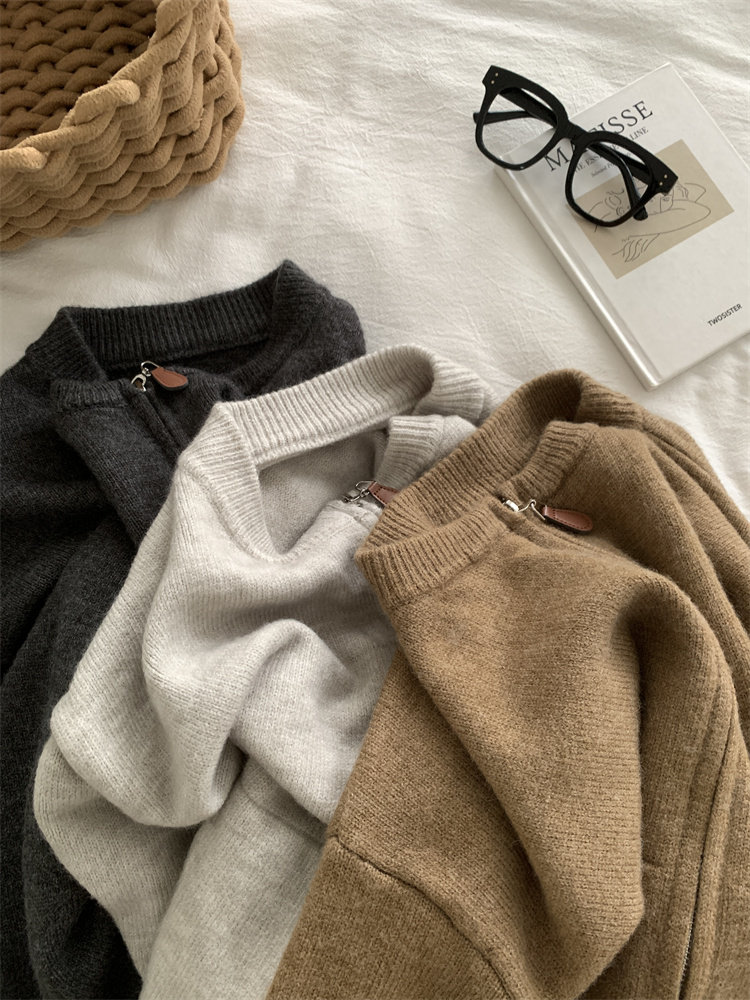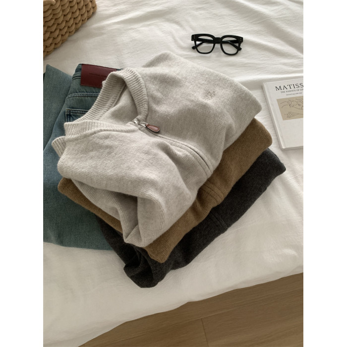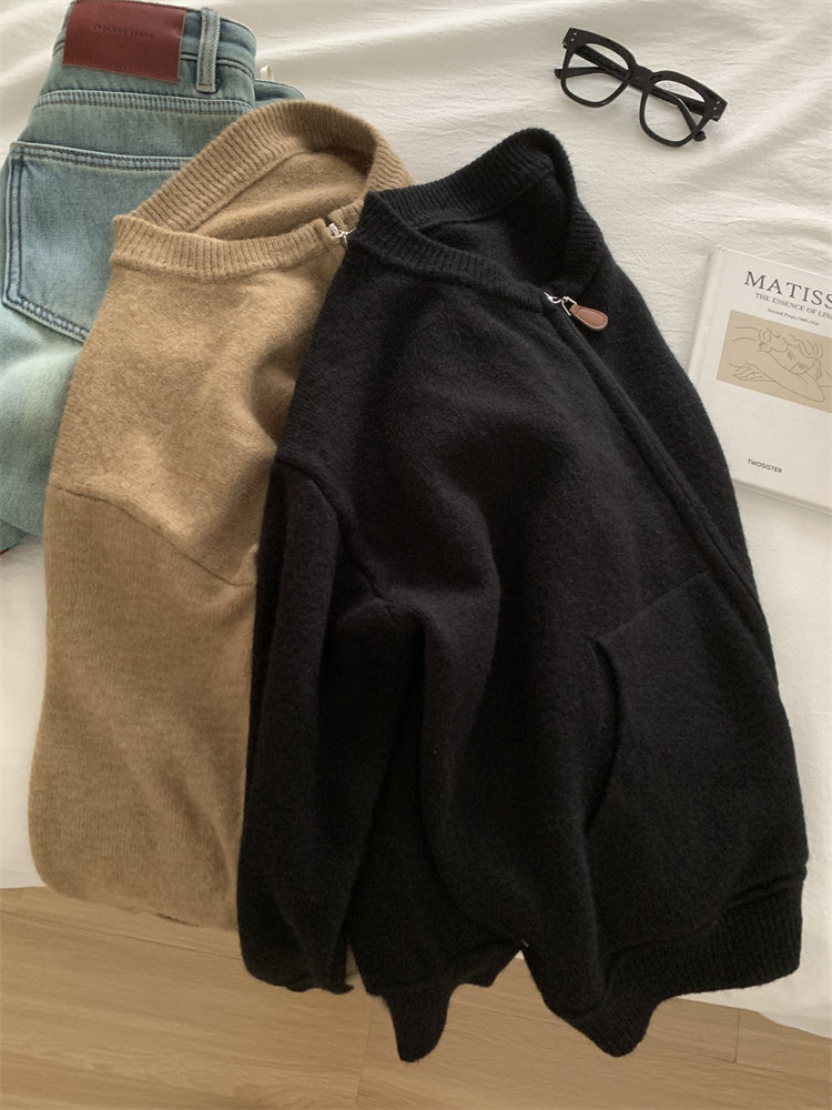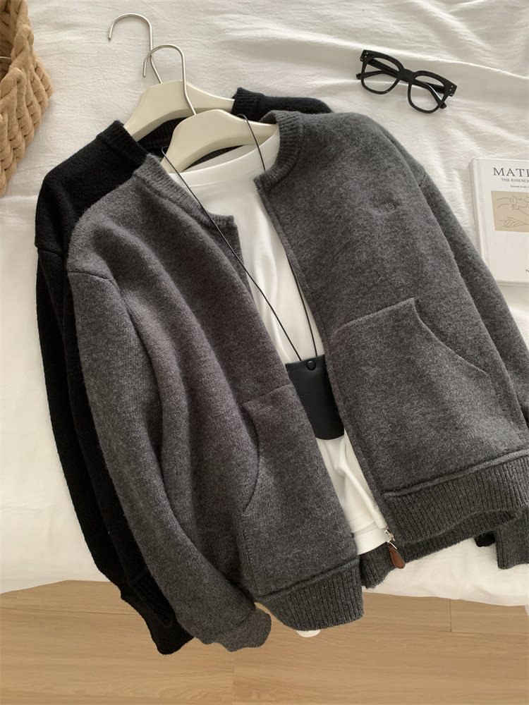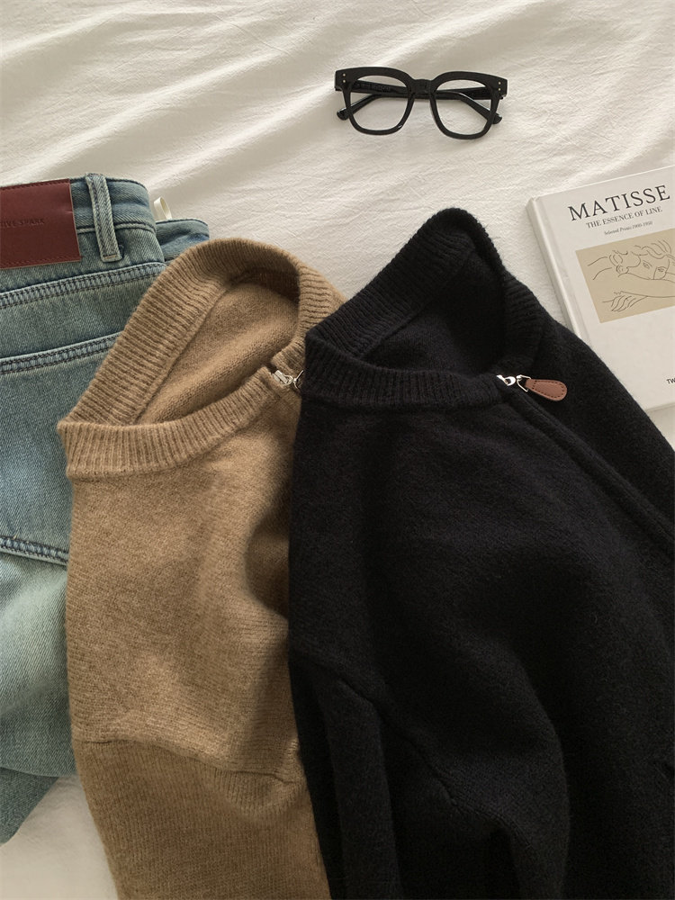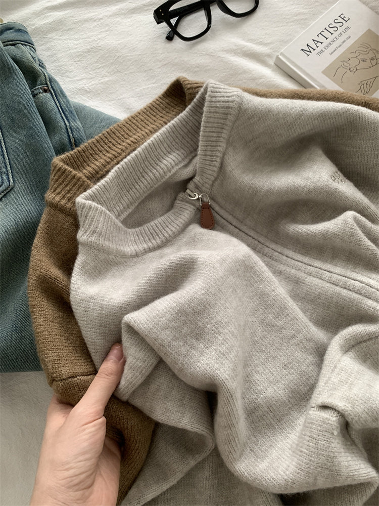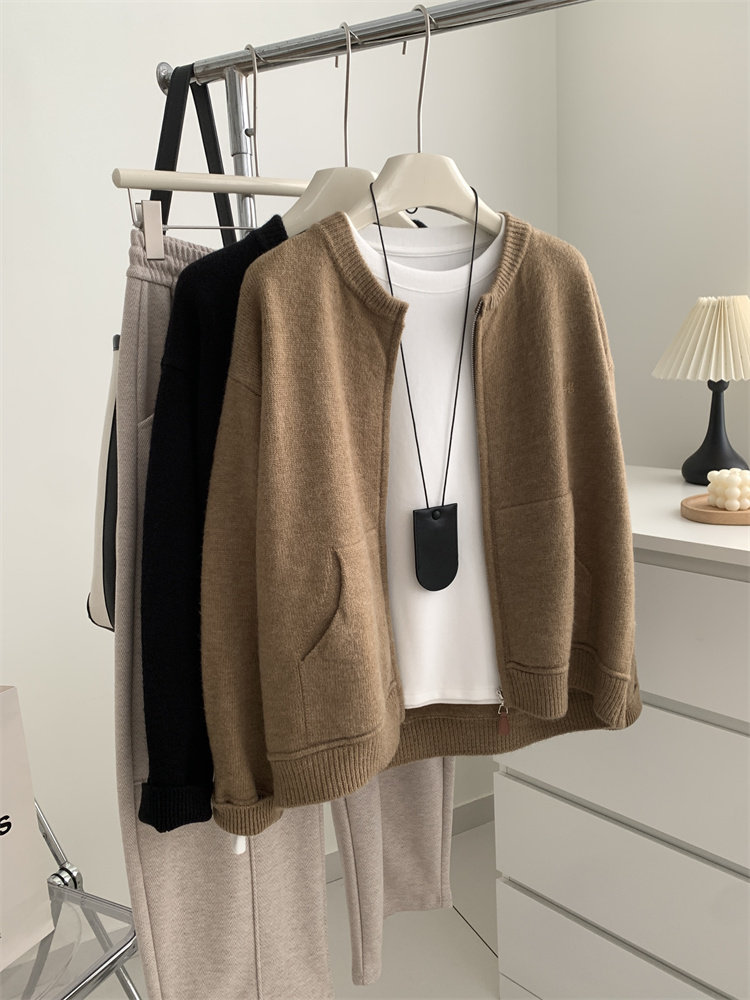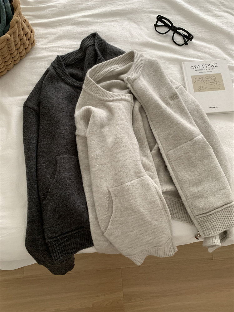 緊密厚實針織開衫女氣質通勤慵懶垂感百搭圓領拉鍊衫秋冬毛衣外套