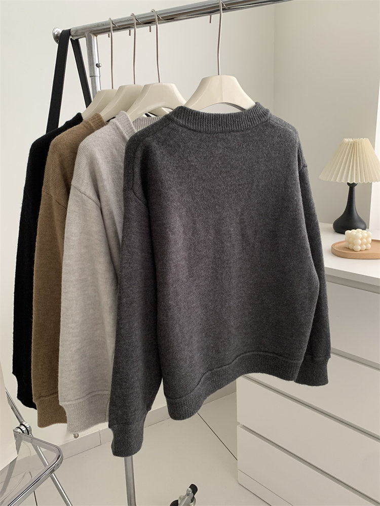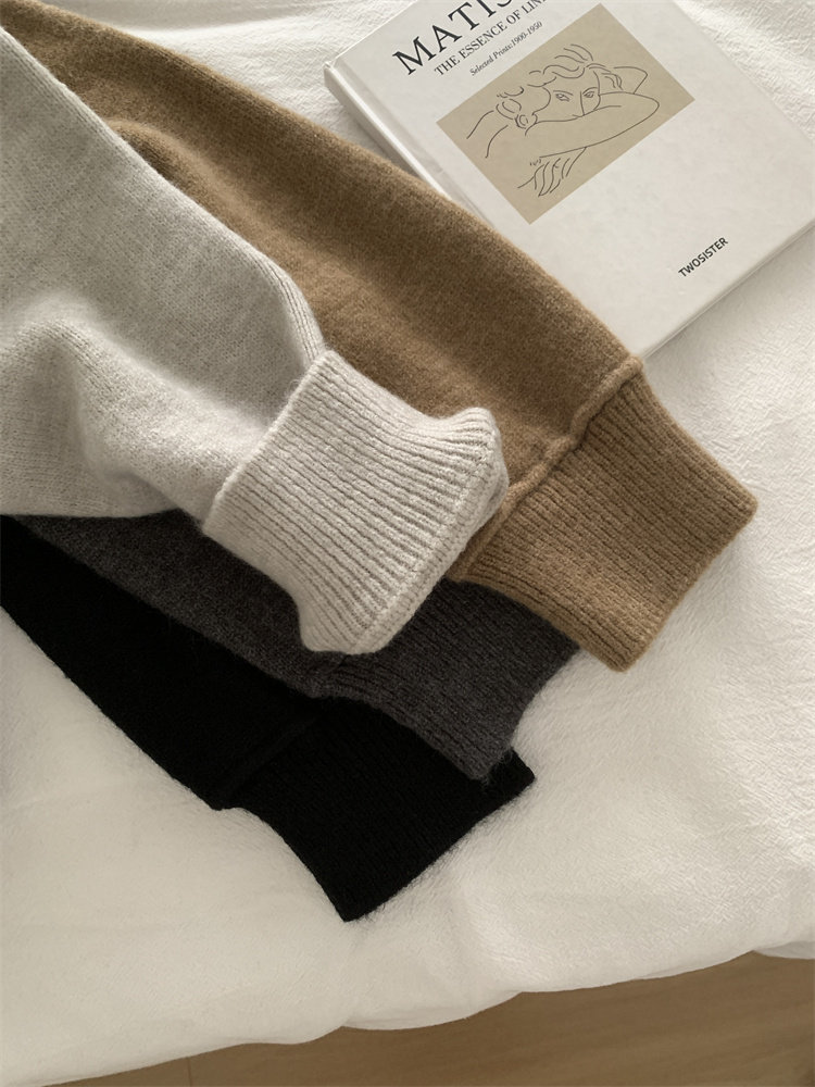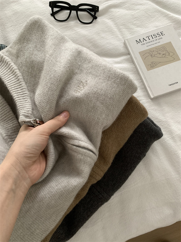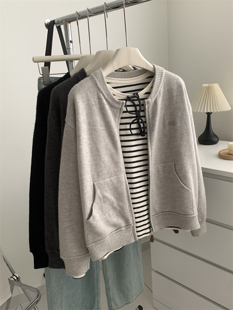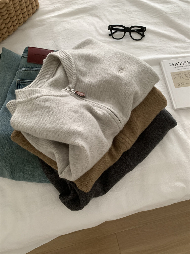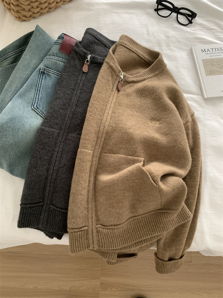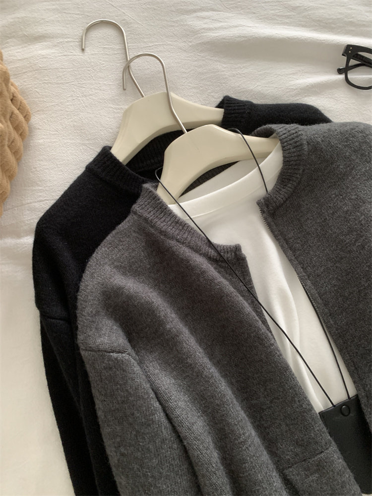 緊密厚實針織開衫女氣質通勤慵懶垂感百搭圓領拉鍊衫秋冬毛衣外套