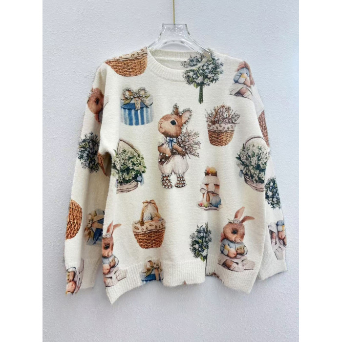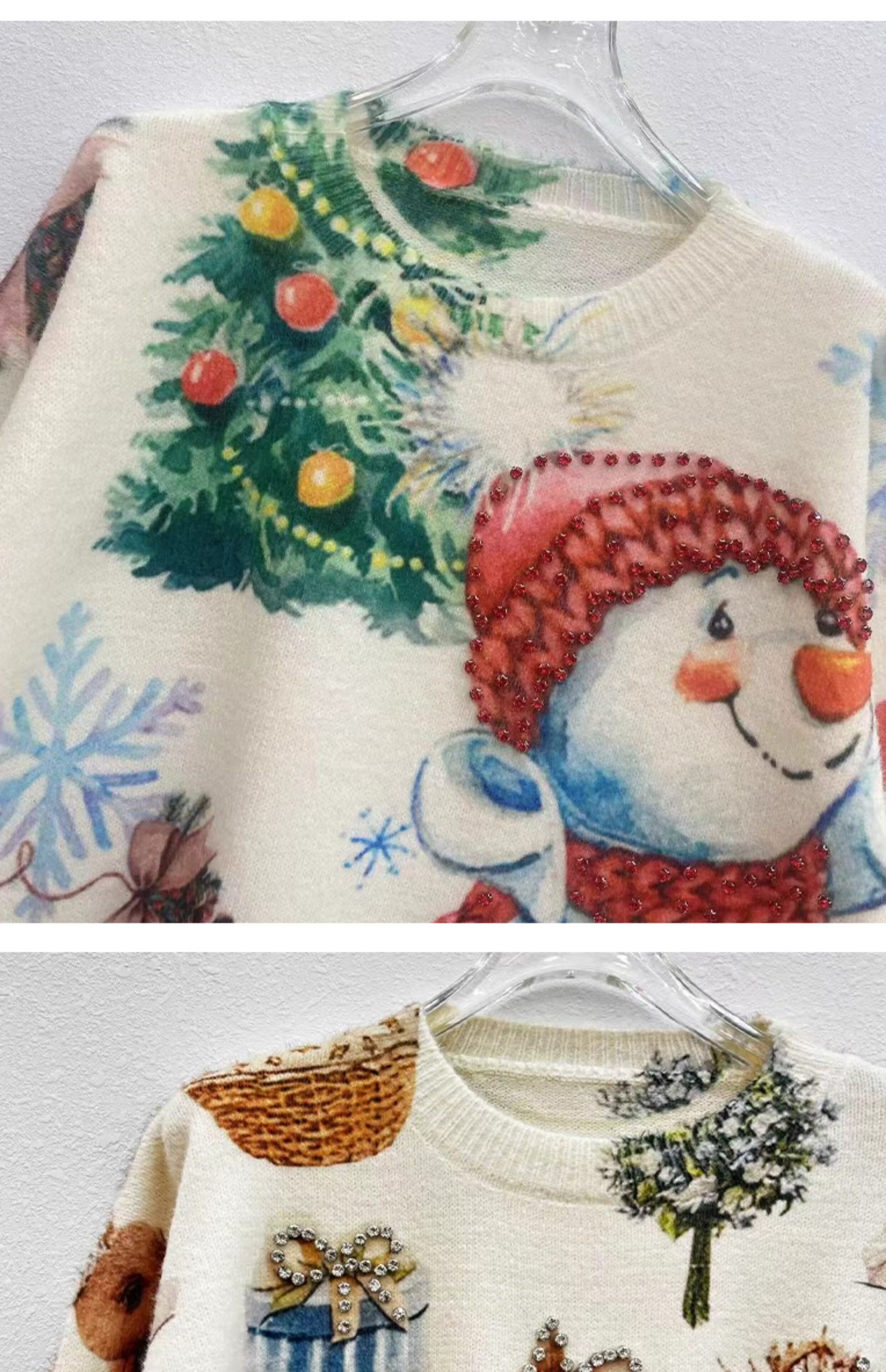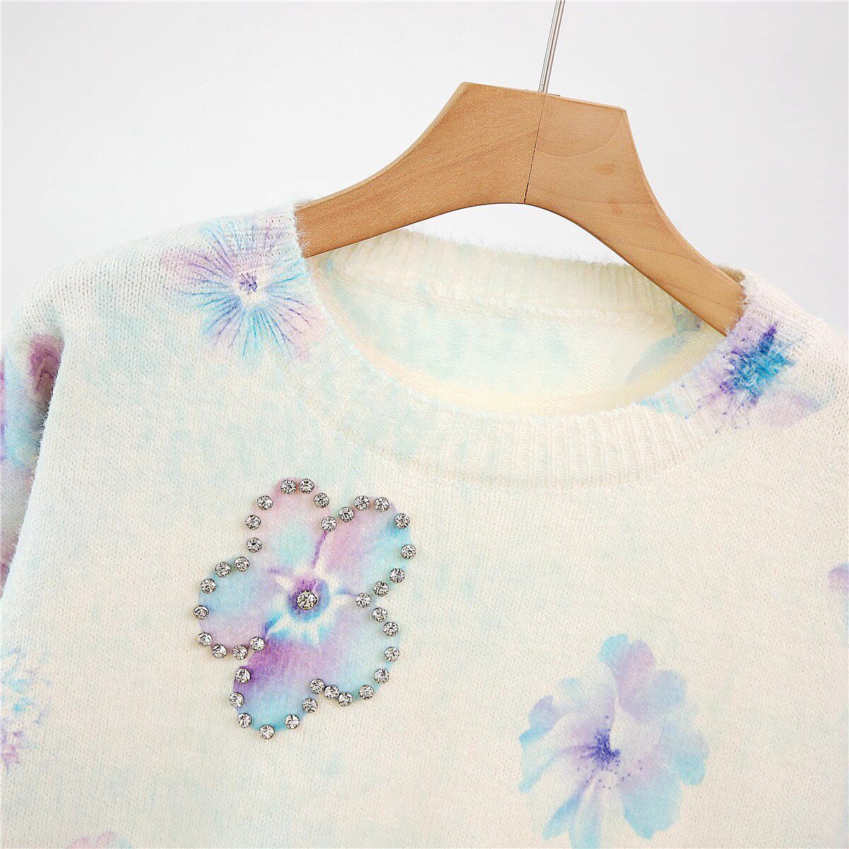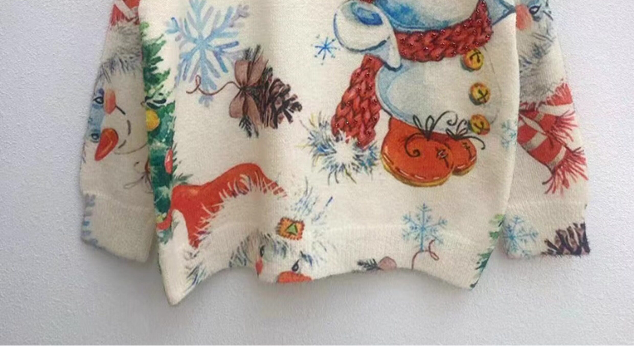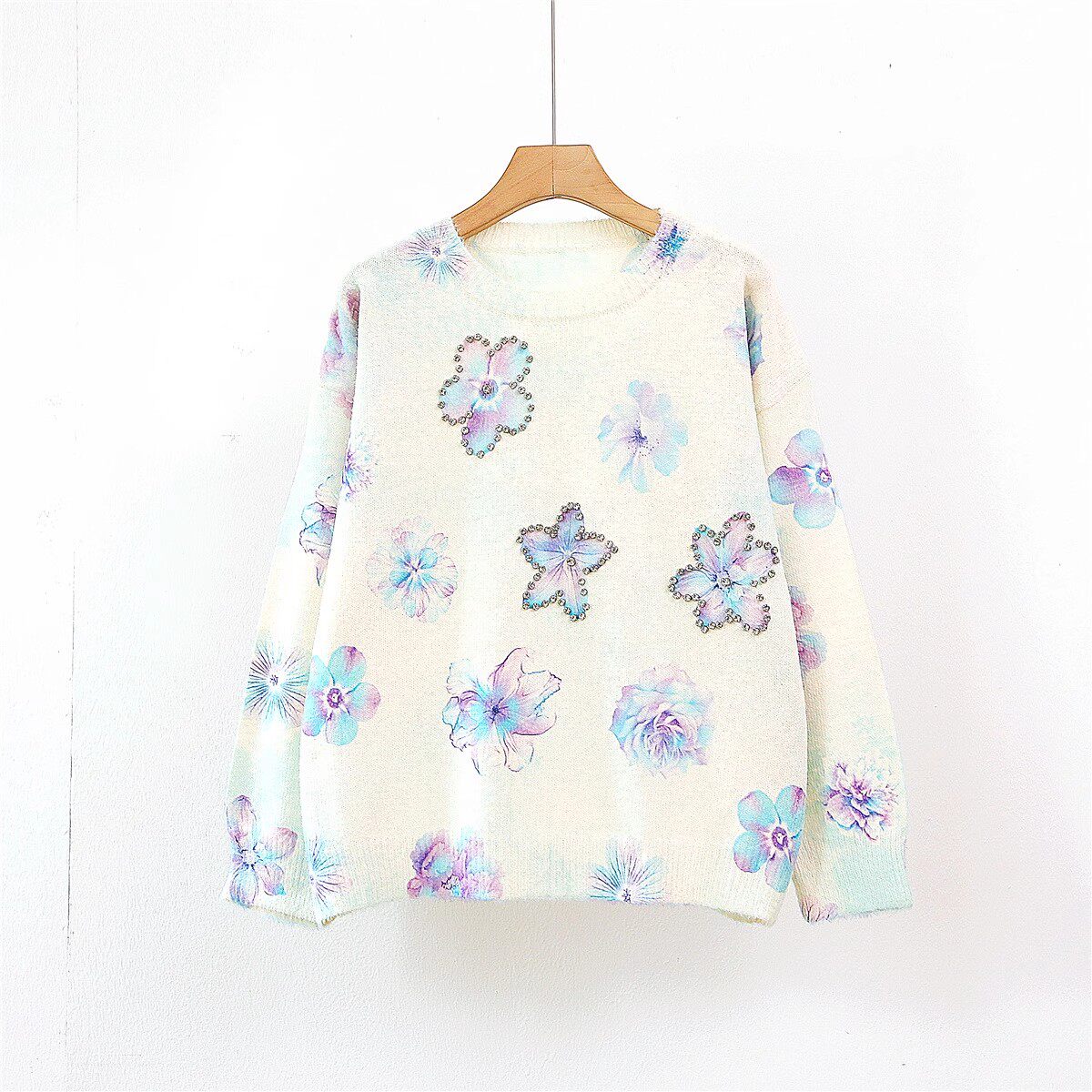 重工釘珠印花減齡毛衣女裝上衣 秋冬新款圓領慵懶風針織衫打底衫