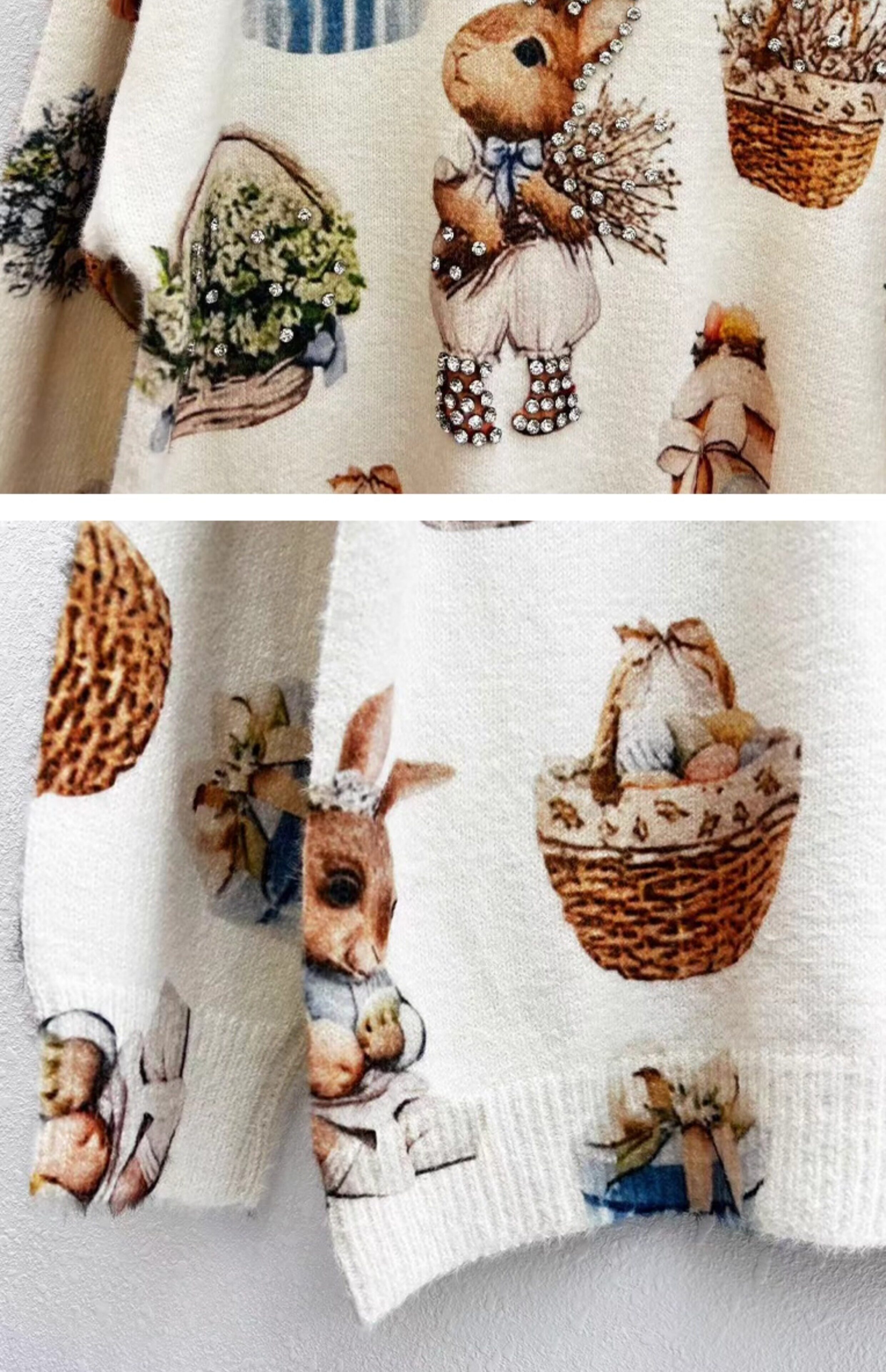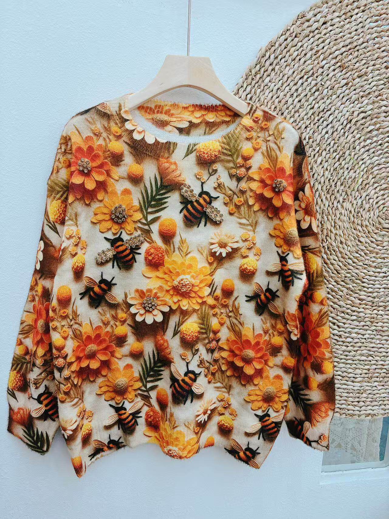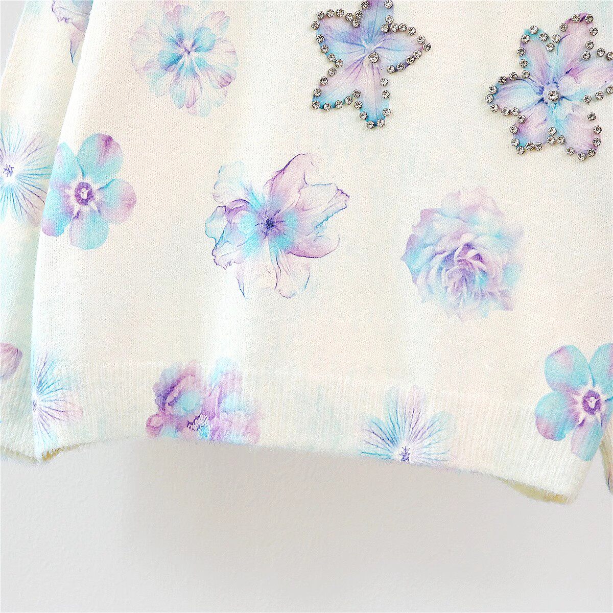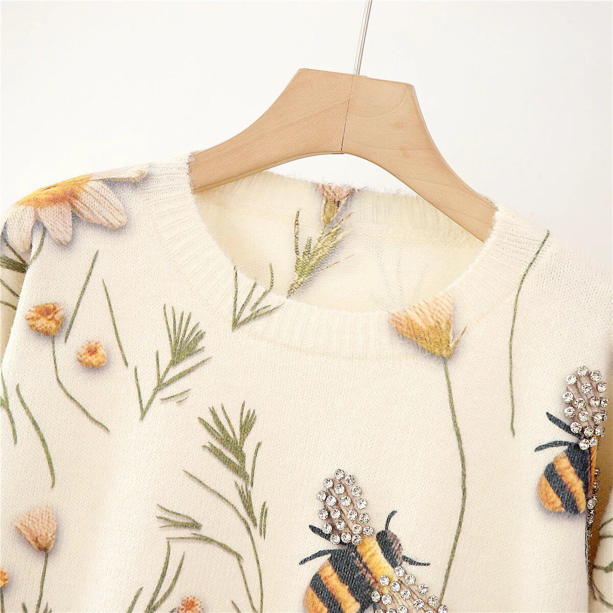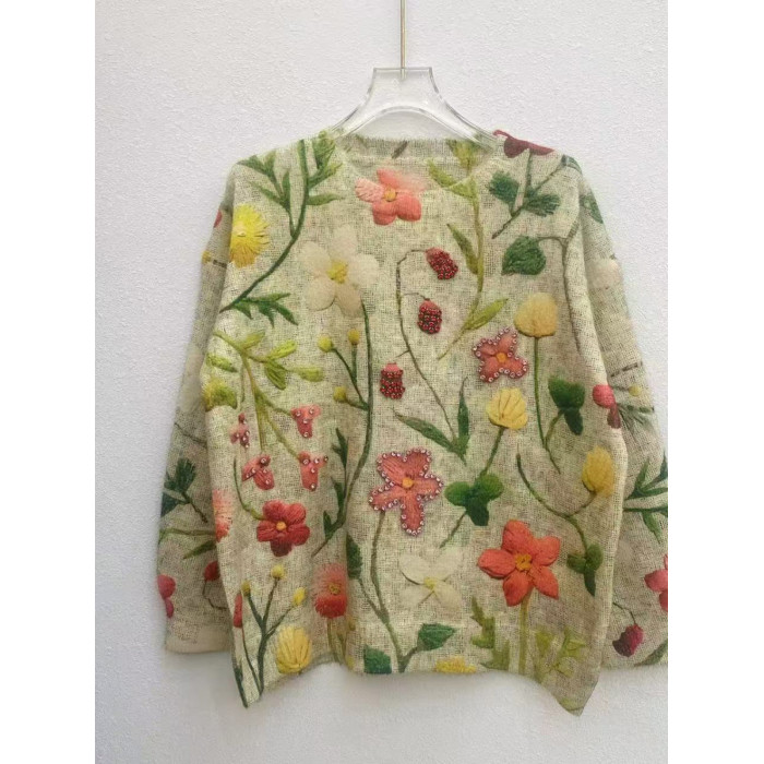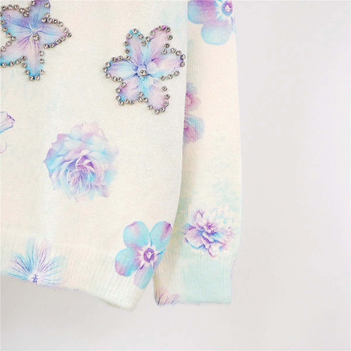 重工釘珠印花減齡毛衣女裝上衣 秋冬新款圓領慵懶風針織衫打底衫