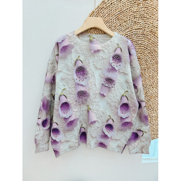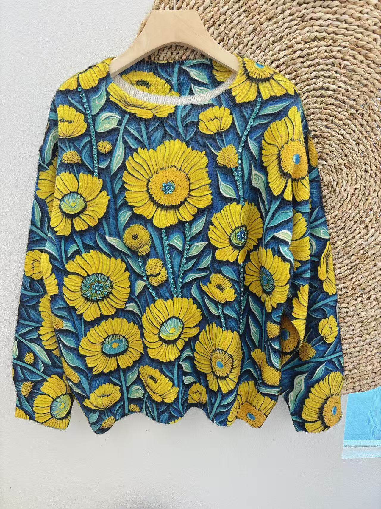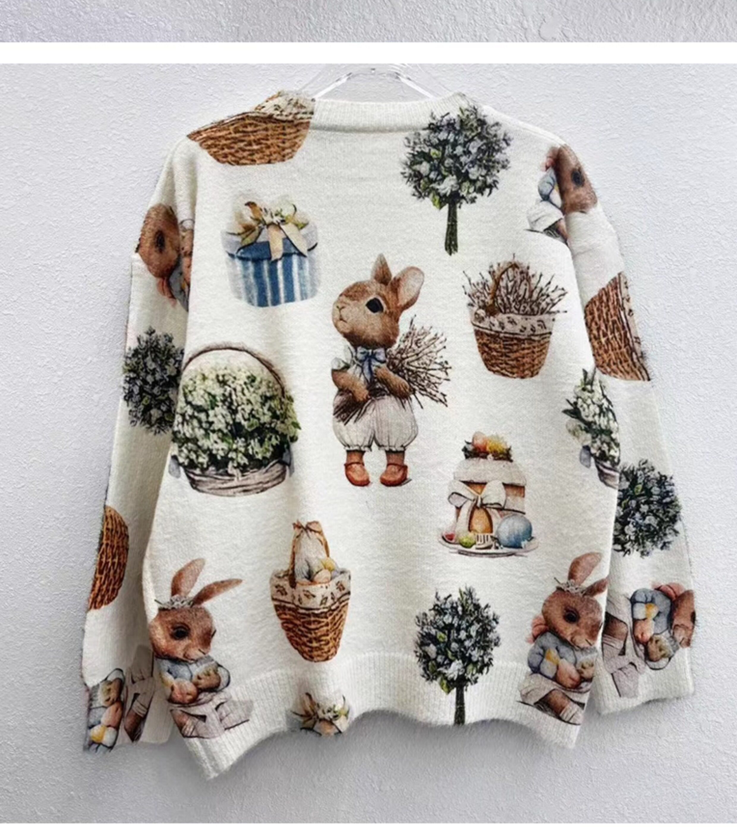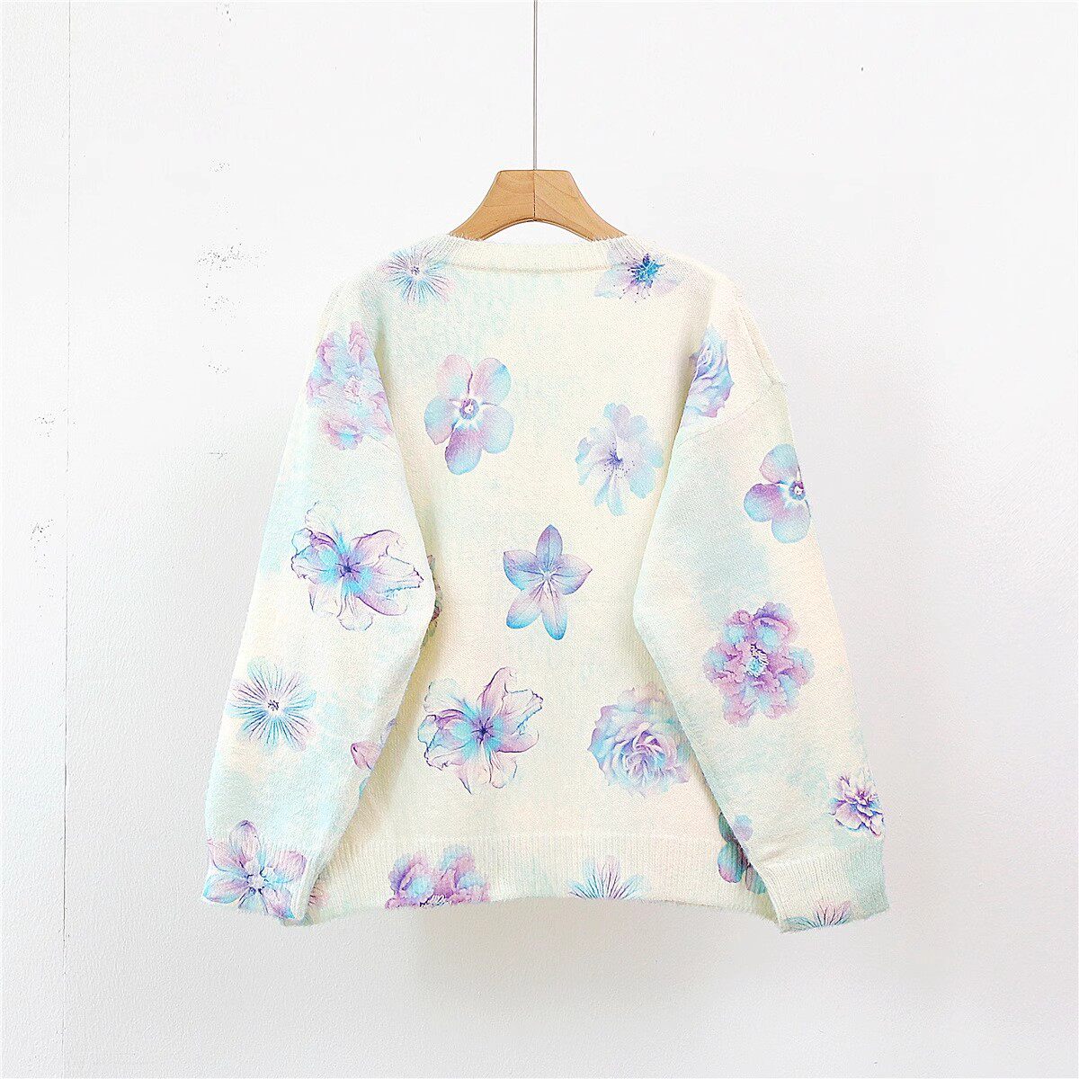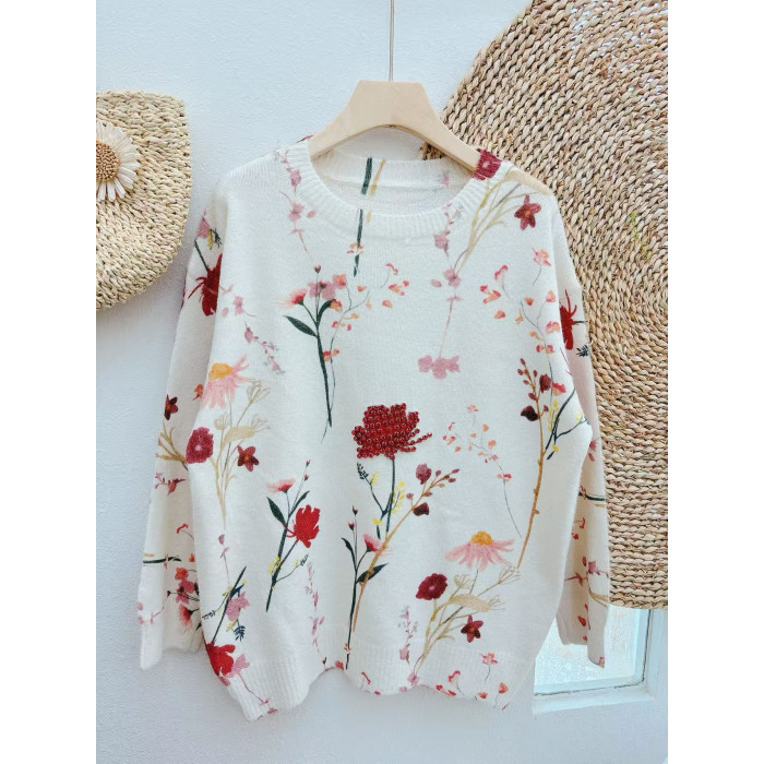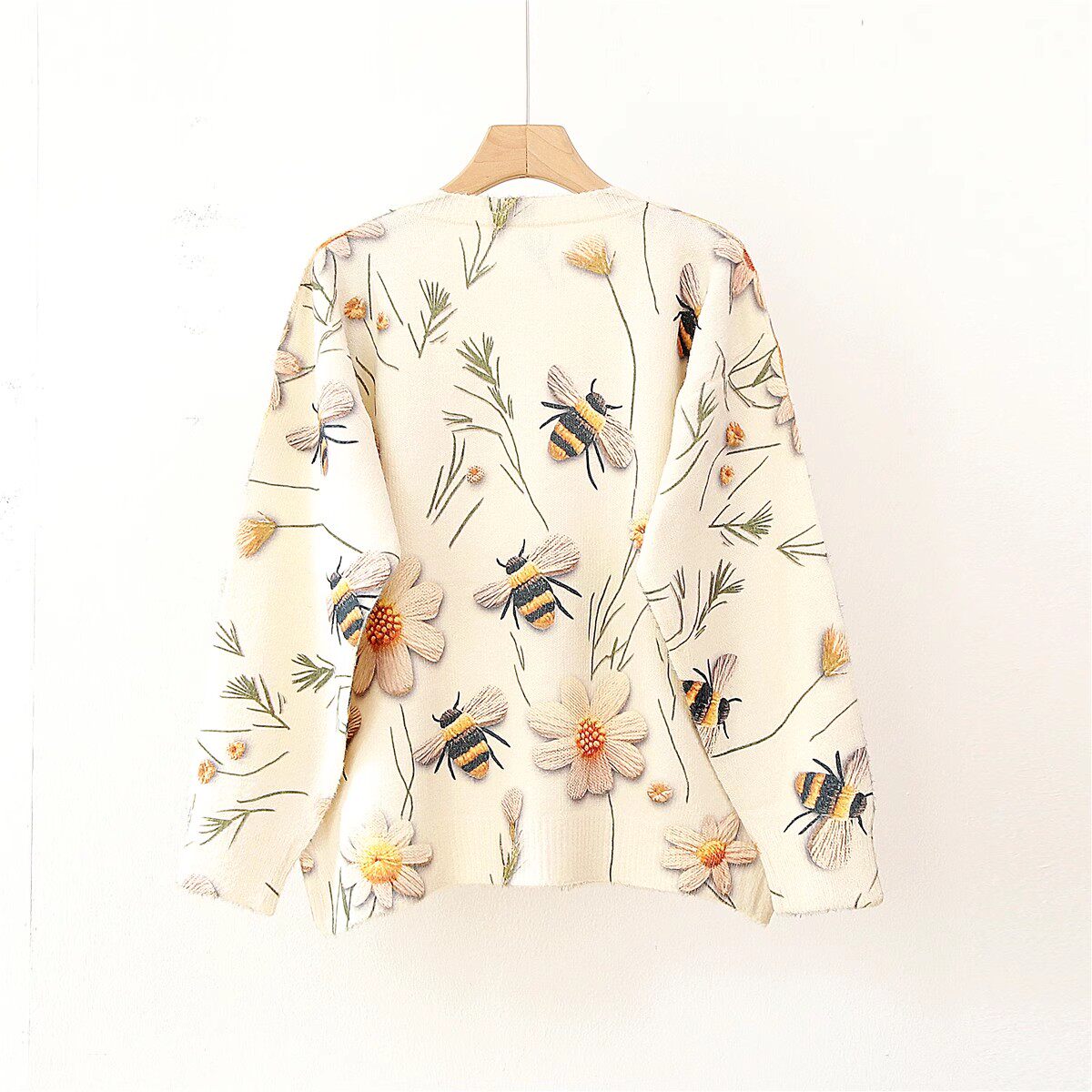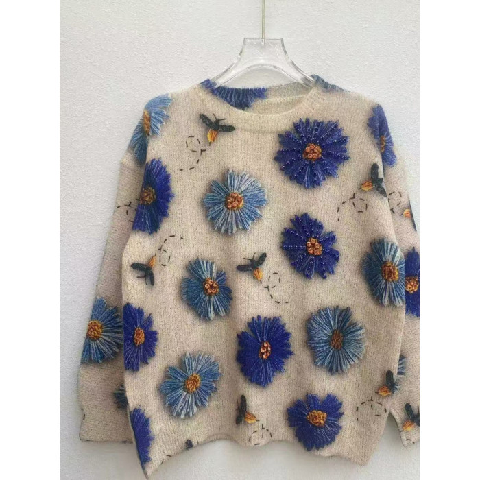重工釘珠印花減齡毛衣女裝上衣 秋冬新款圓領慵懶風針織衫打底衫