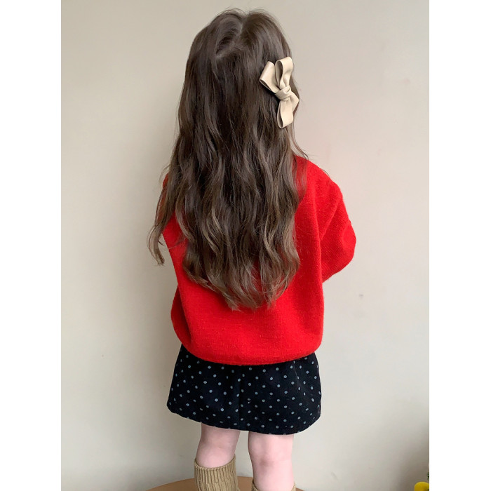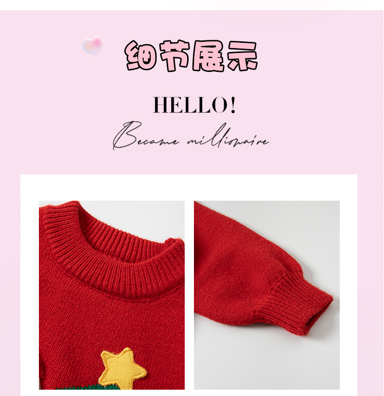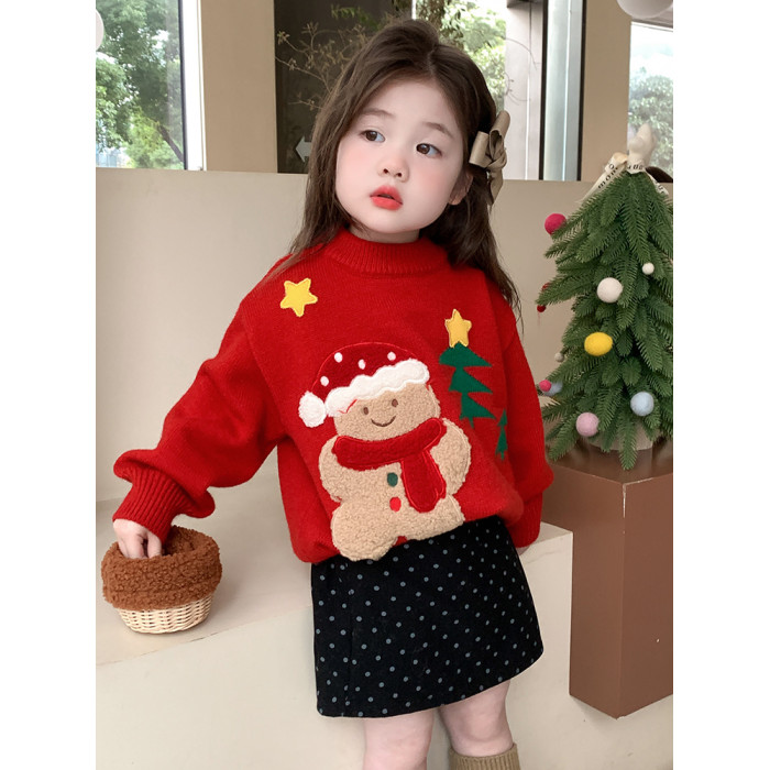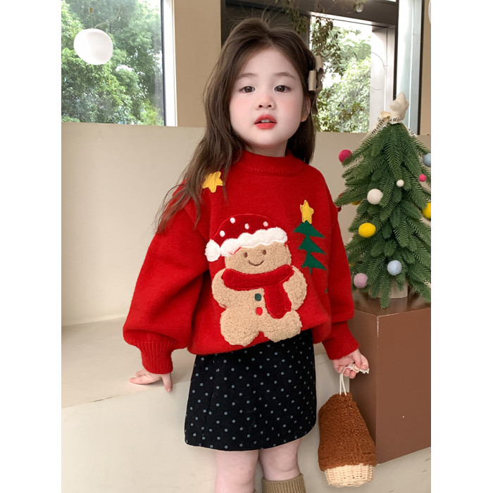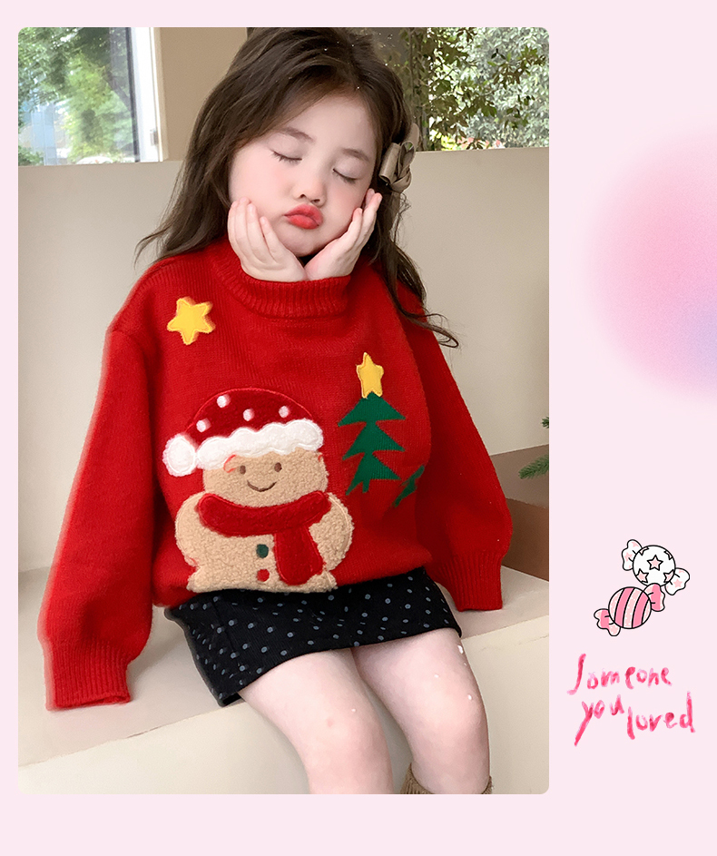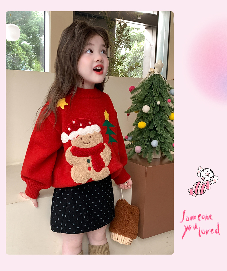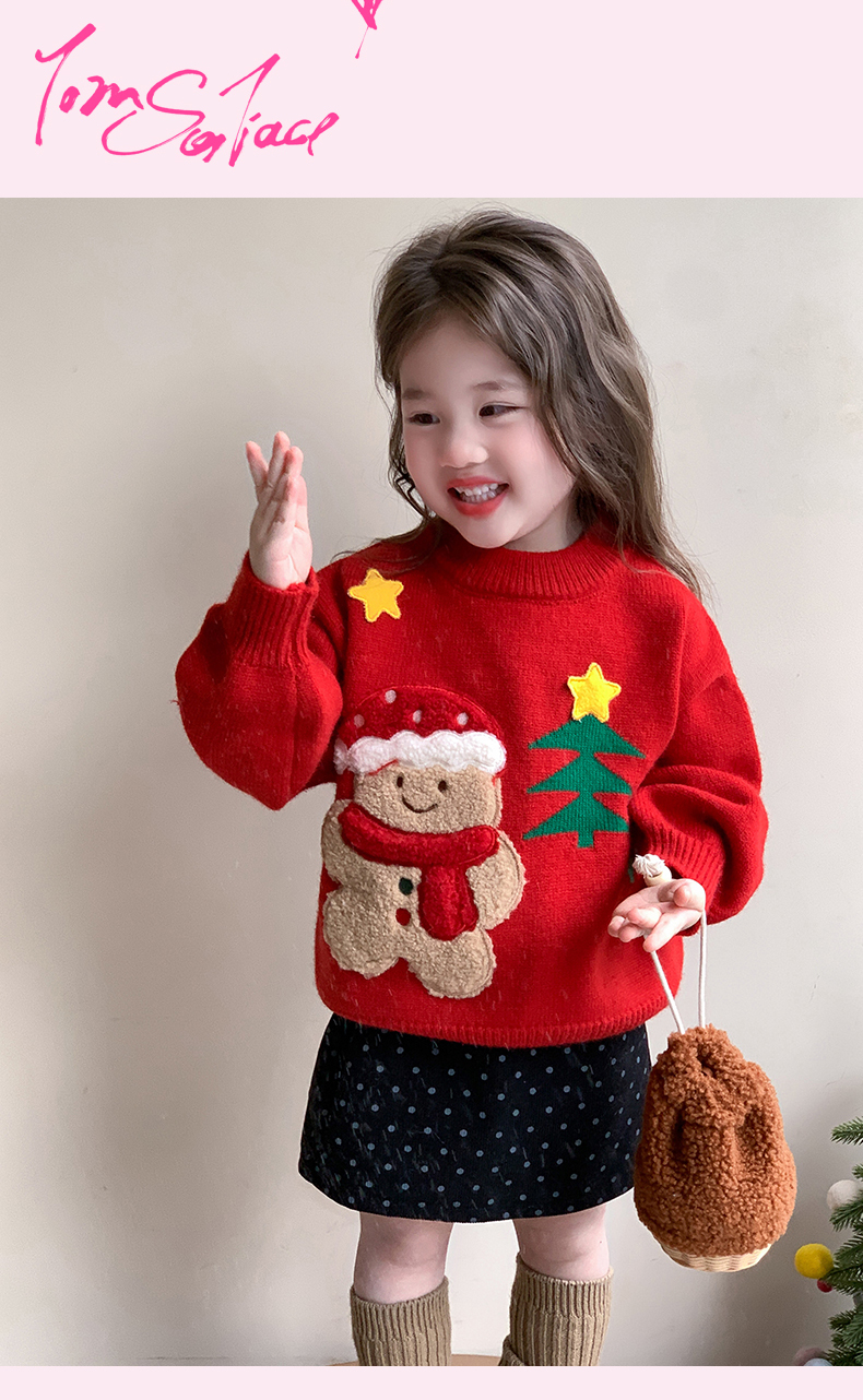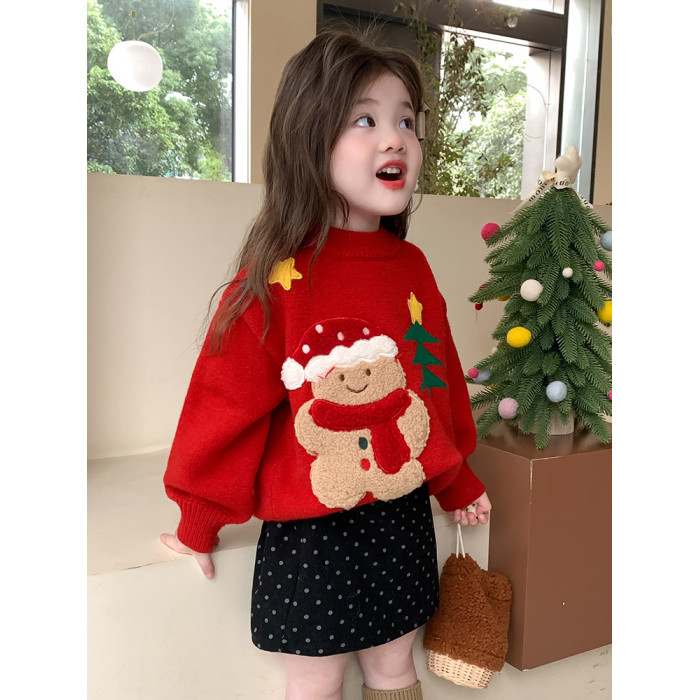 女小童聖誕加厚毛衣冬季女寶寶保暖針織上衣冬裝小女孩紅色打底衫