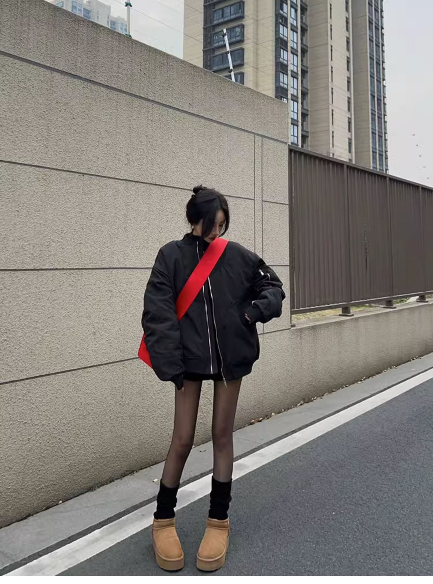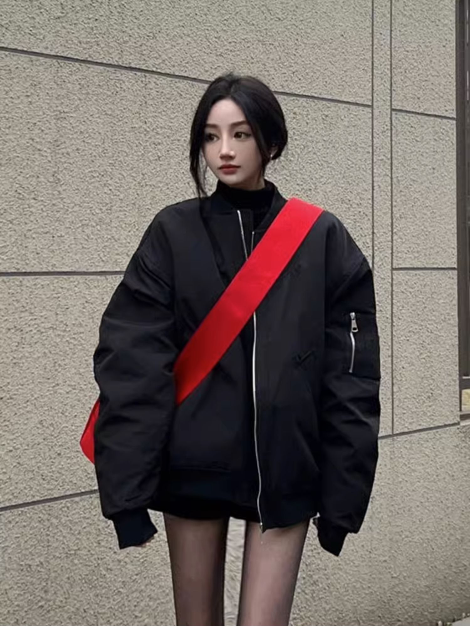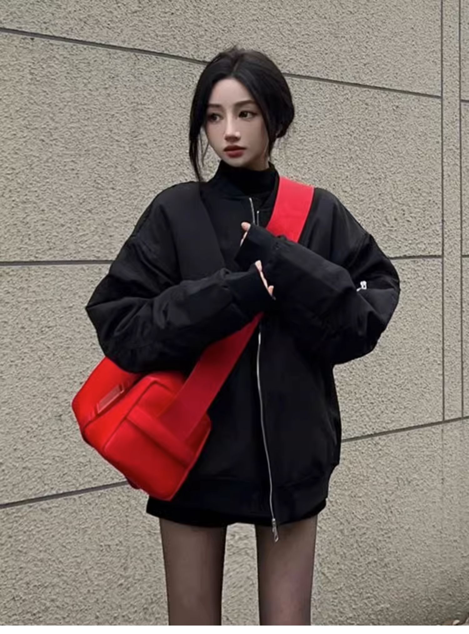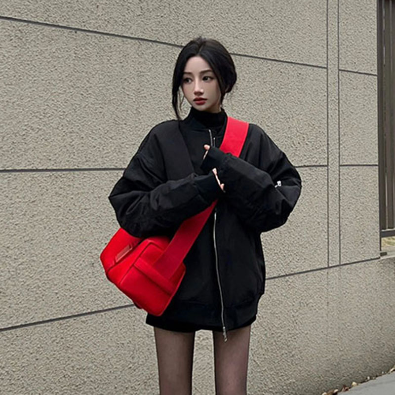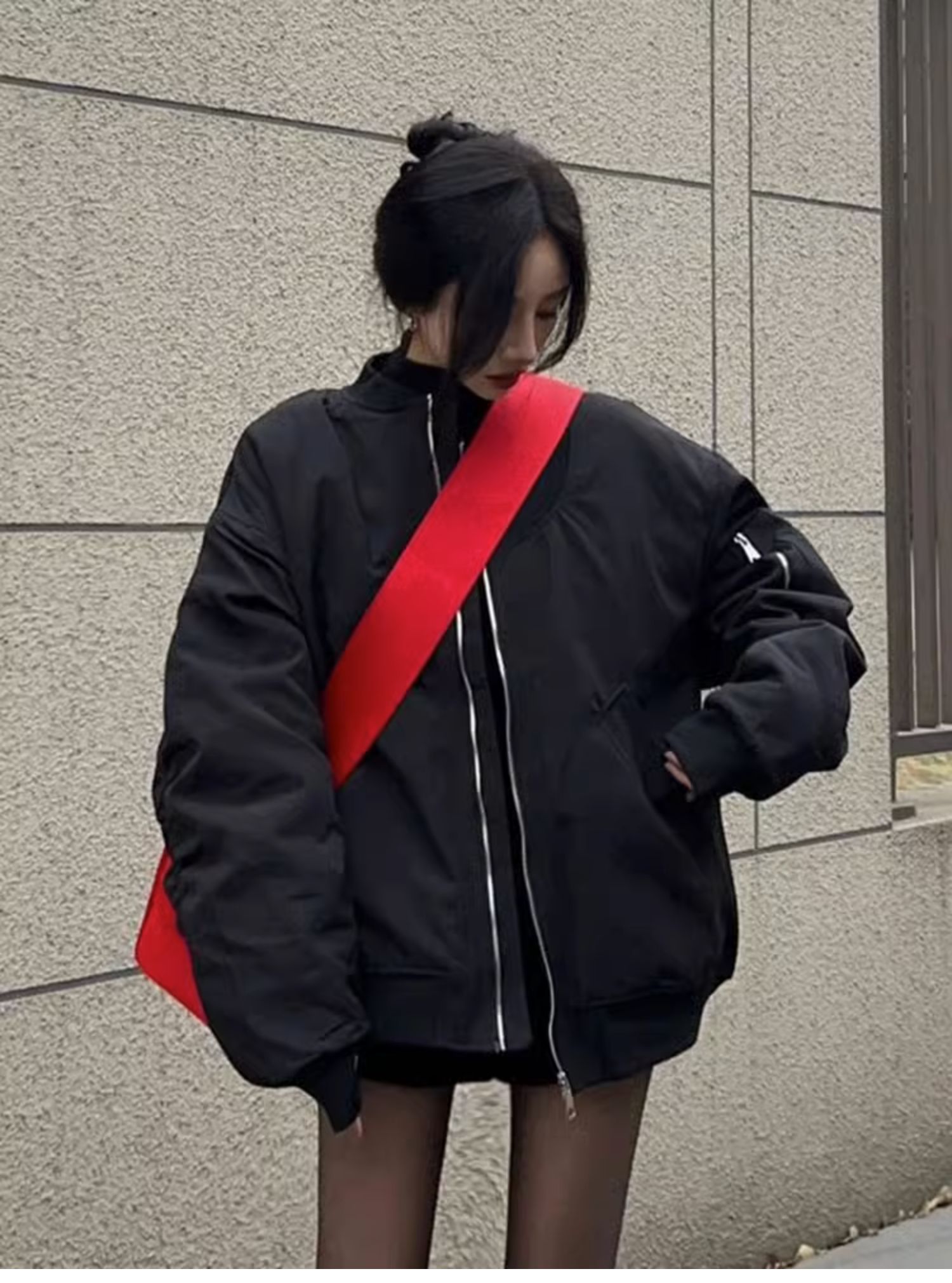 美式黑色棒球服外套女冬季加厚棉衣2025春秋新爆款寬松夾克飛行服