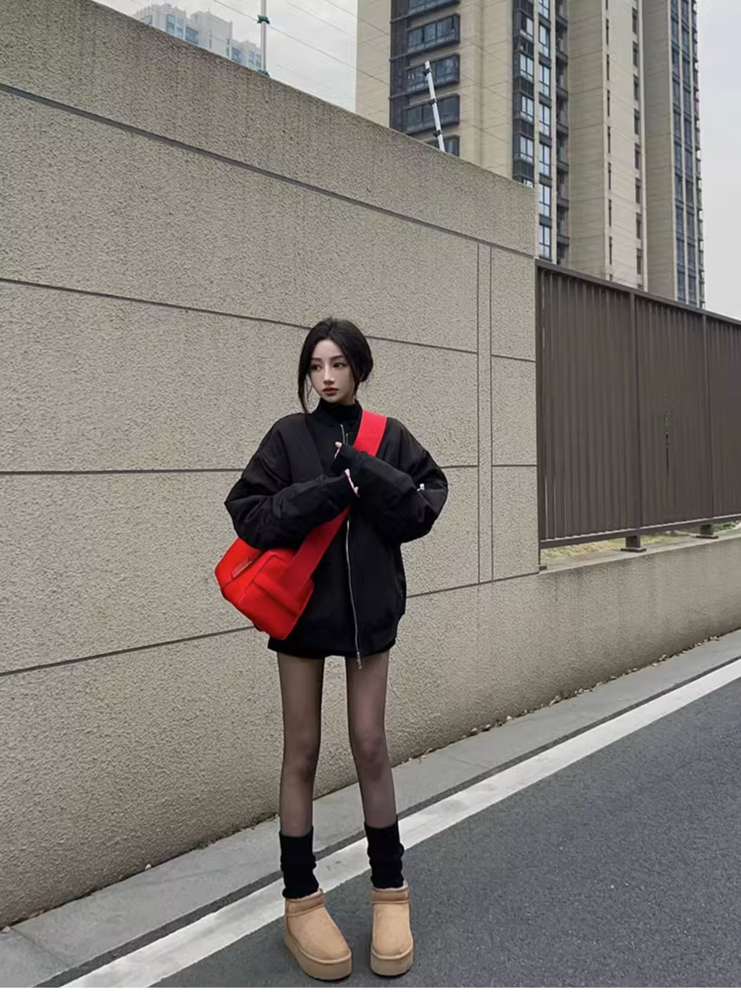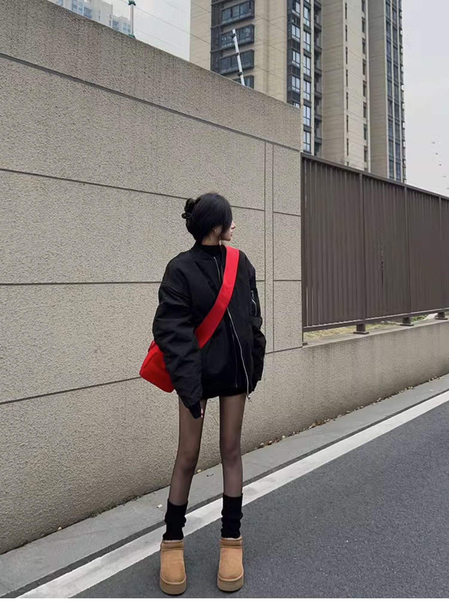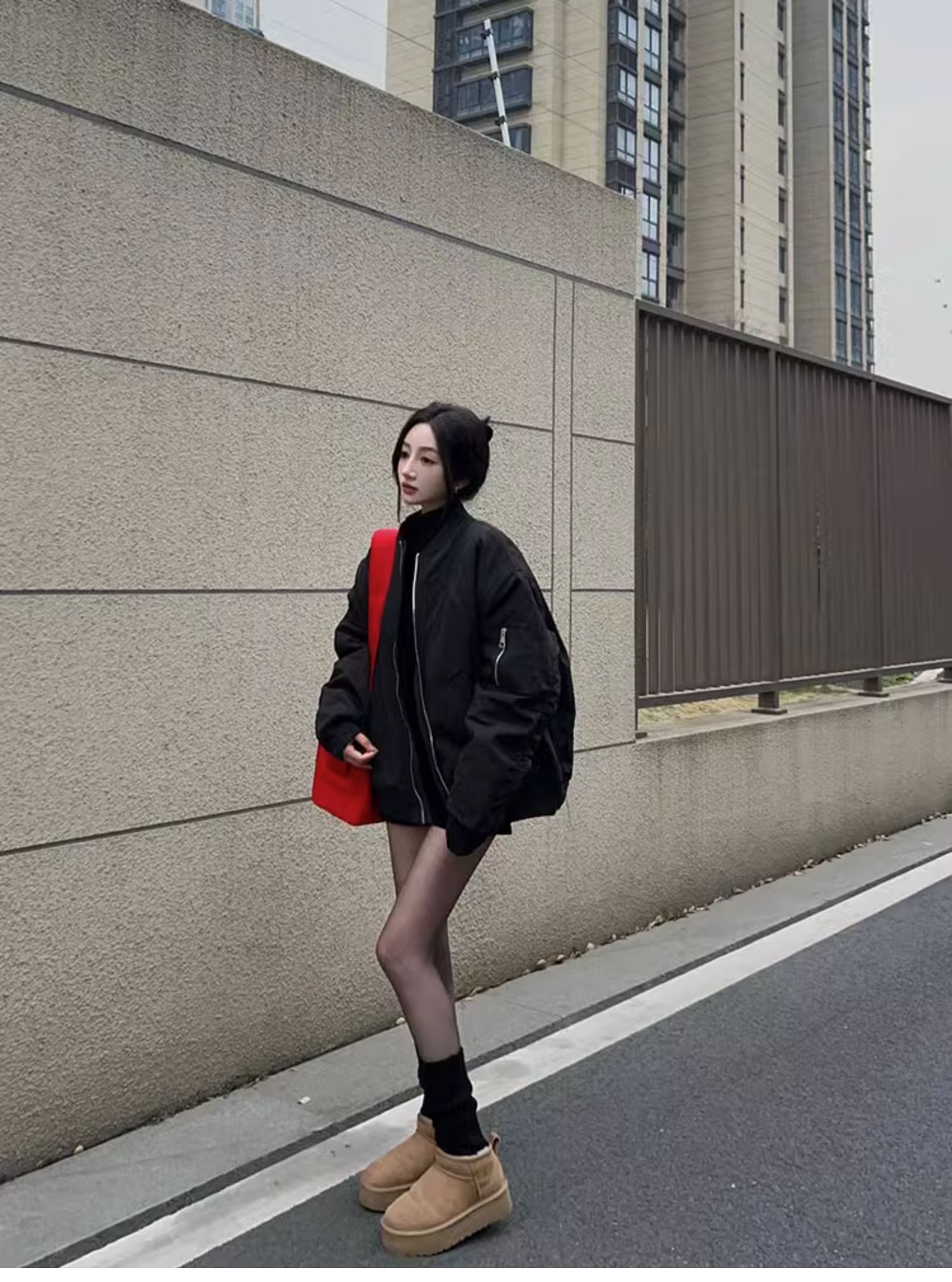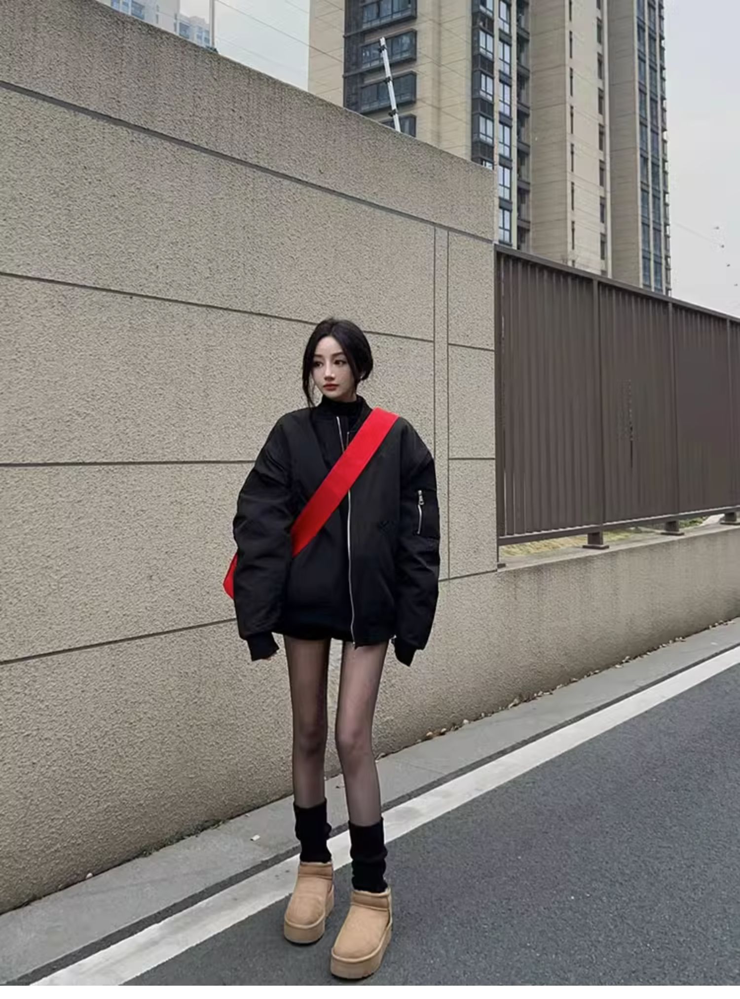 美式黑色棒球服外套女冬季加厚棉衣2025春秋新爆款寬松夾克飛行服