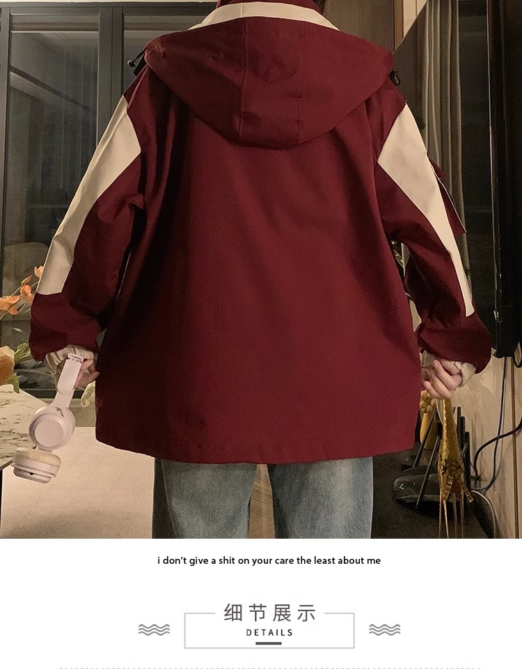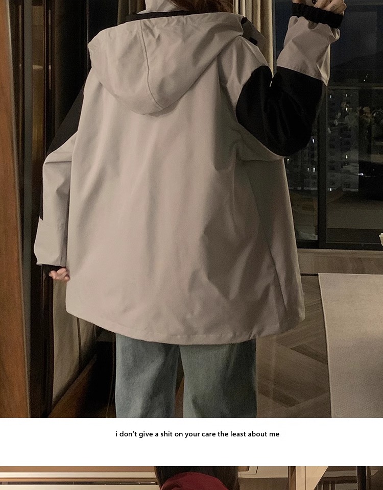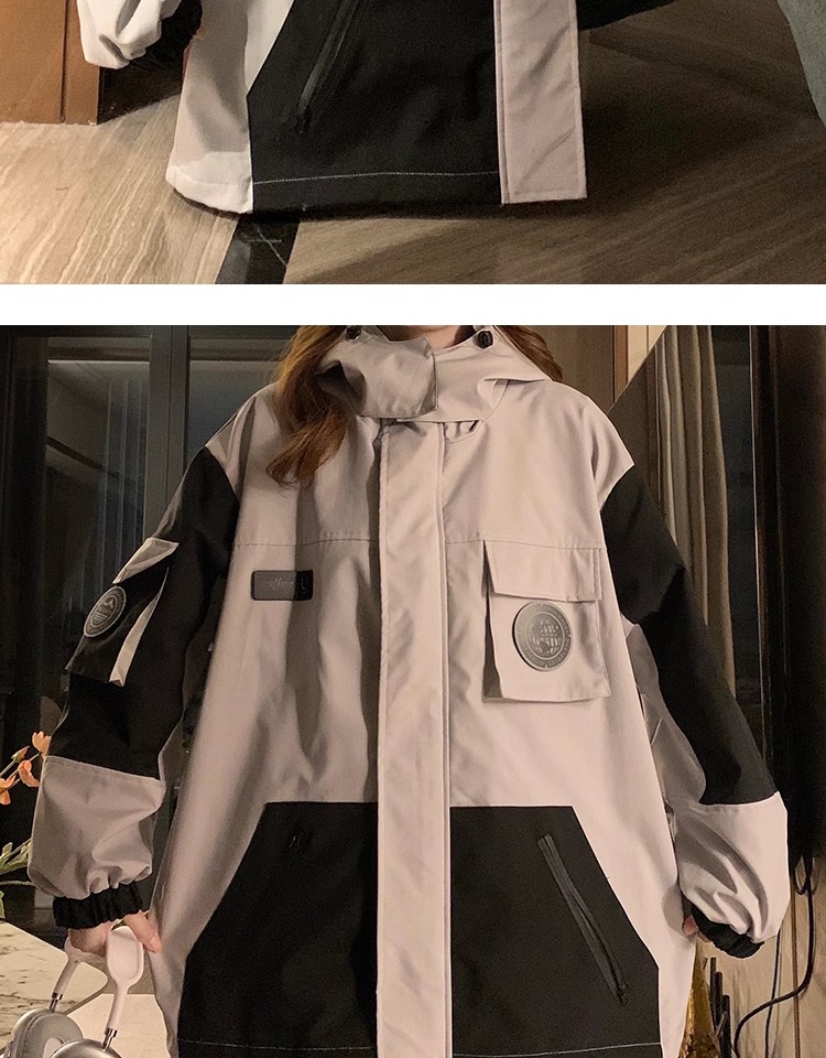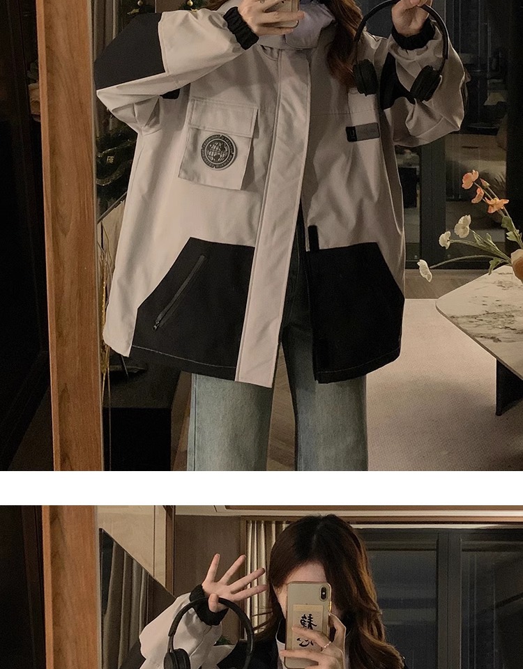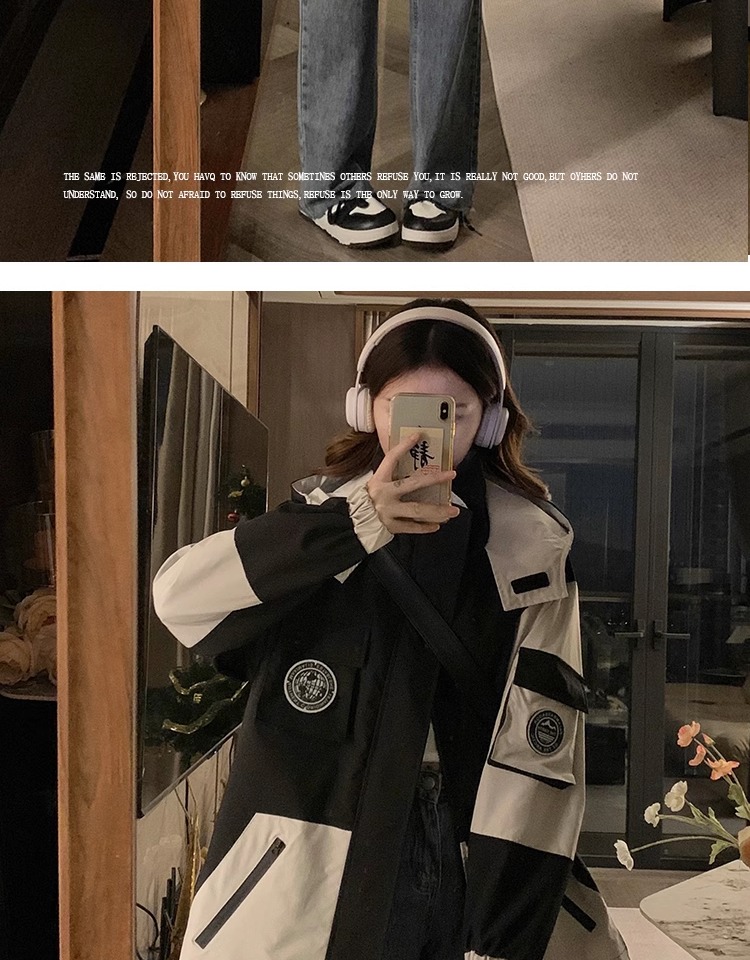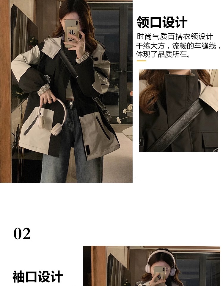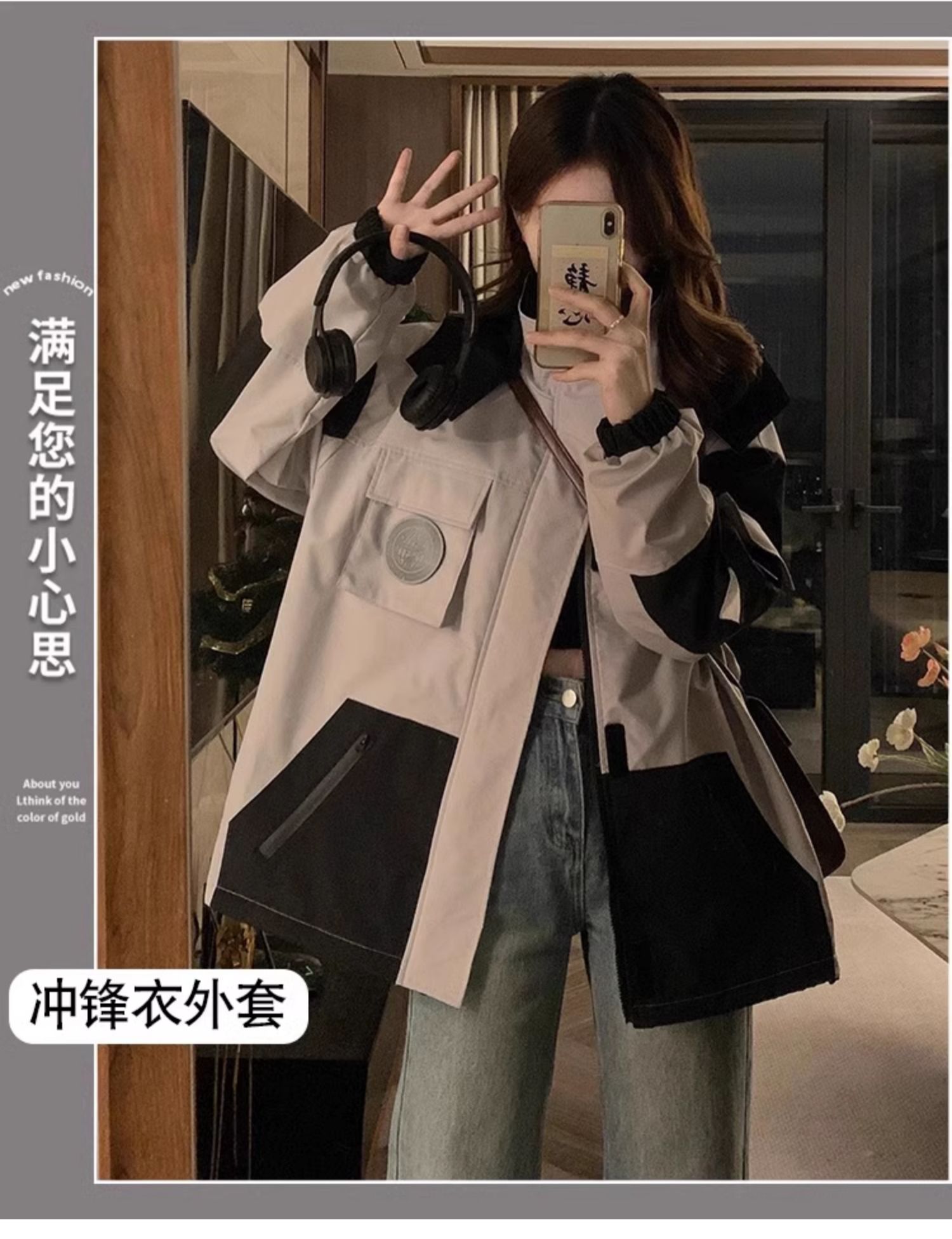 美式復古沖鋒衣外套女2025春秋冬款寬松大碼連帽百搭情侶工裝棉服