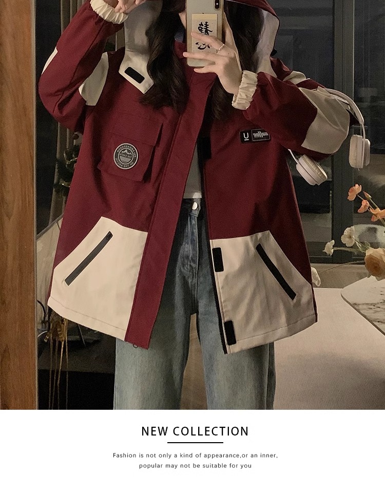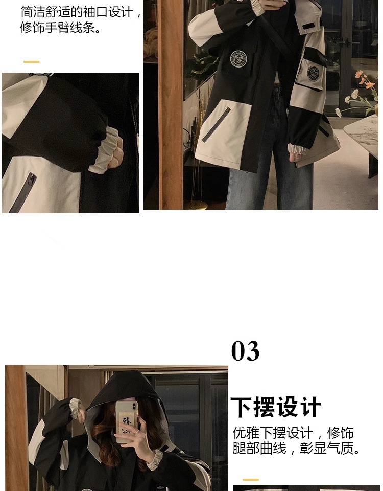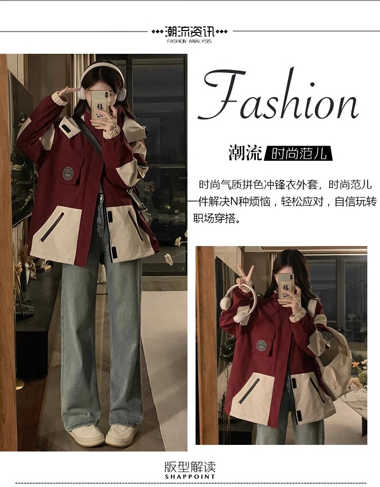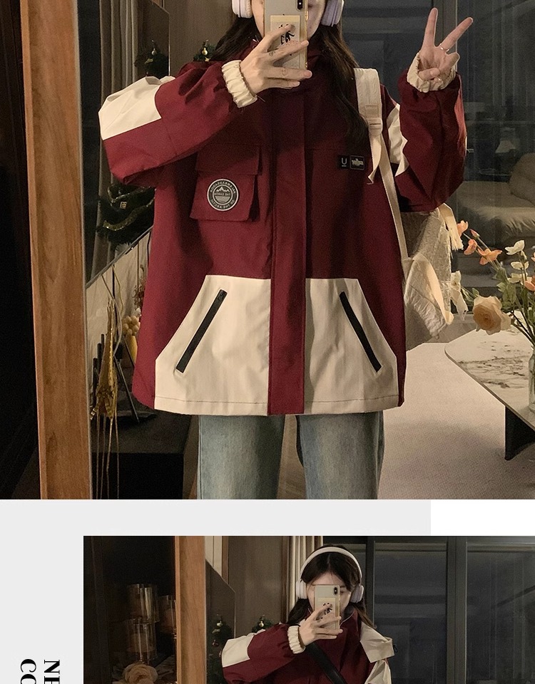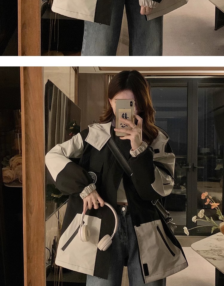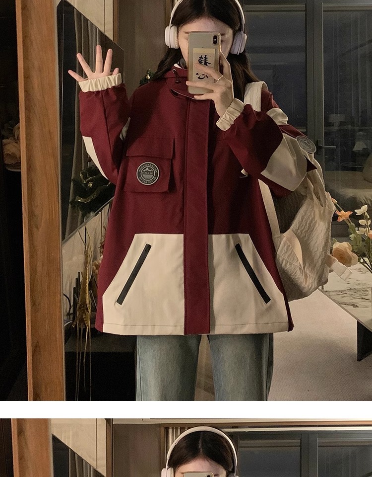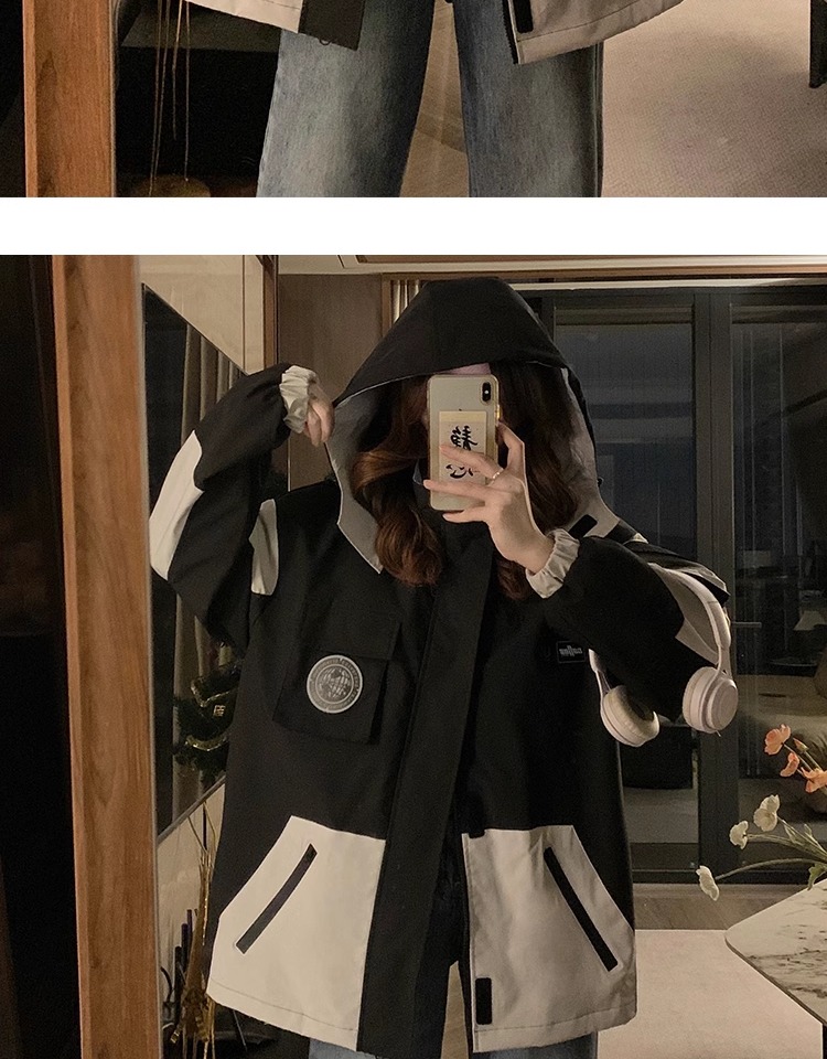 美式復古沖鋒衣外套女2025春秋冬款寬松大碼連帽百搭情侶工裝棉服