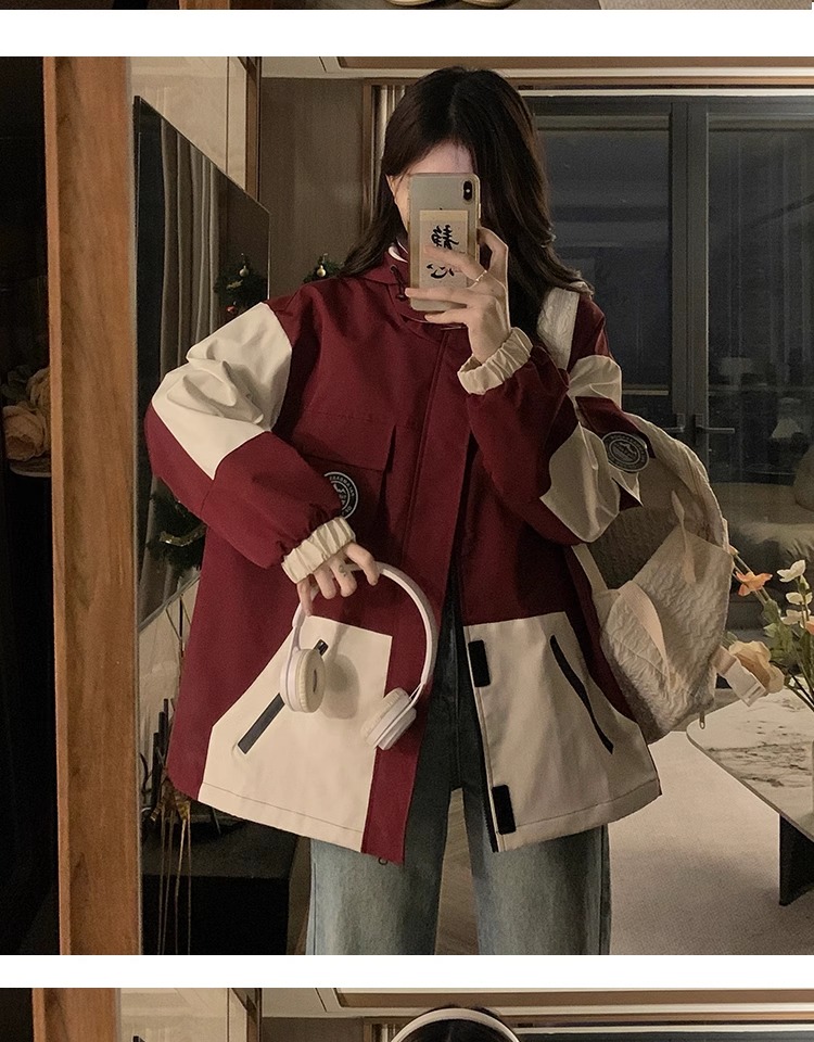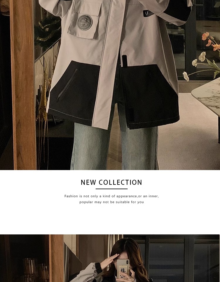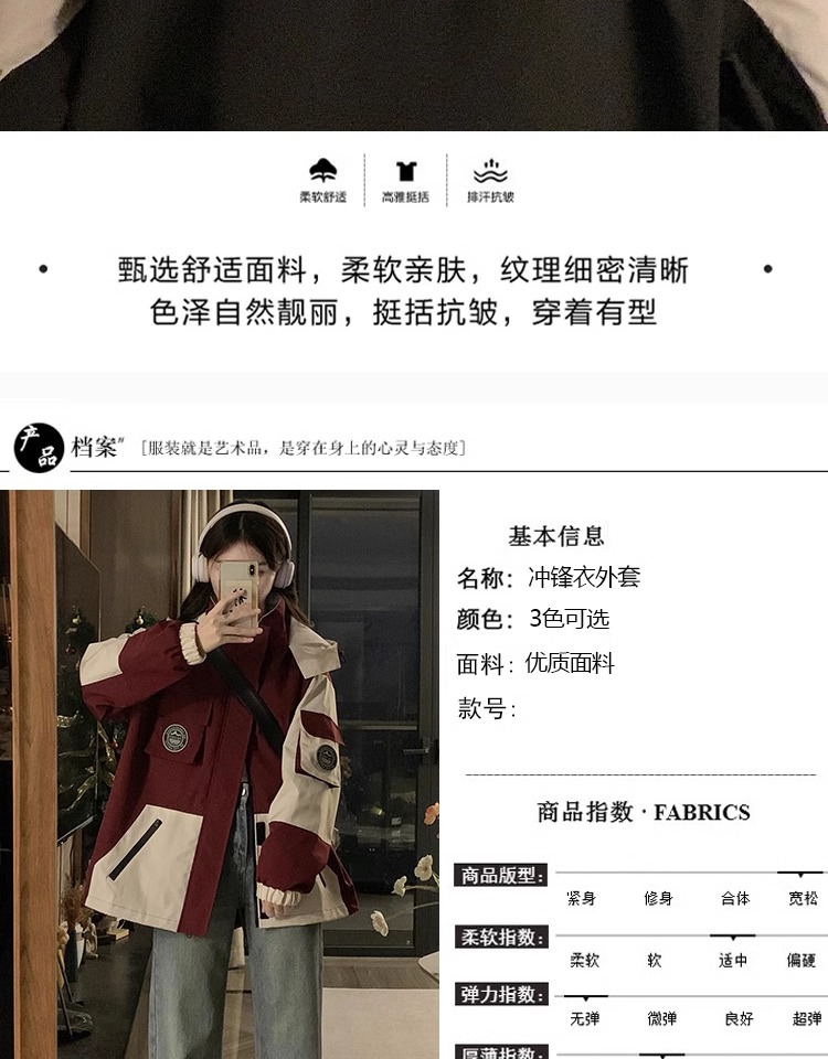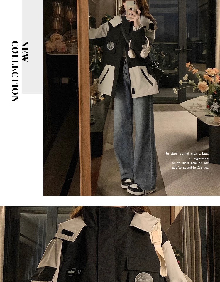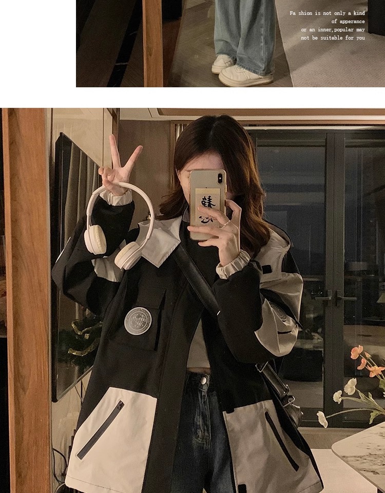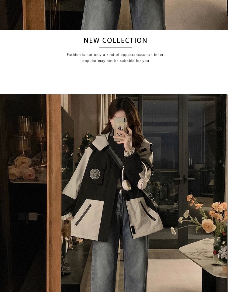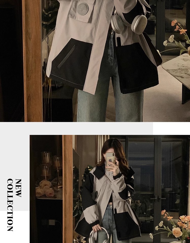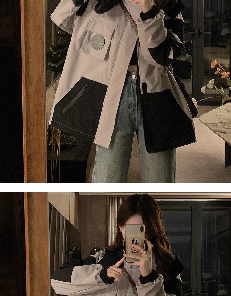 美式復古沖鋒衣外套女2025春秋冬款寬松大碼連帽百搭情侶工裝棉服