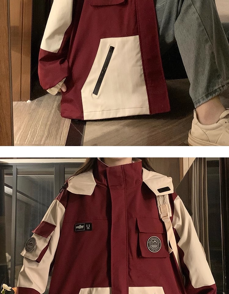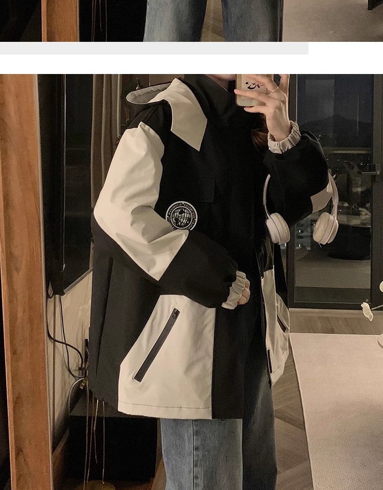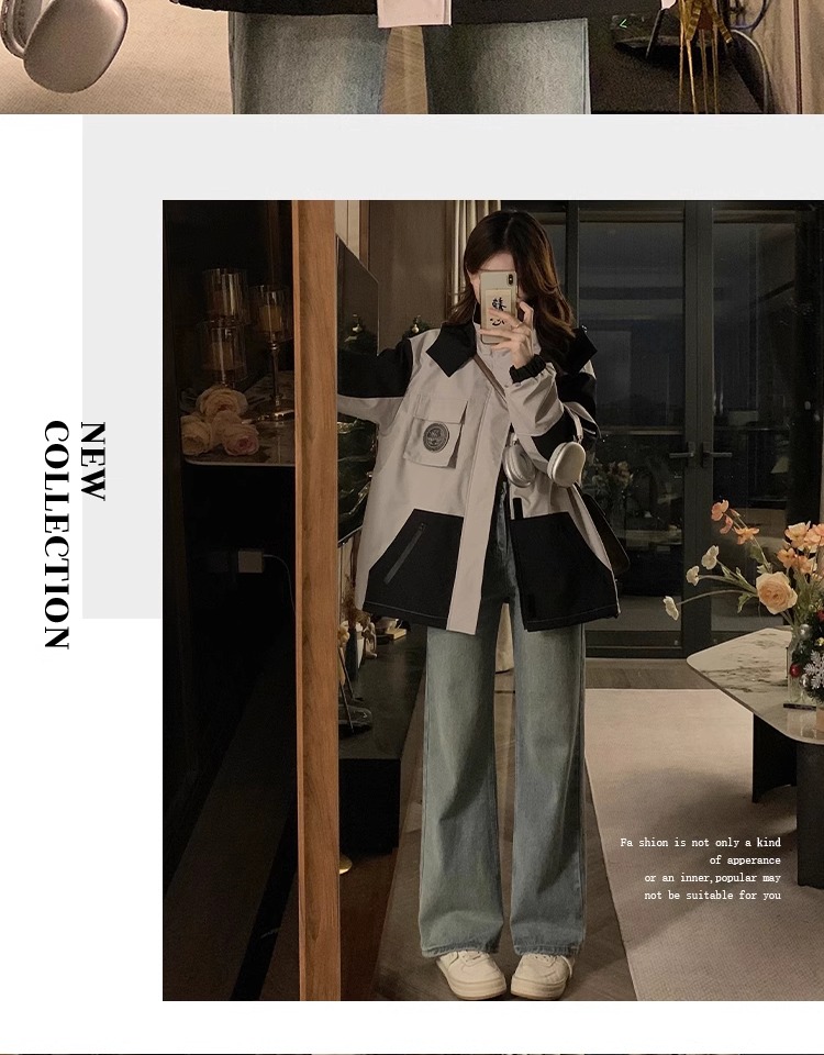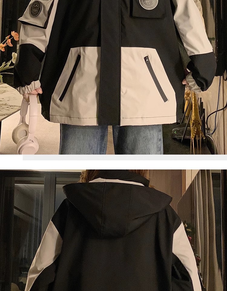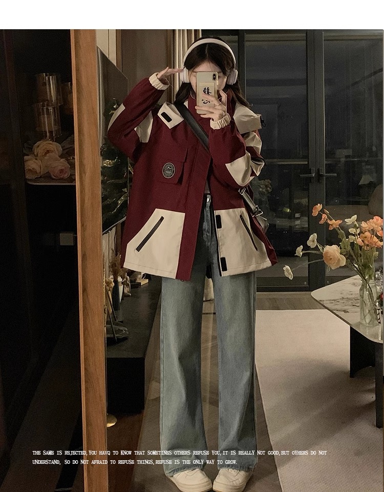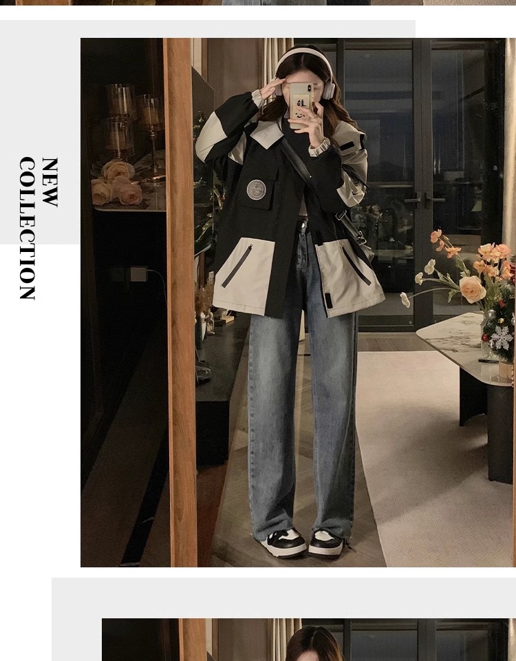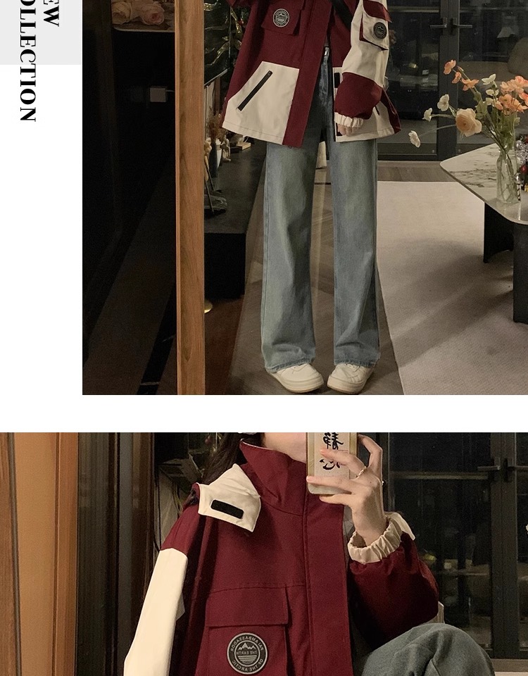 美式復古沖鋒衣外套女2025春秋冬款寬松大碼連帽百搭情侶工裝棉服