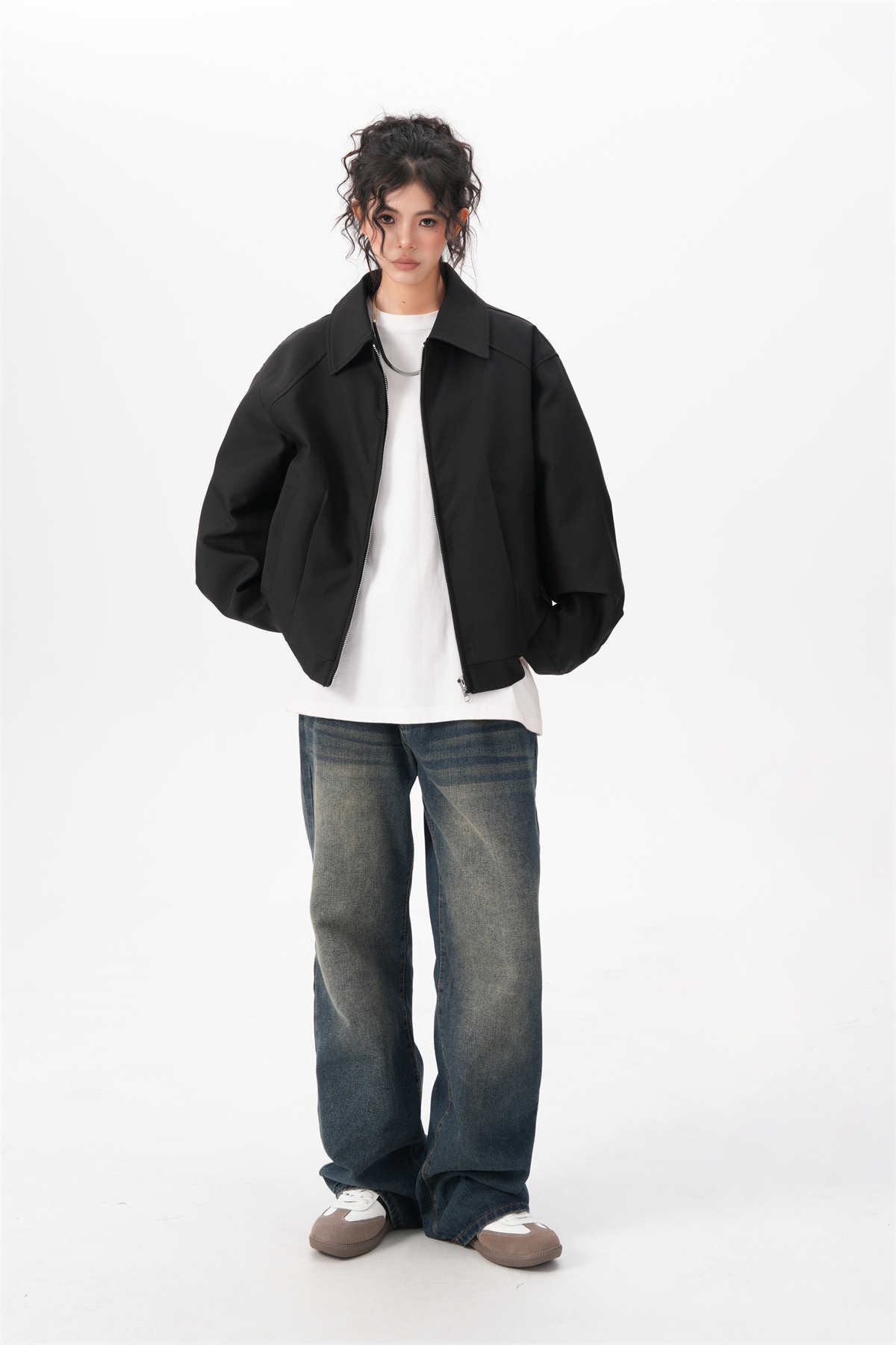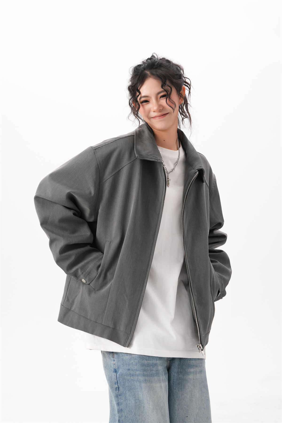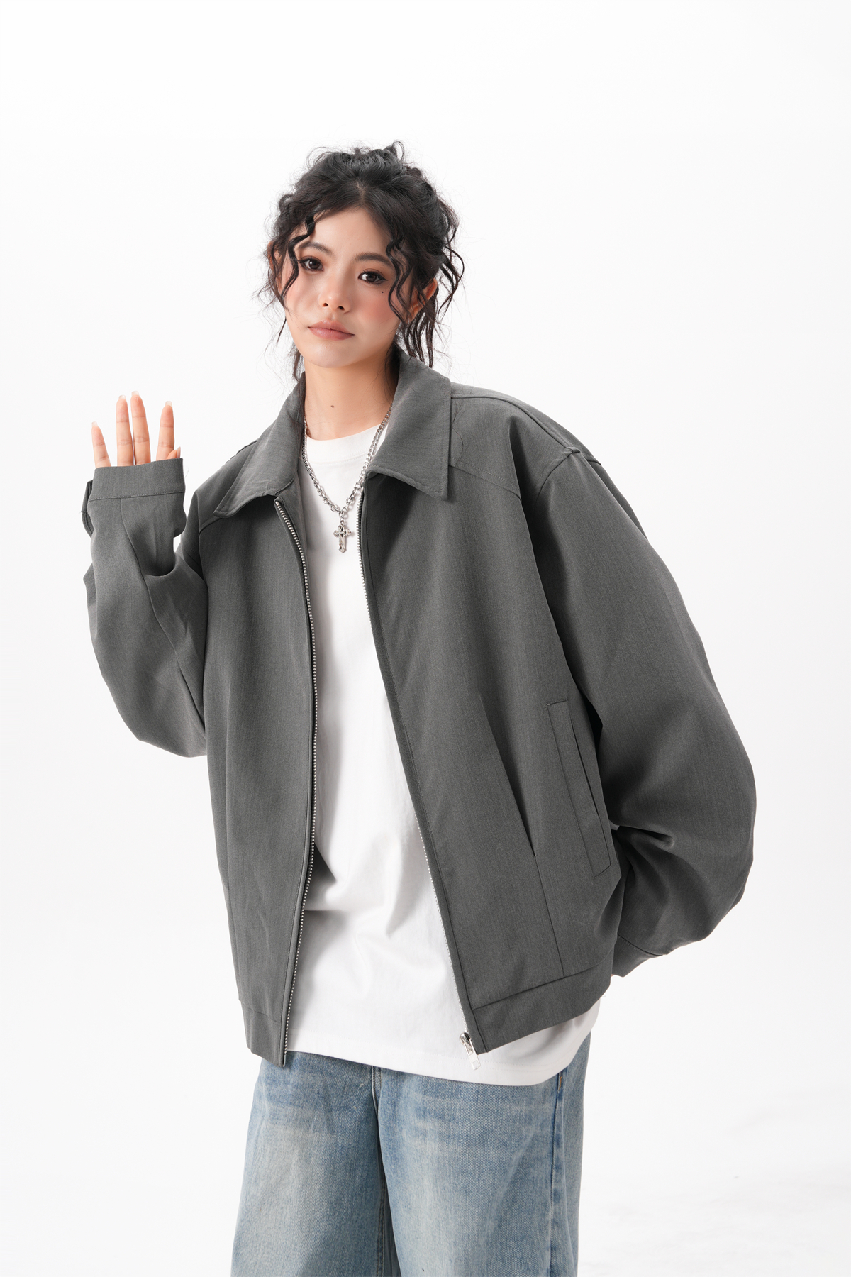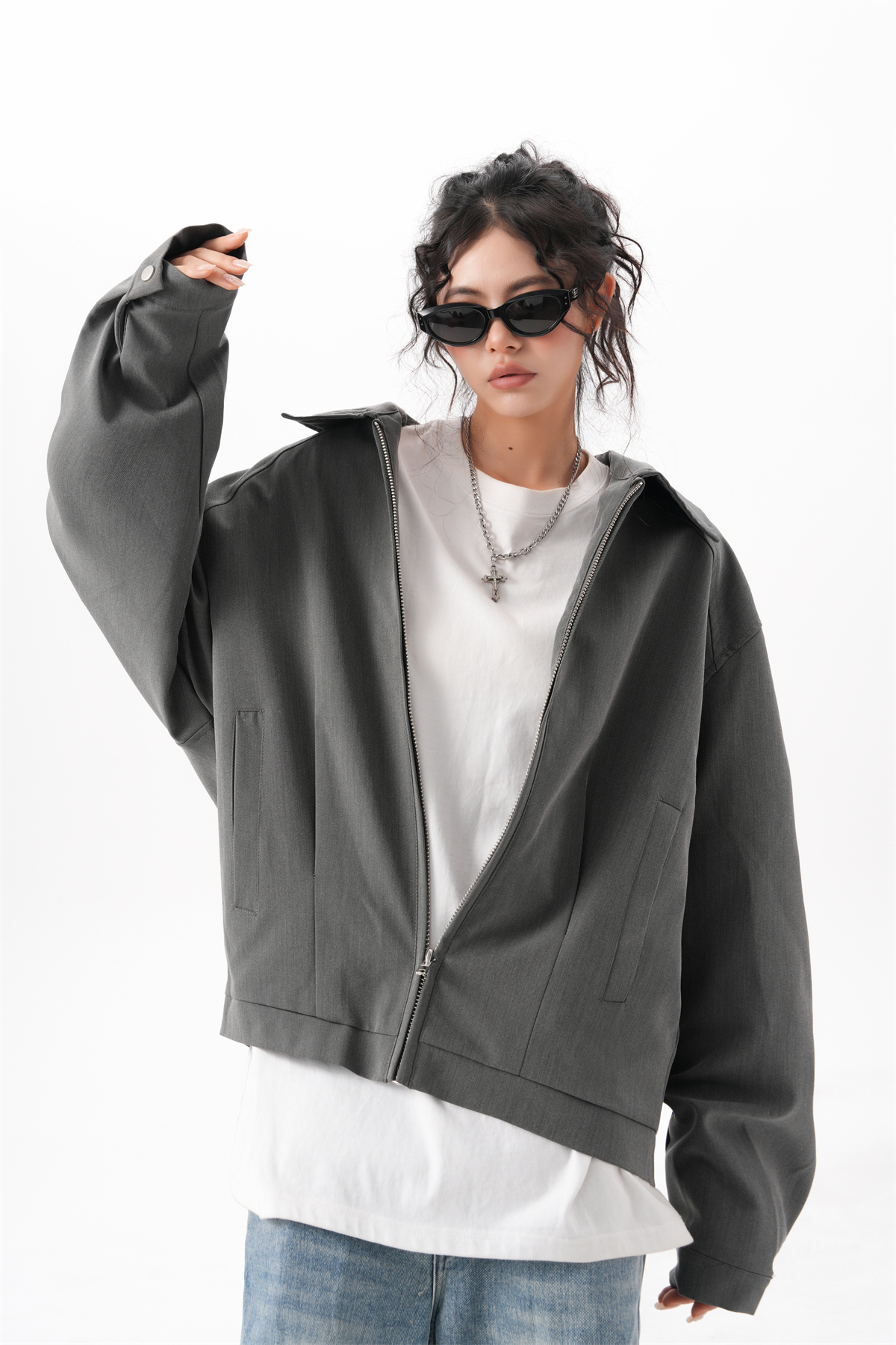 cleanfit短款廓形西裝夾克女2025秋季格雷系高街百搭寬松翻領外套