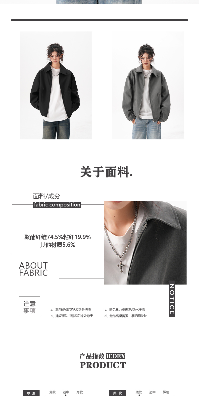| 材質成分 | 聚酯纖維74.5% 粘膠纖維(粘纖)19.9% 其他5.6% |