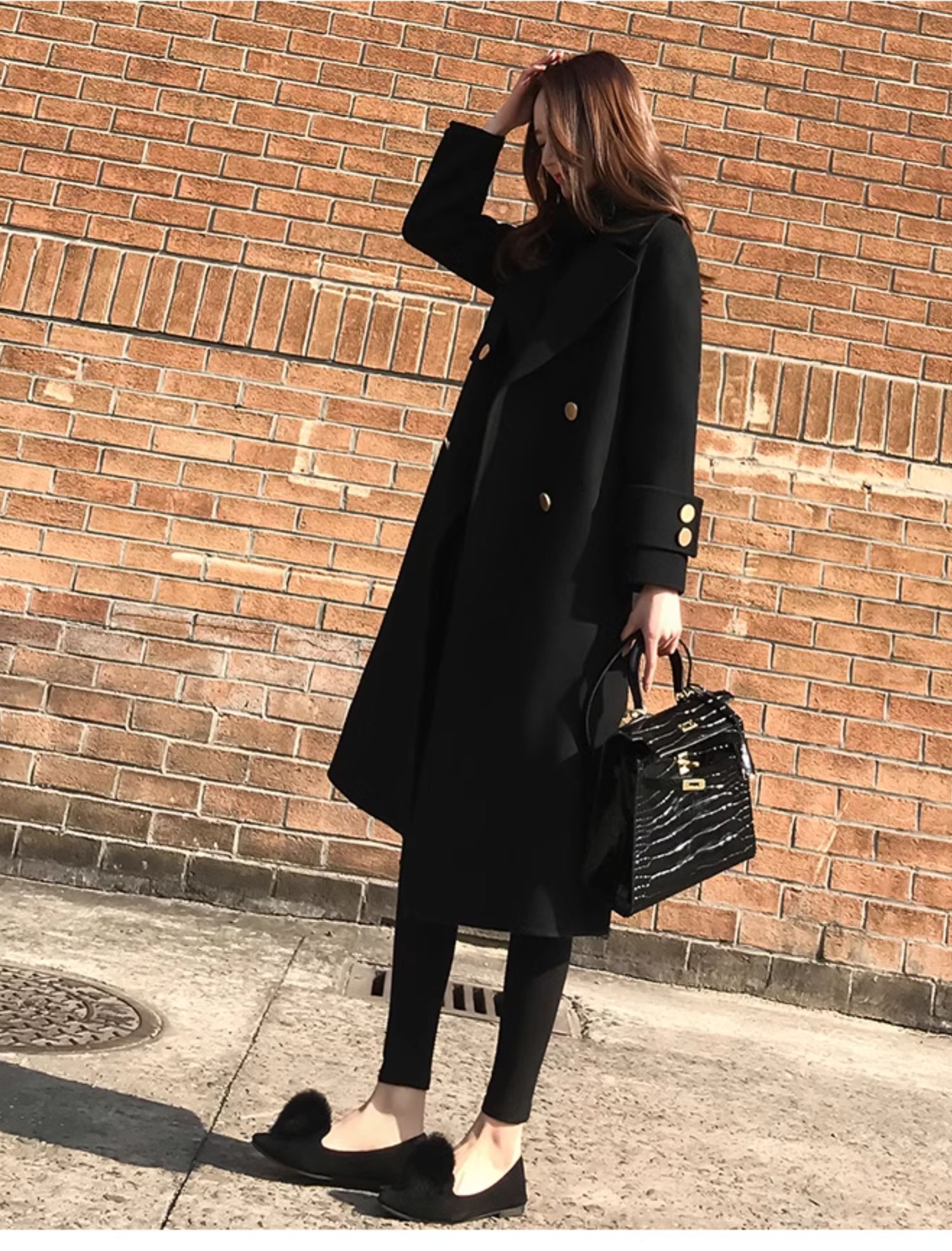 韓系羊絨質感毛呢大衣大碼胖mm200斤赫本風小個子加厚呢子外套