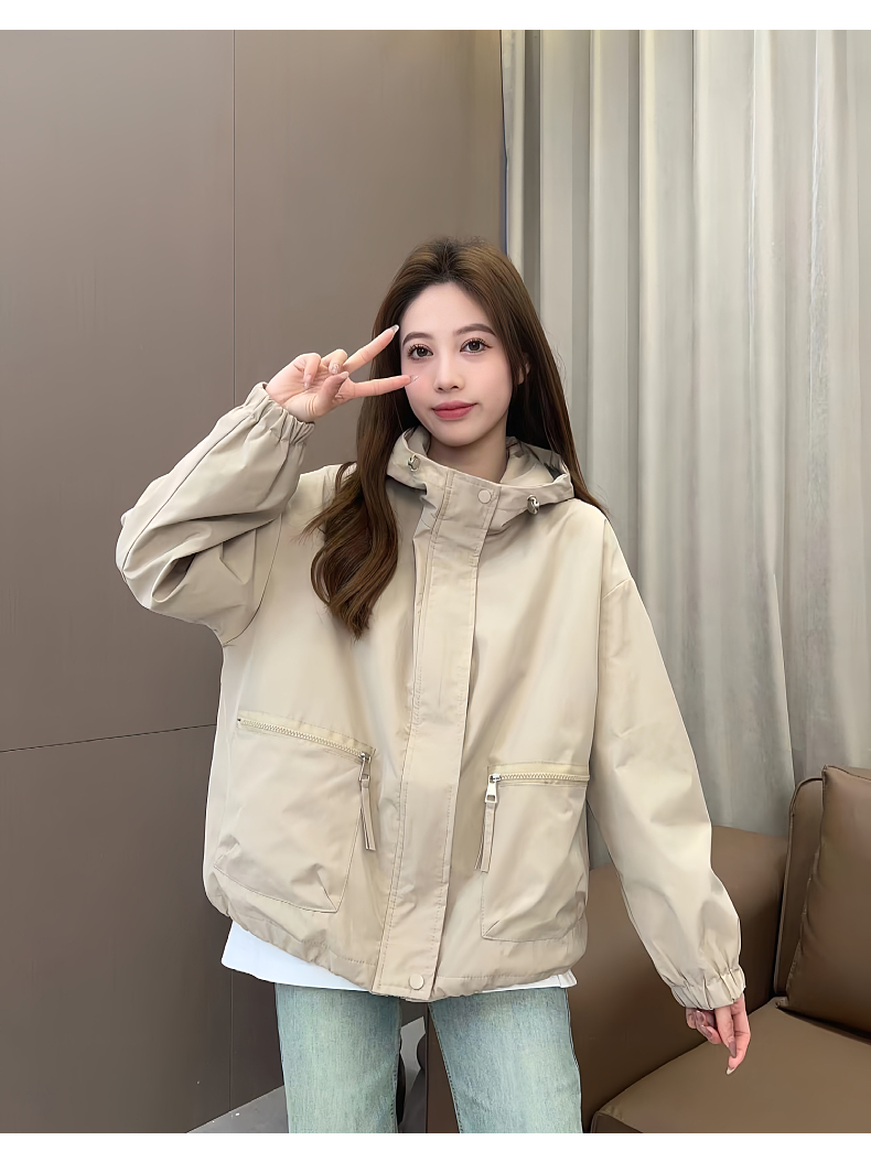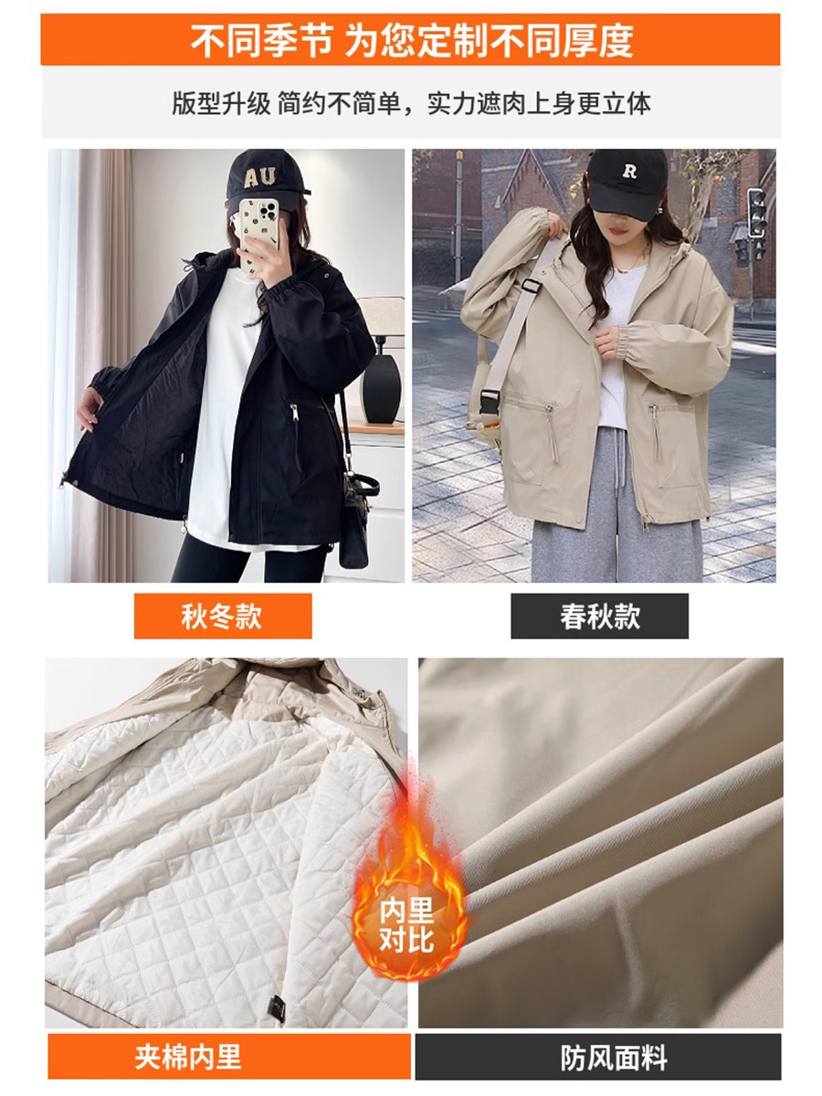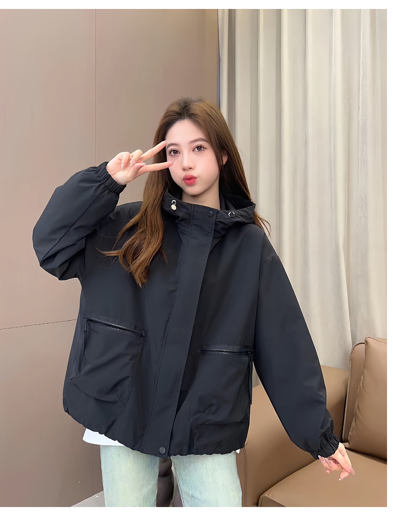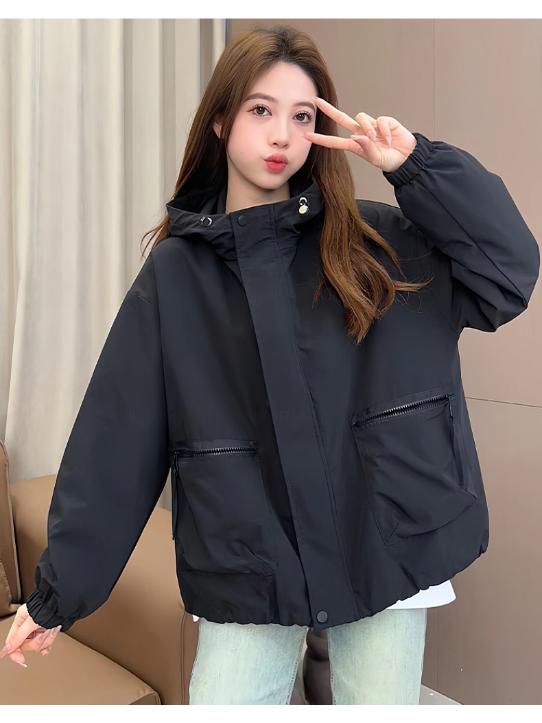 時尚大口袋連帽風衣外套女裝冬2025新款小個子沖鋒衣夾棉爆款上衣