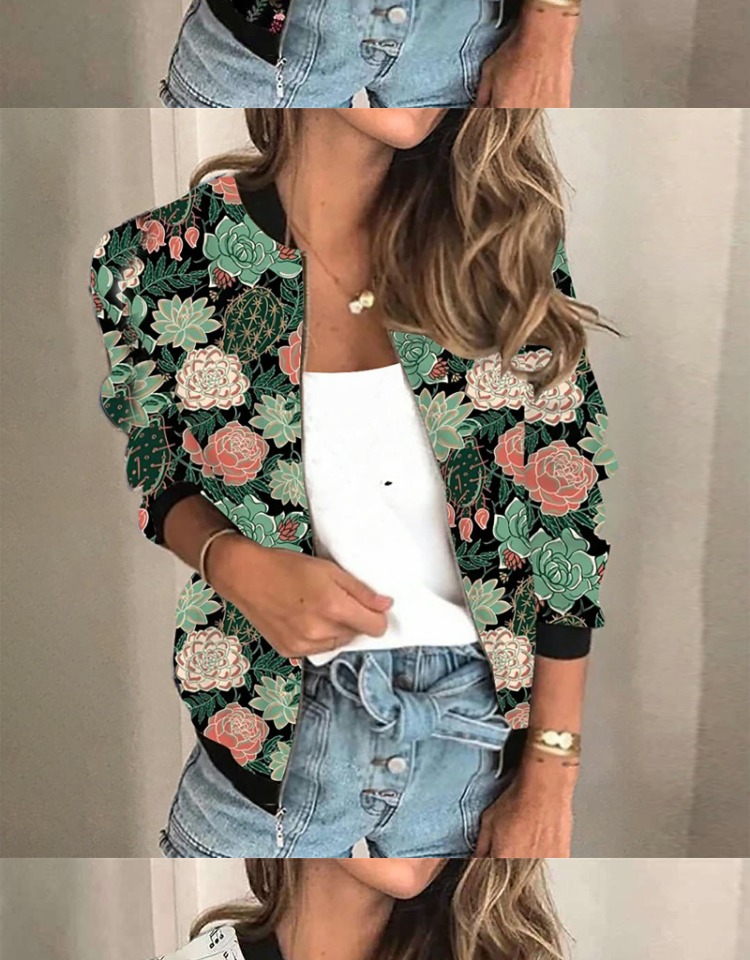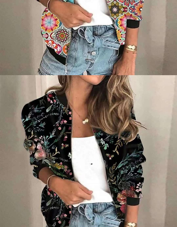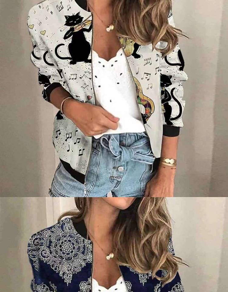 歐洲站秋冬新款立領貓咪cat數碼印花復古休閒拉鍊休閒短外套 coat