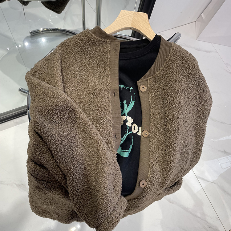 復古加厚羊羔絨外套2021秋冬韓版寬松顯瘦保暖毛毛絨棒球服棉服女