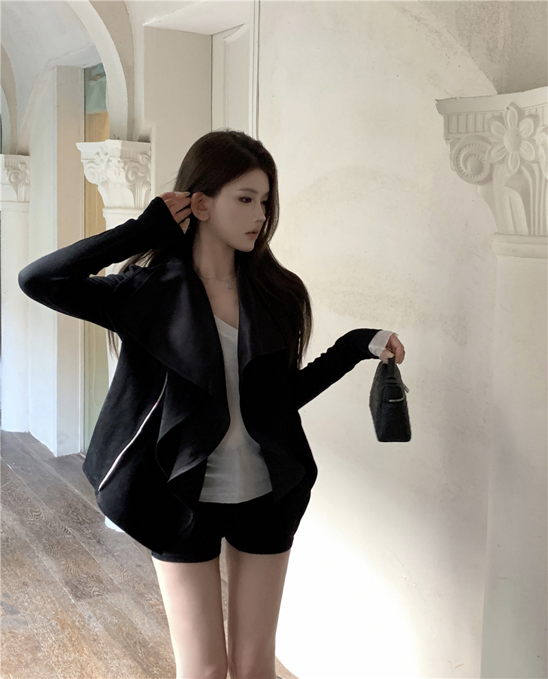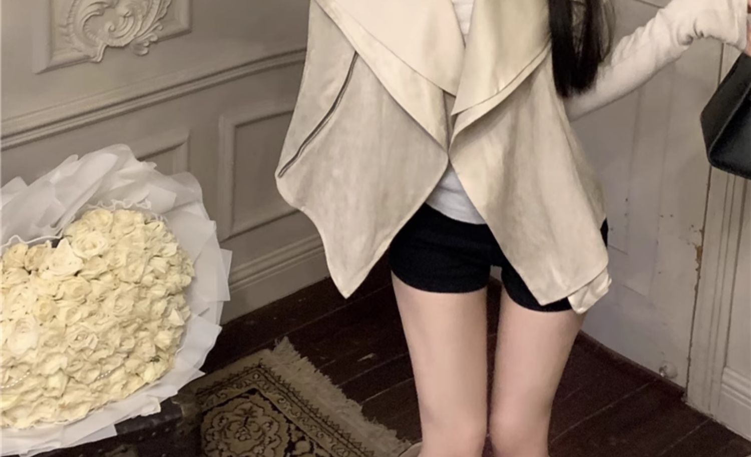 慵懶獨特外套超好看秋冬季新款螺紋針織鹿皮拼接收腰顯瘦短上衣女
