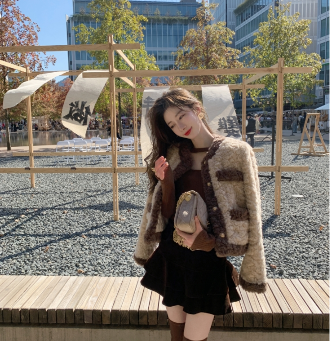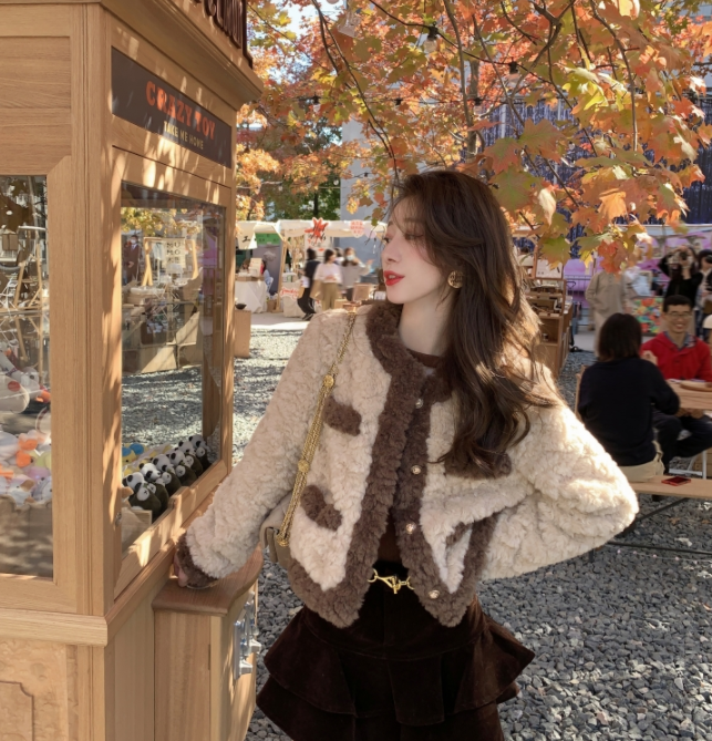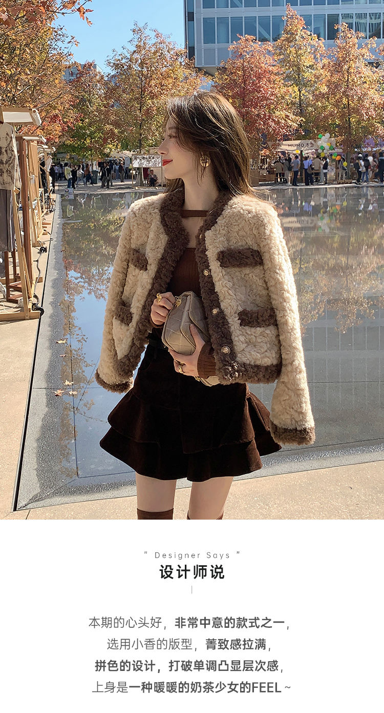 小香風仿羊羔毛保暖短款外套女秋冬2025新款韓版寬松氣質上衣加厚